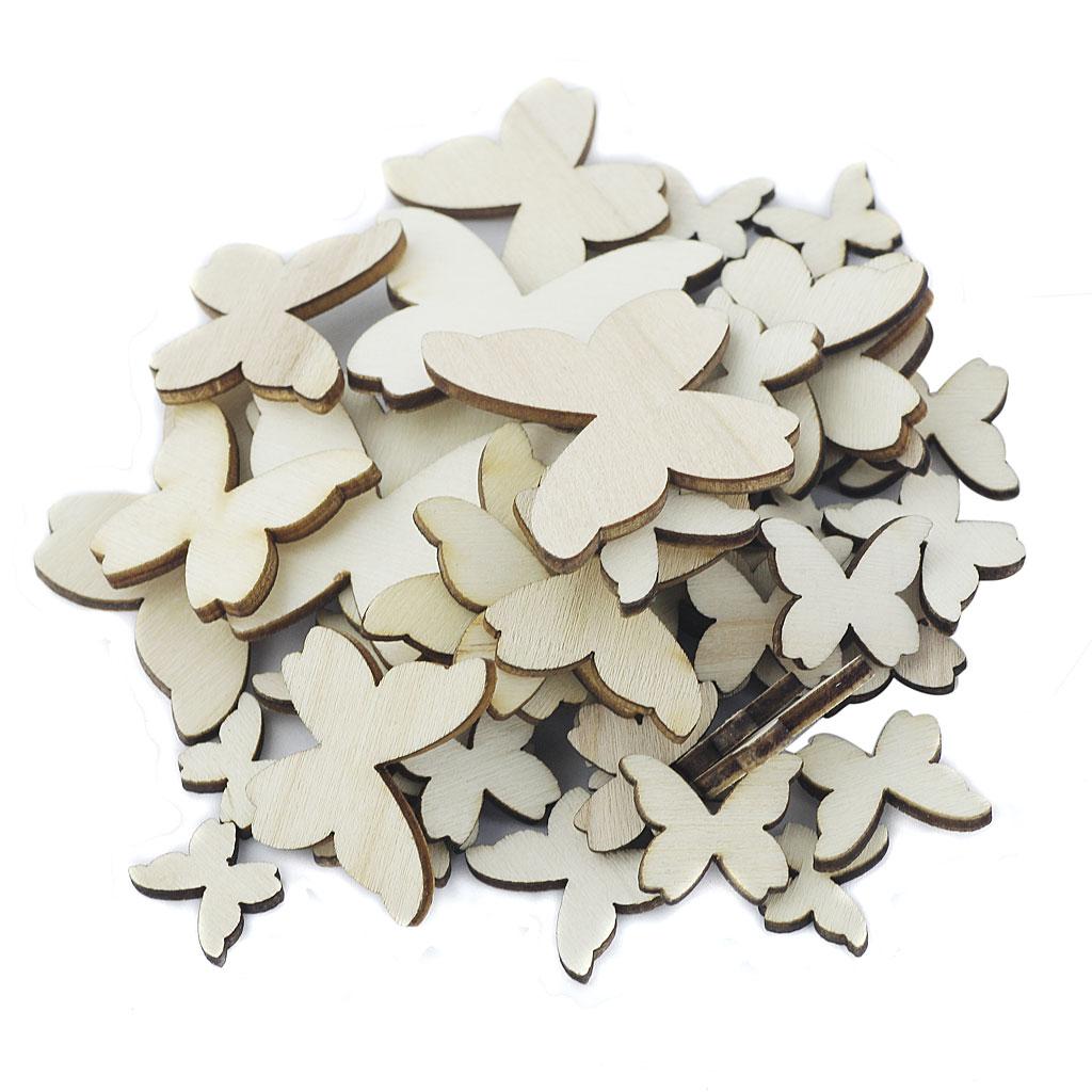 50Pcs Mixed Size Natural Wood Butterflies Plain Shabby Chic Craft Scrapbook