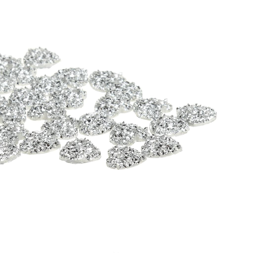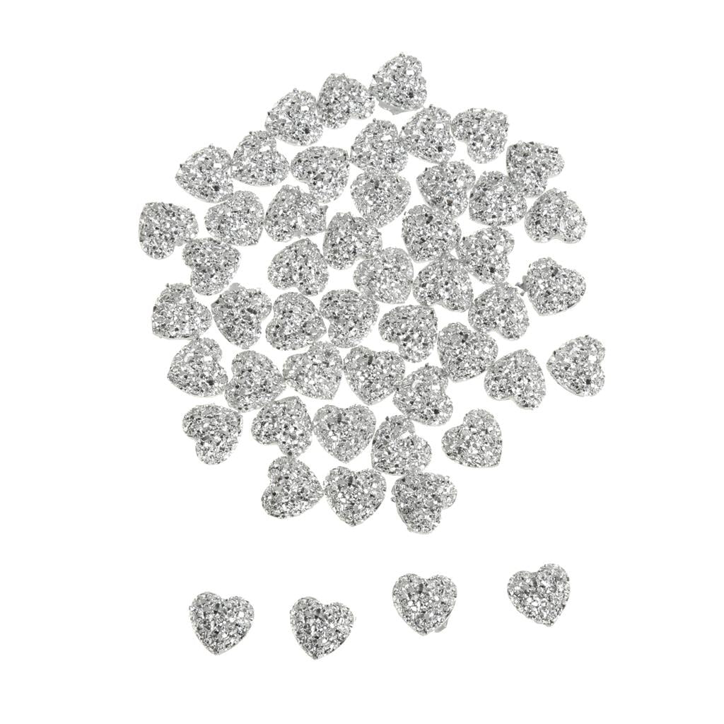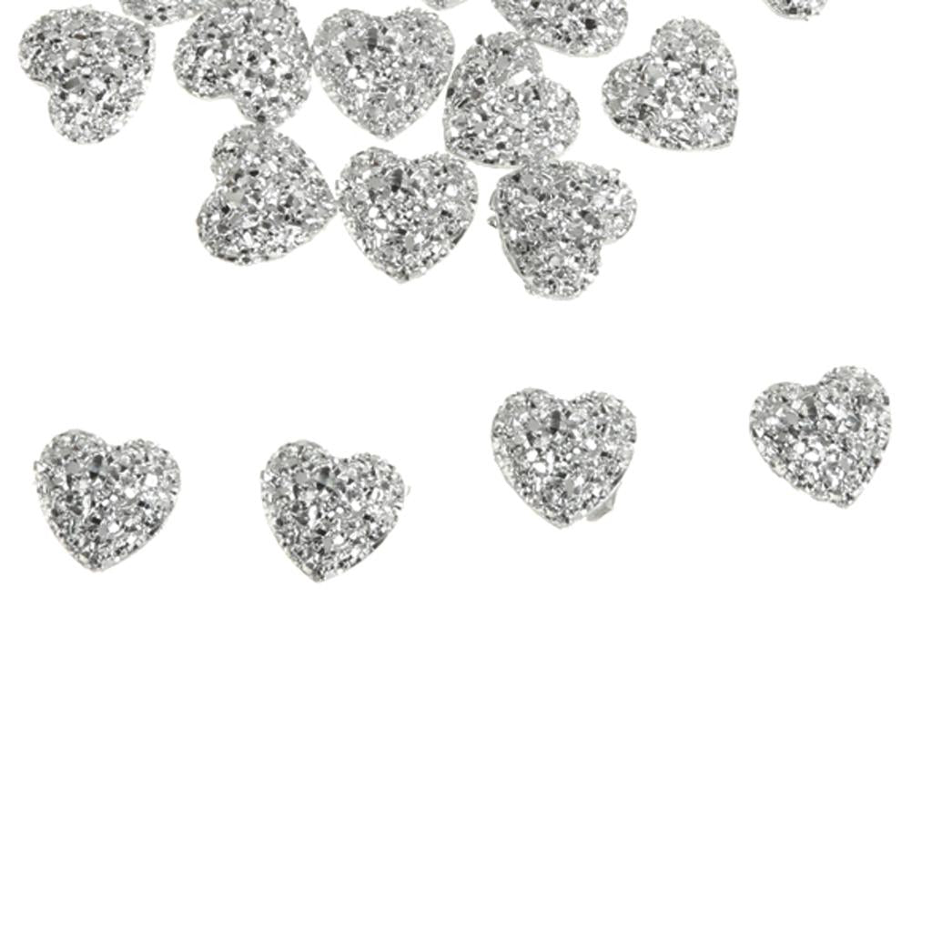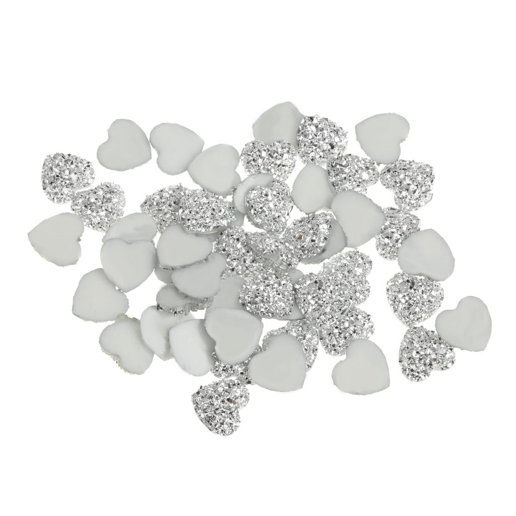 50PCS Silver Resin Rhinestone Heart Flatback Embellishments for Scrapbooking