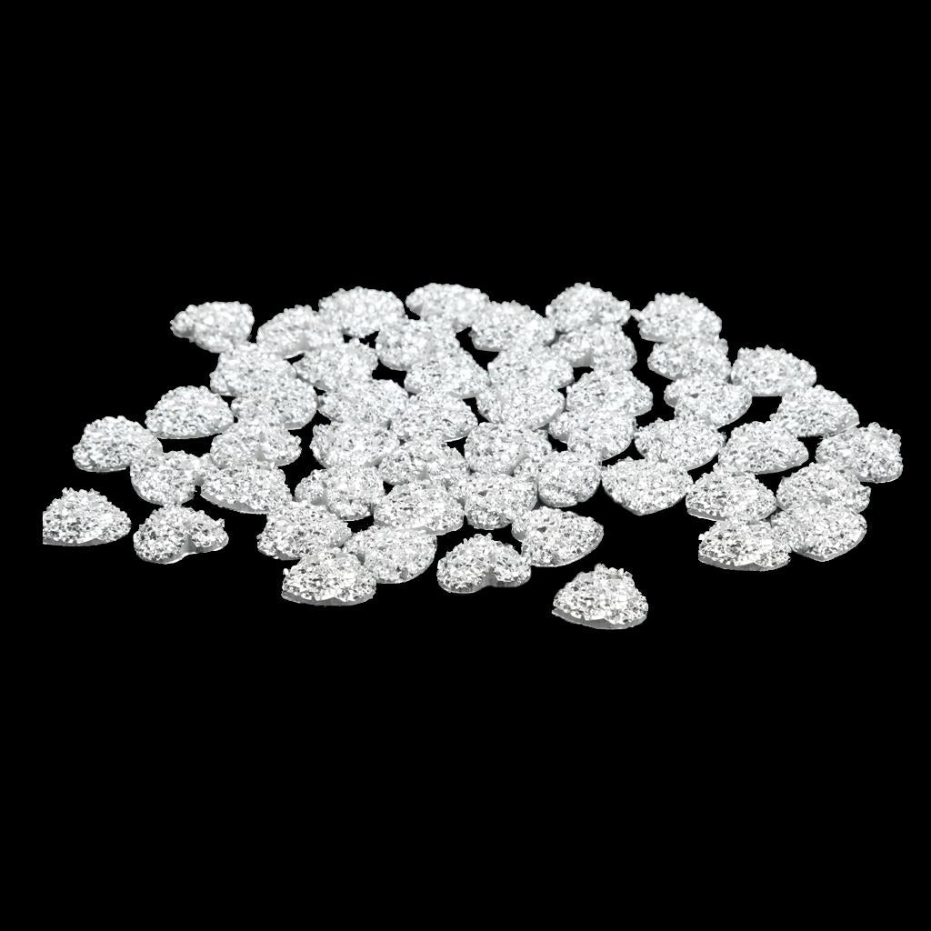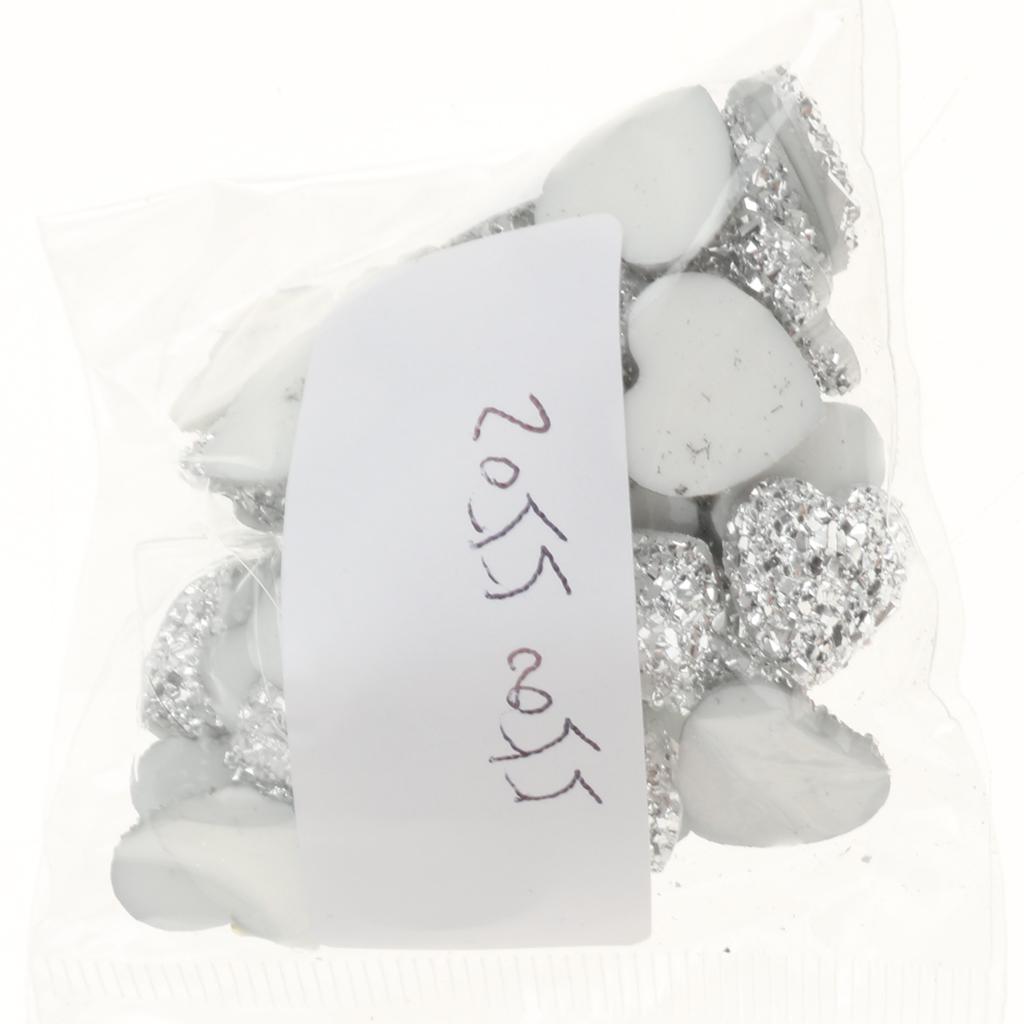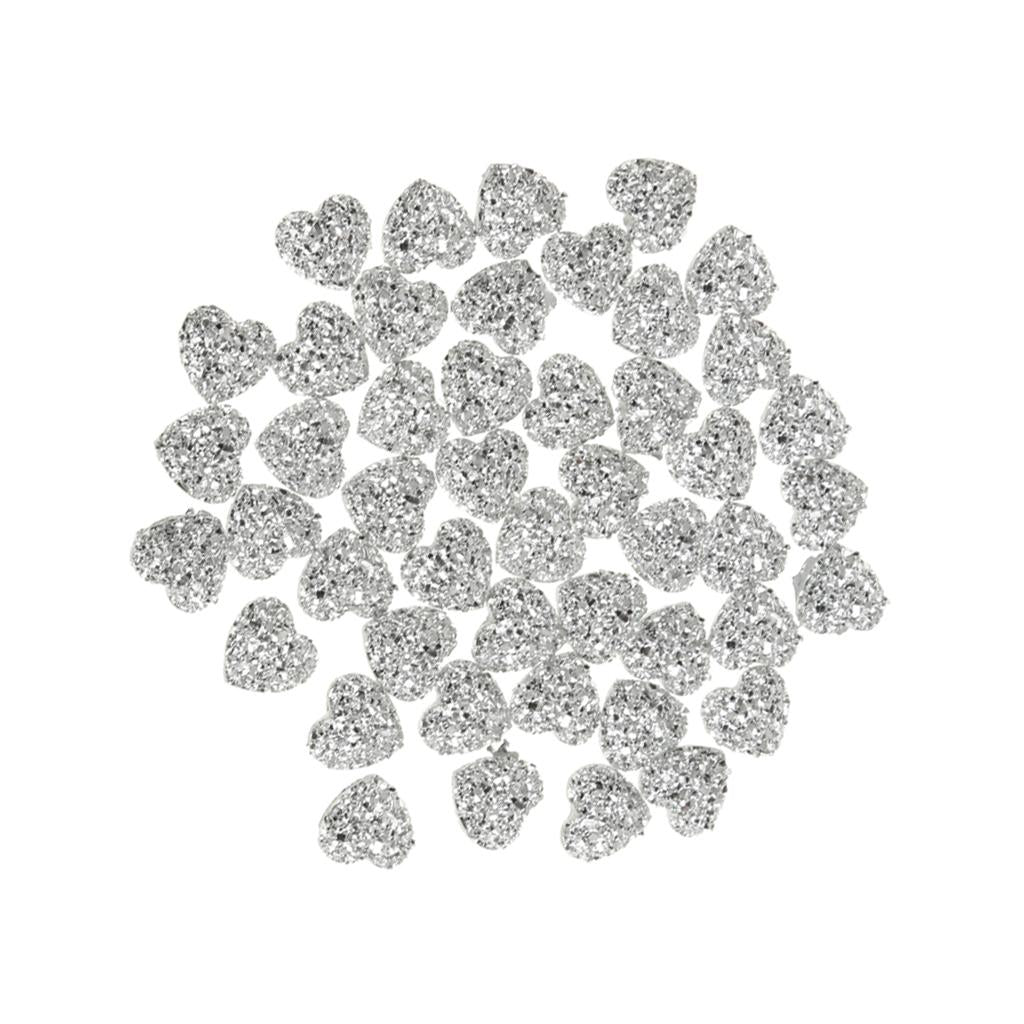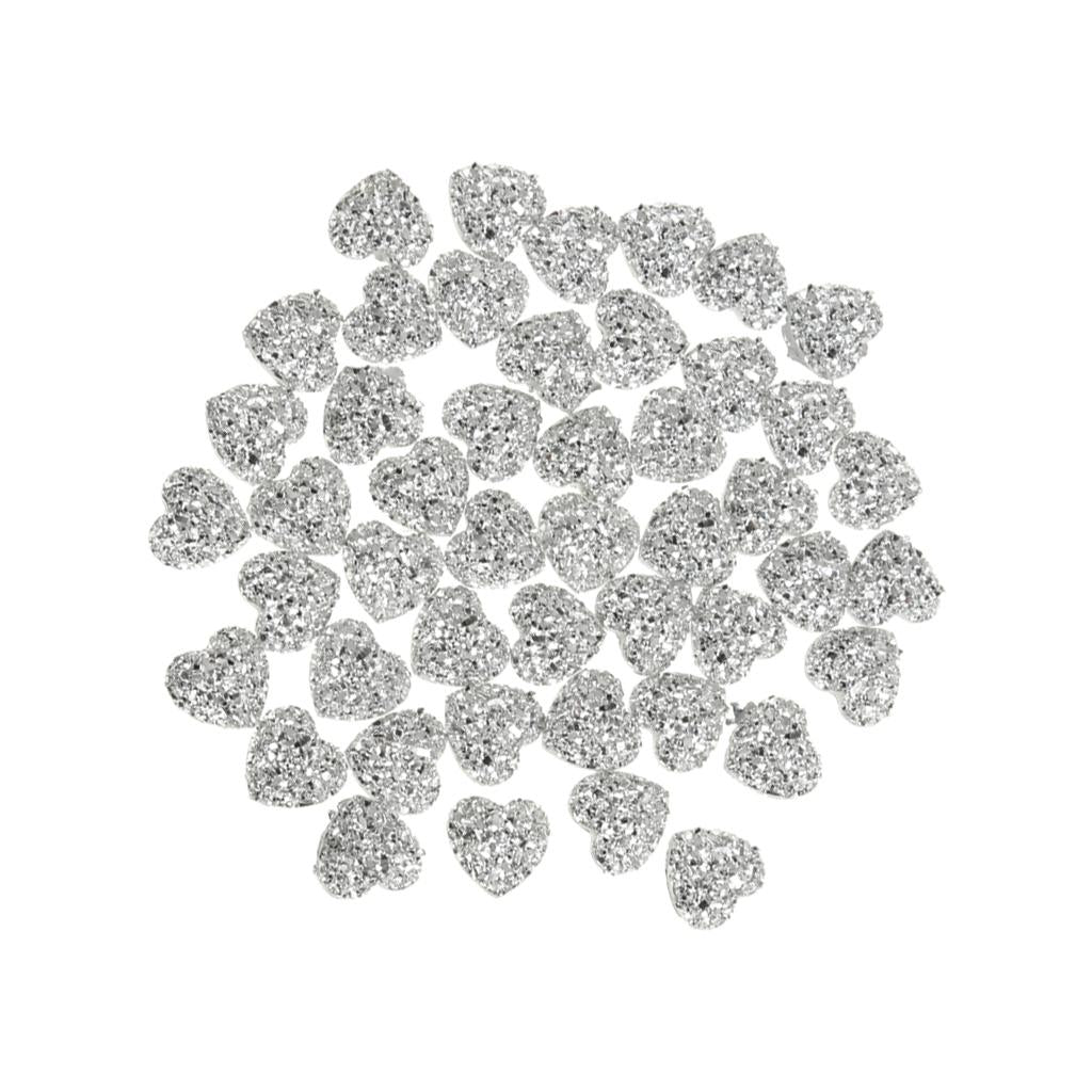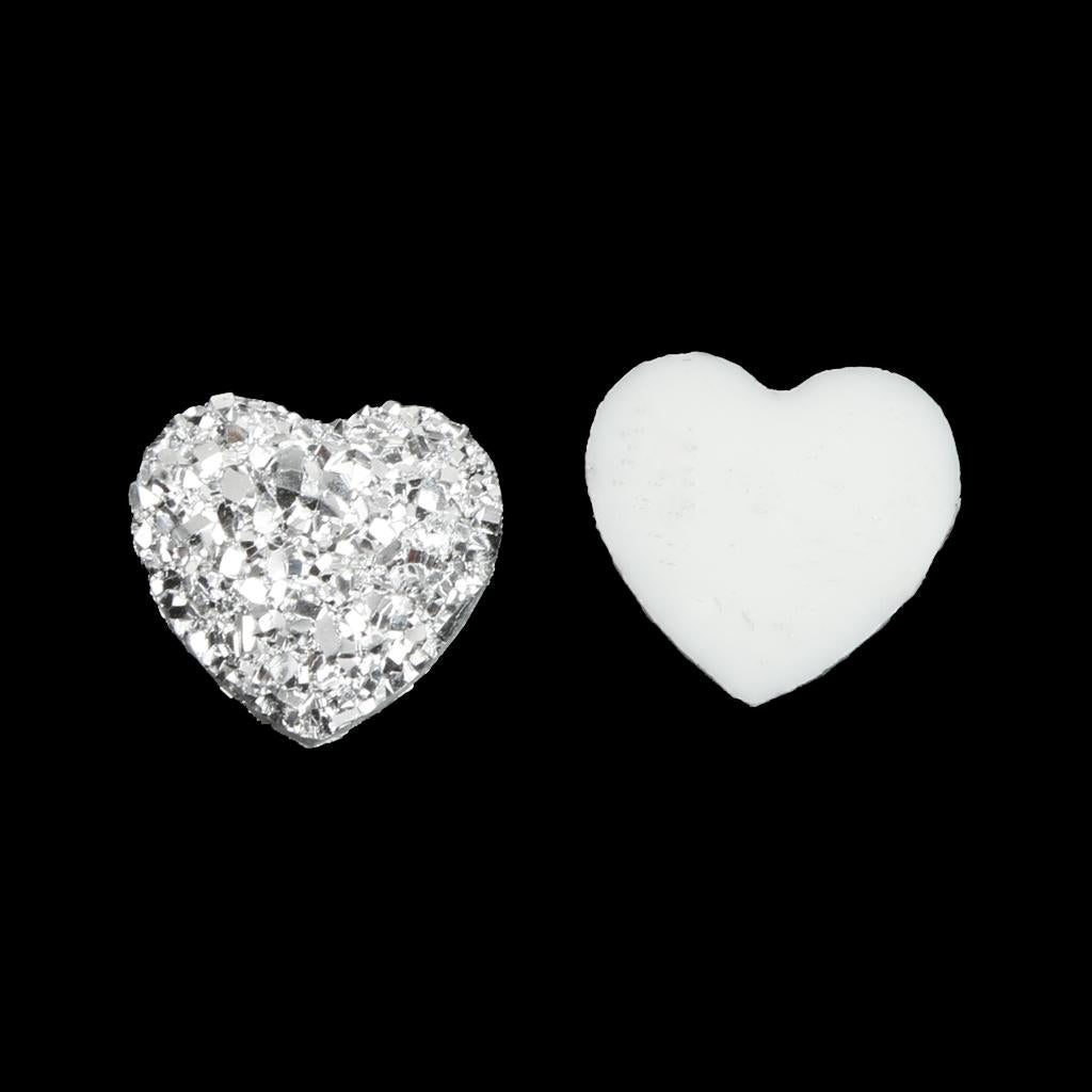 50PCS Silver Resin Rhinestone Heart Flatback Embellishments for Scrapbooking