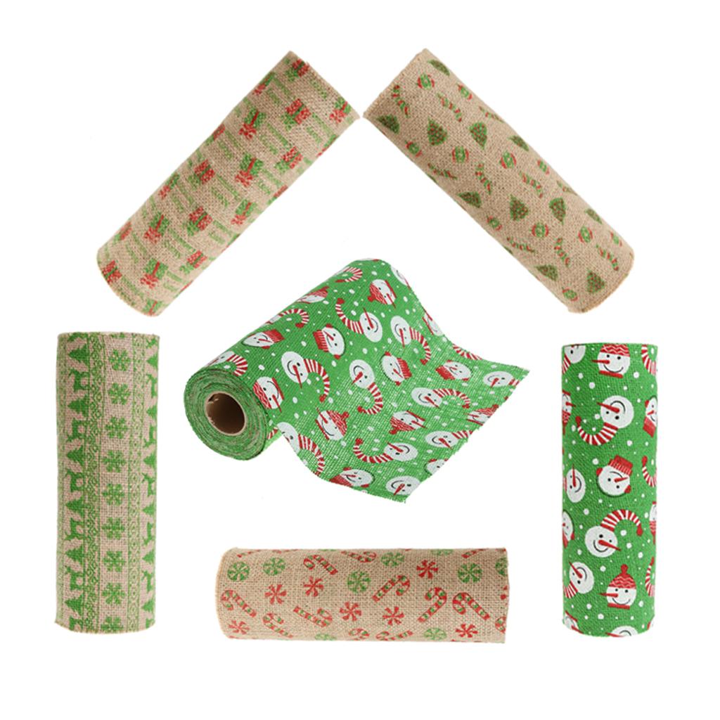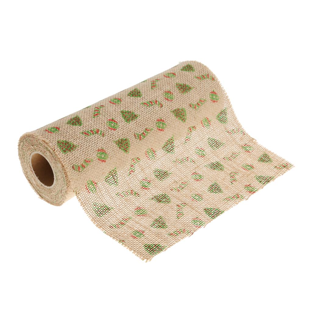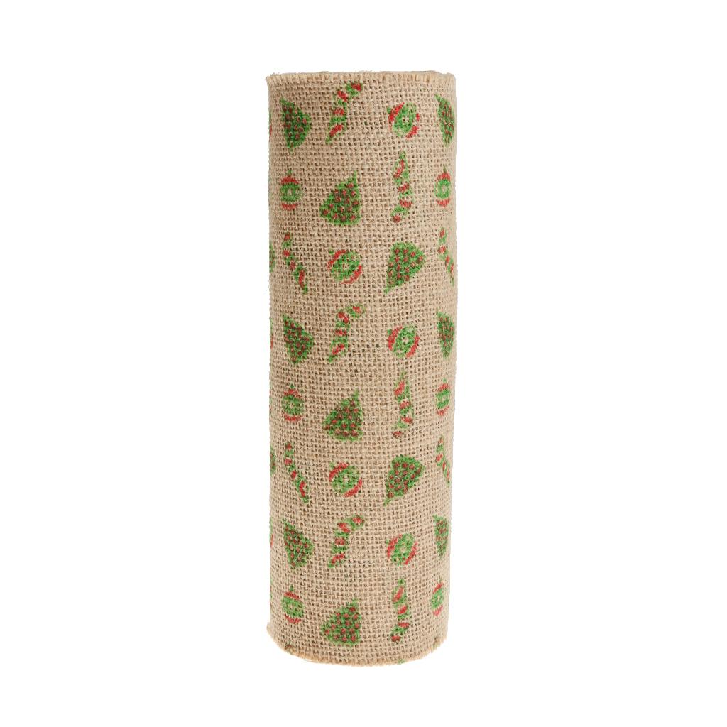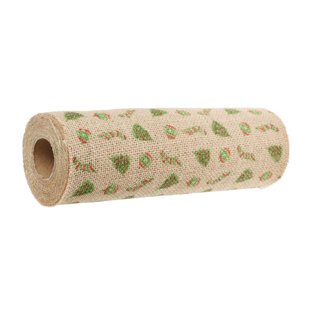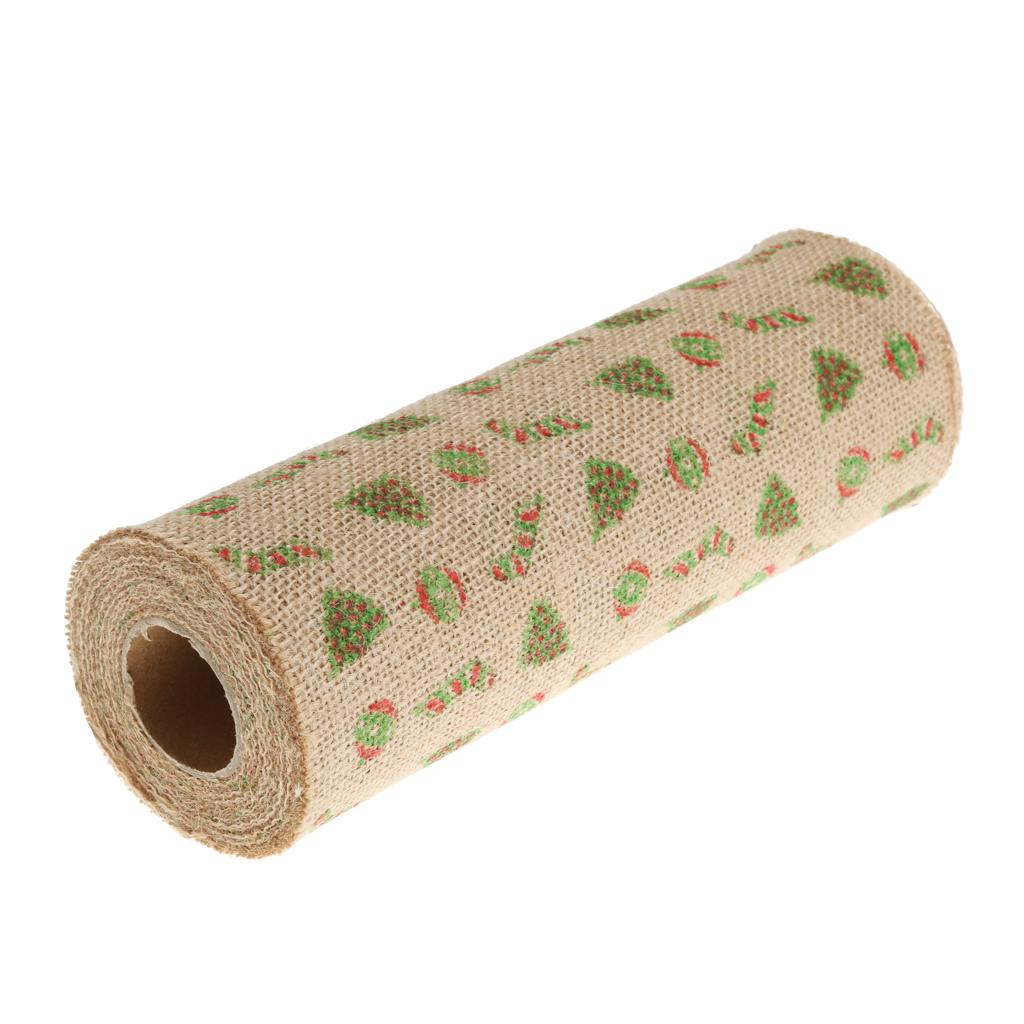 5M Natural Burlap Xmas Tree with Socks Printed Rustic Ribbon Christmas Decor