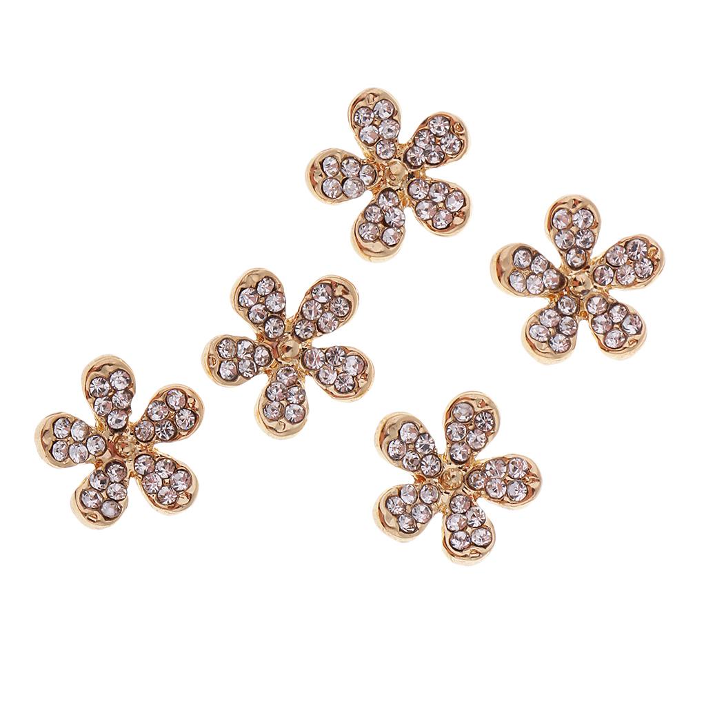 5Pcs Daisy Rhinestone Buttons – Flatback Embellishments 10mm Crystal Sewing Fasteners Glue On Metal Accessories For Craft, Wedding Dress & Phone Case Decorations