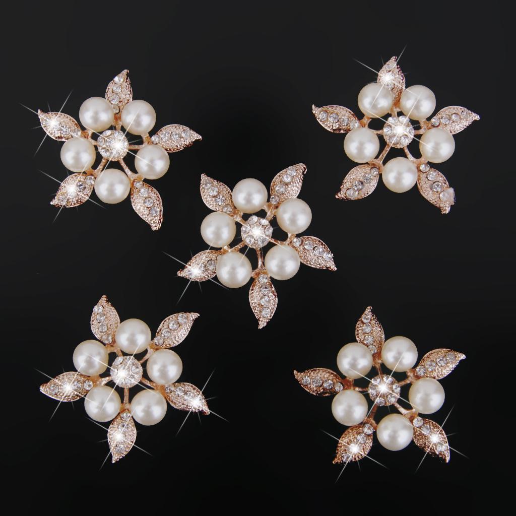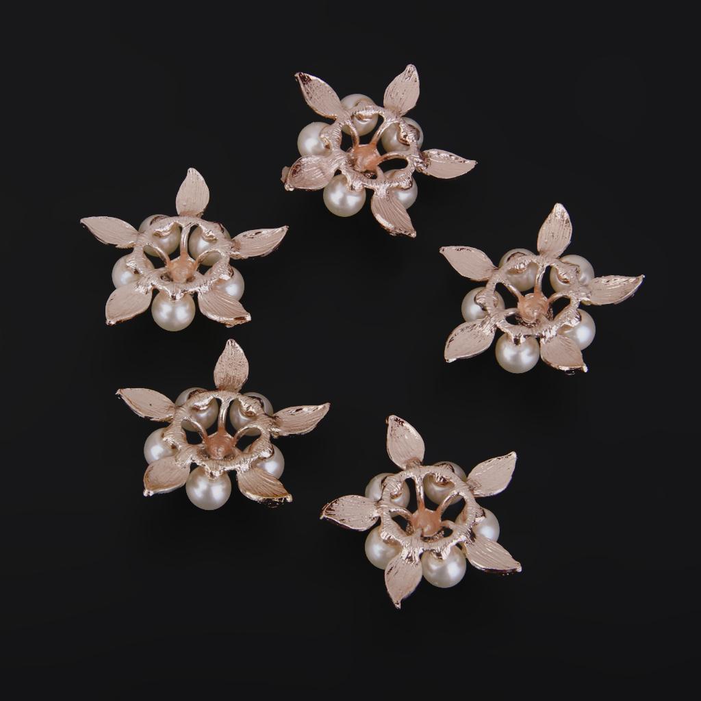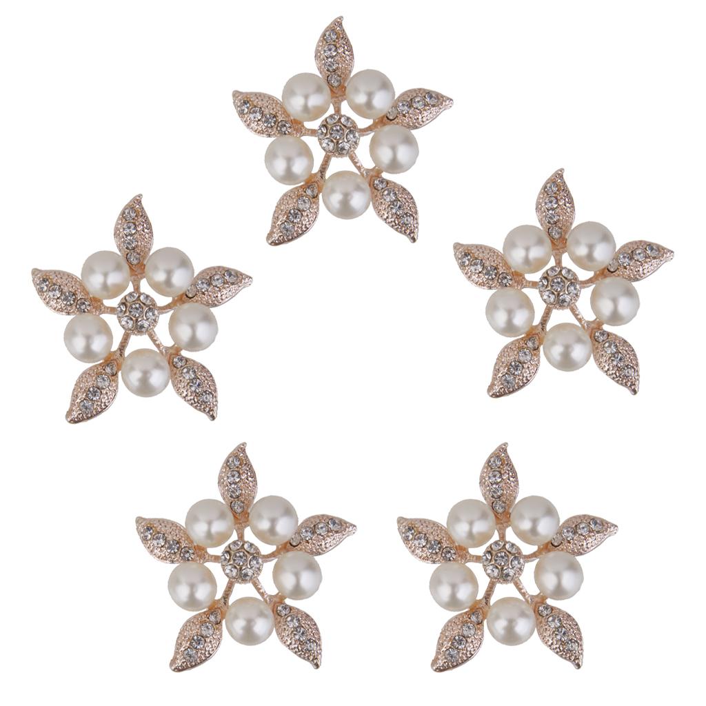 5pcs Pearl Flower Crystal Rhinestone Buttons Embellishments 38mm