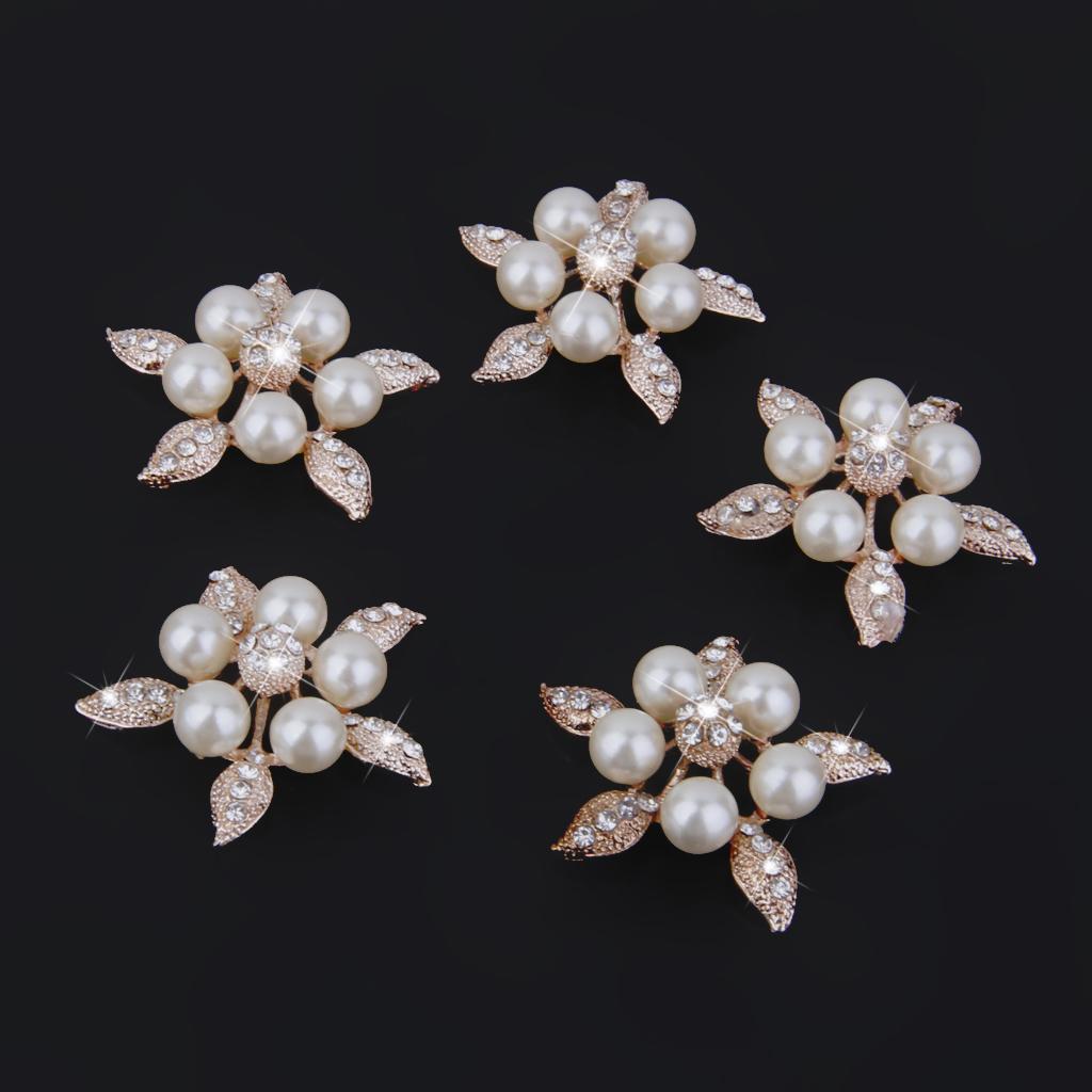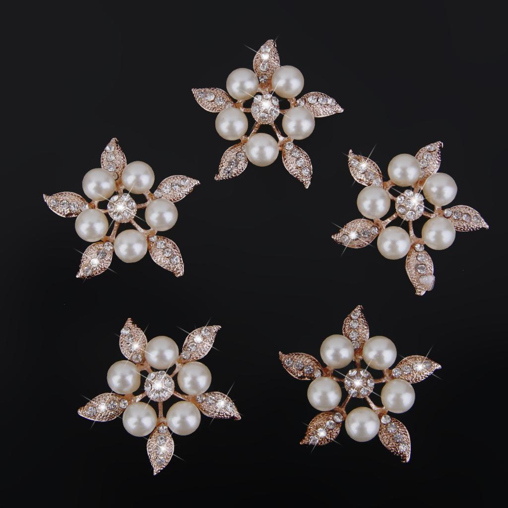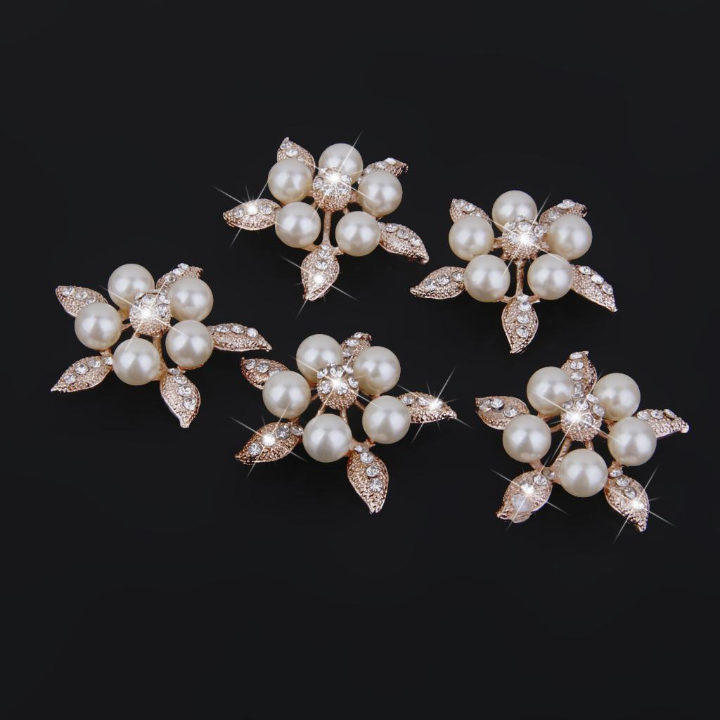 5pcs Pearl Flower Crystal Rhinestone Buttons Embellishments 38mm