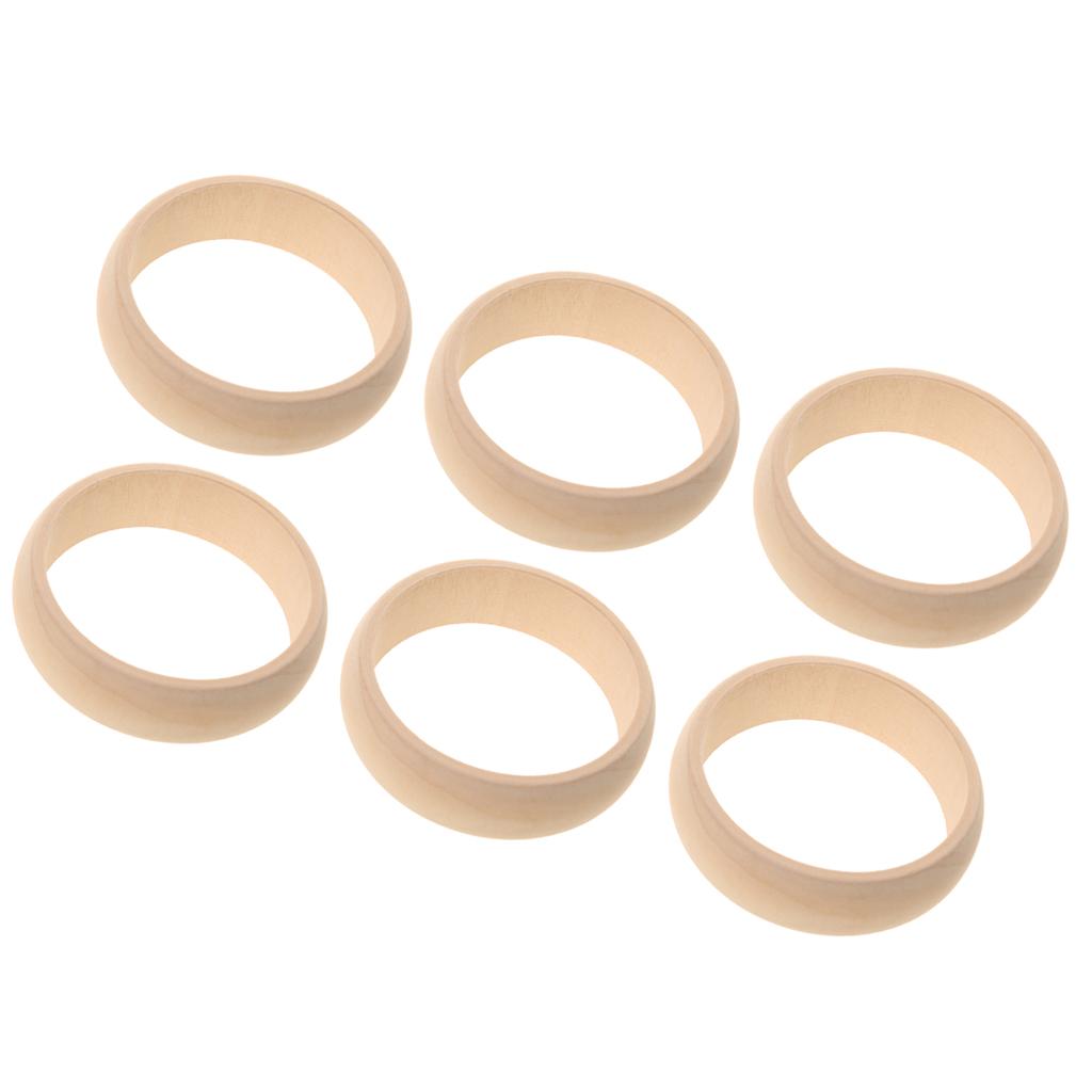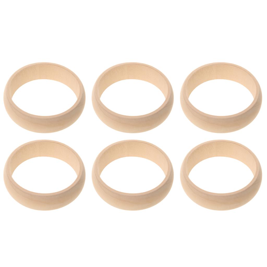6pcs Unfinished Nnarrow Natural Rond Wood Wooden Bracelet Bangle DIY 6.5cm
