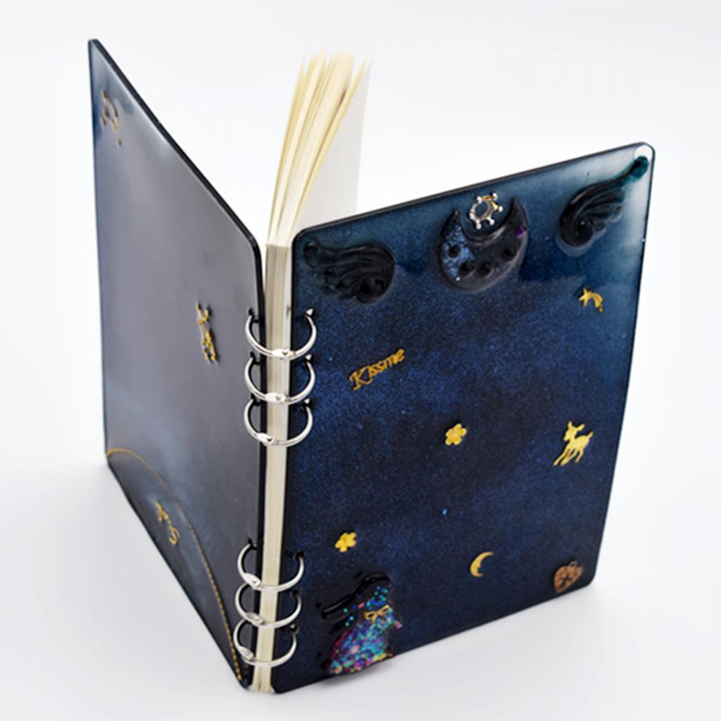 It's perfect for using it with resin. You can add beads, glitter, color, and pictures to make your own notebook.