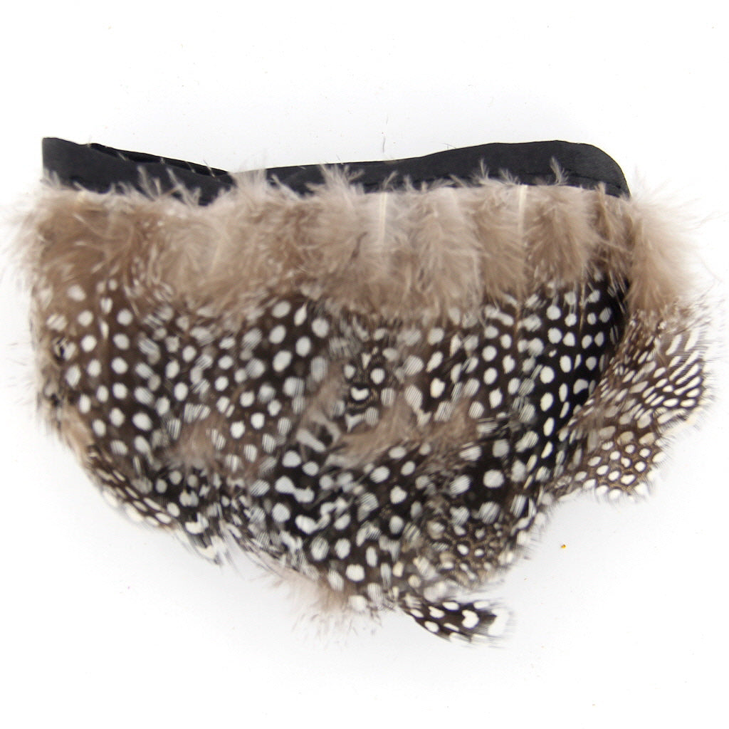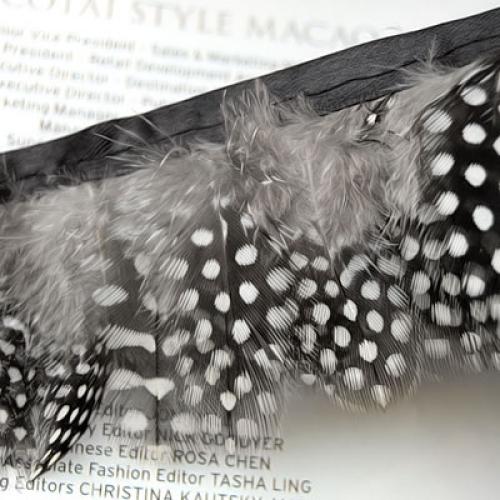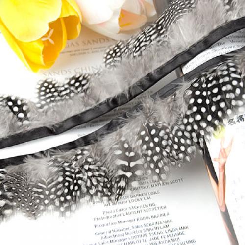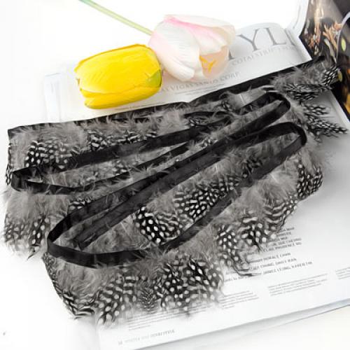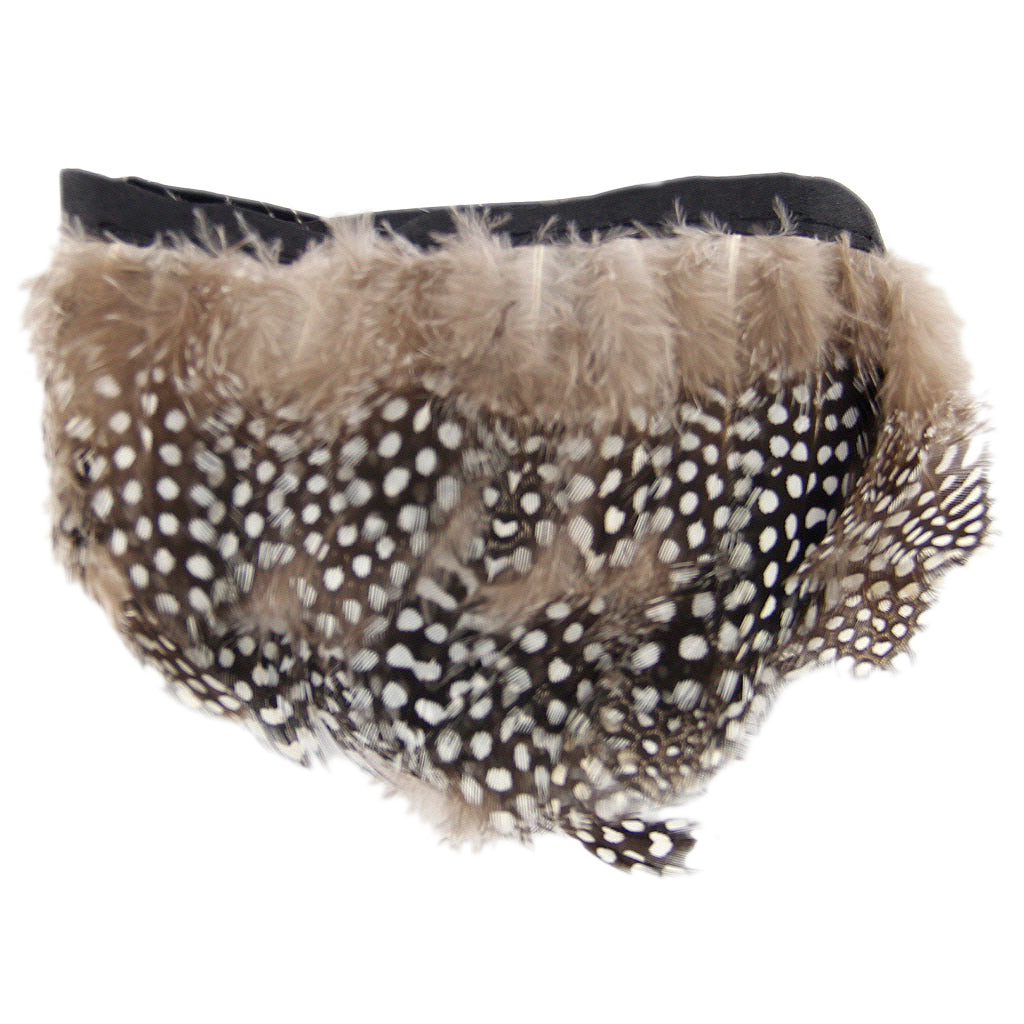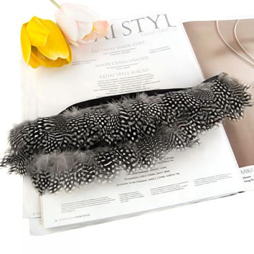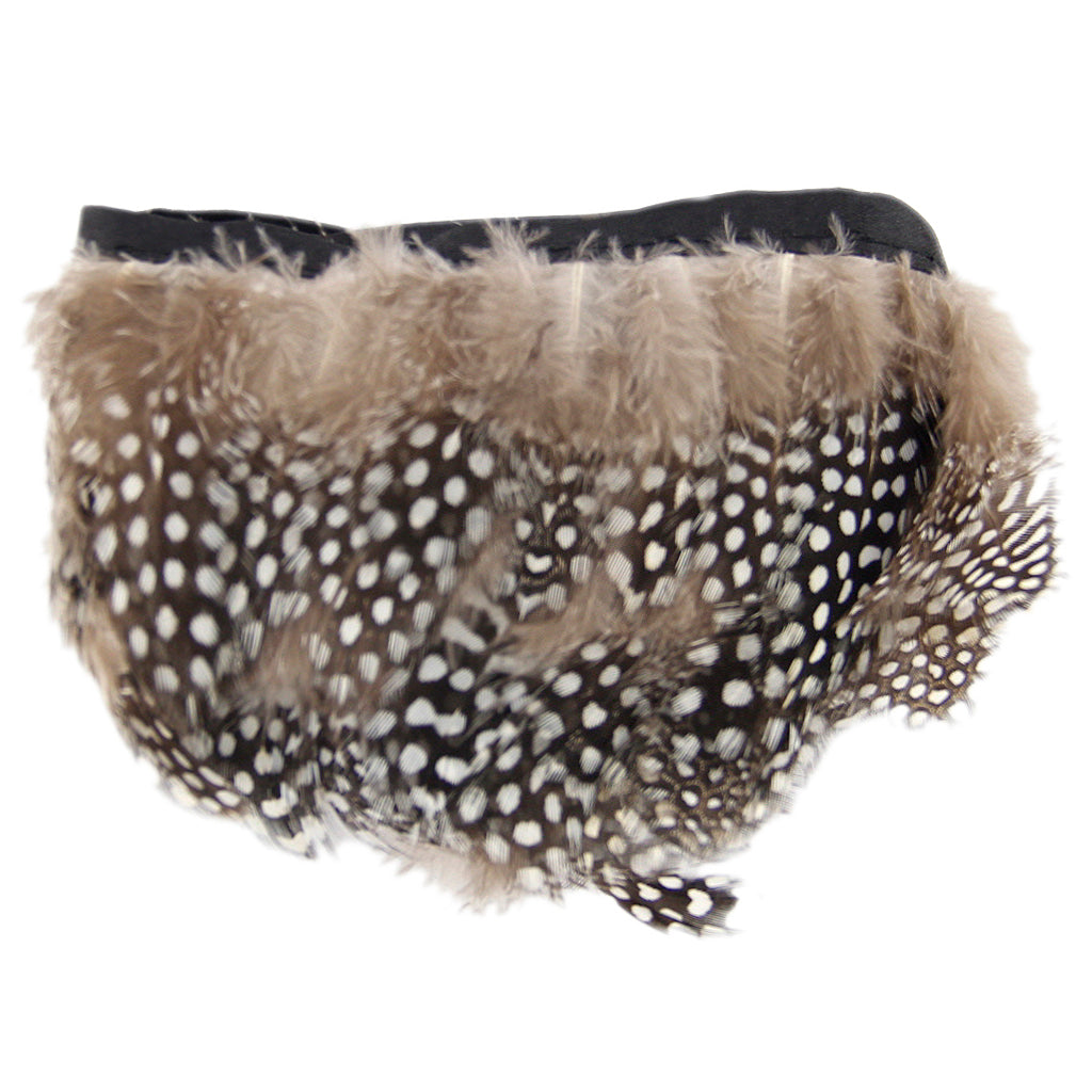 Fowl Feather Fringe 2 Yards Trim Pearl Spots Feather Lace - Natual Color