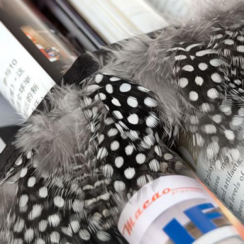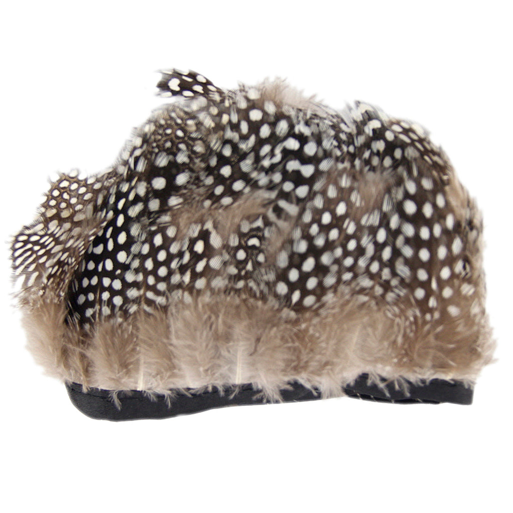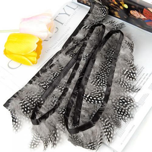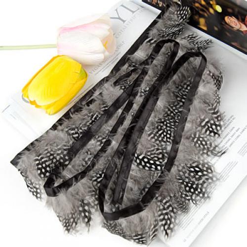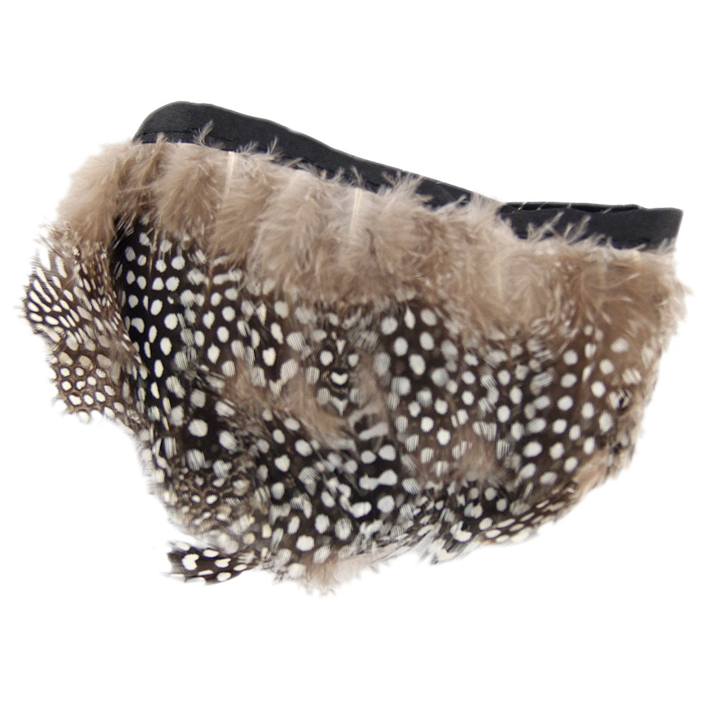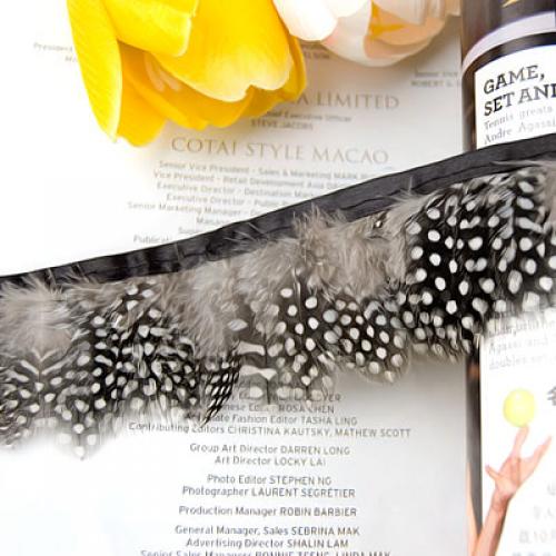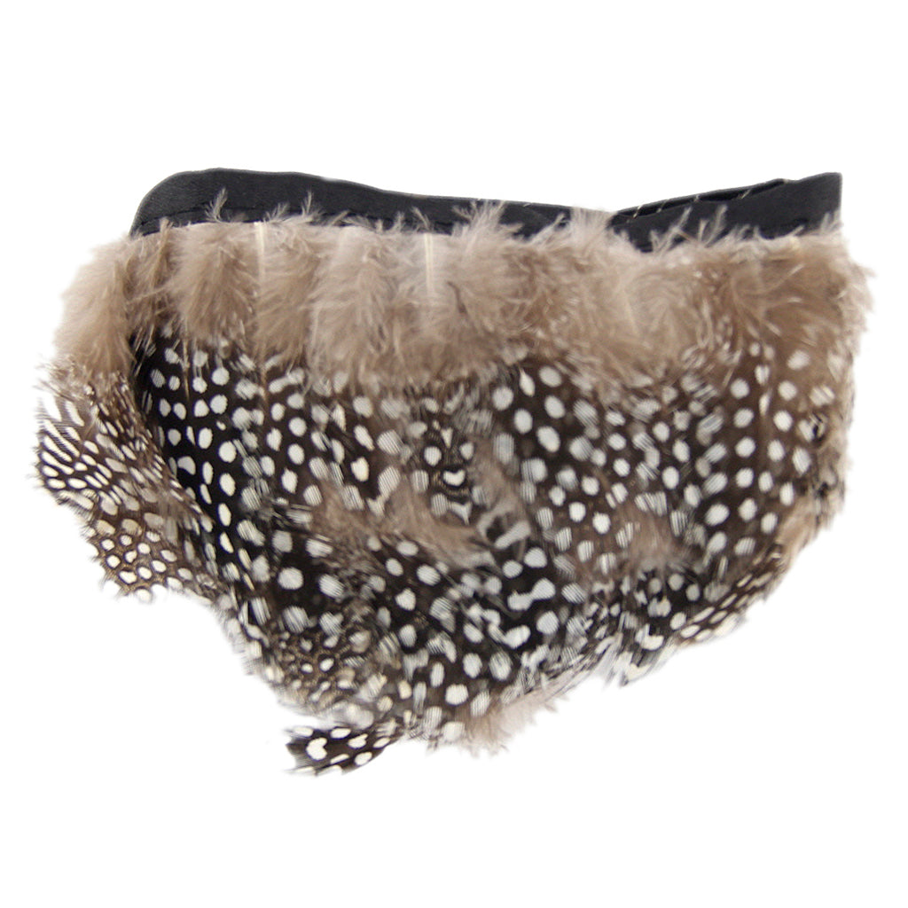 Fowl Feather Fringe 2 Yards Trim Pearl Spots Feather Lace - Natual Color