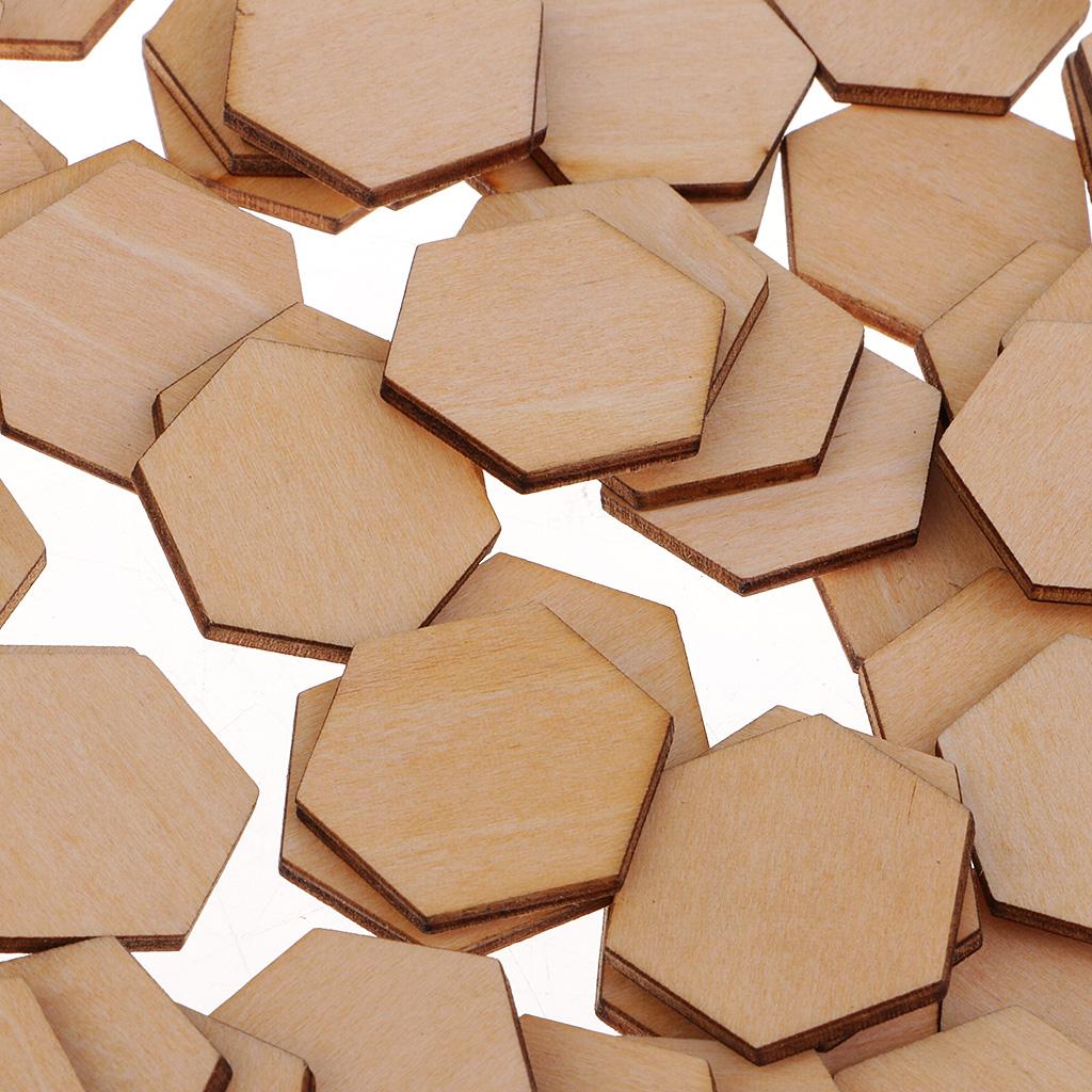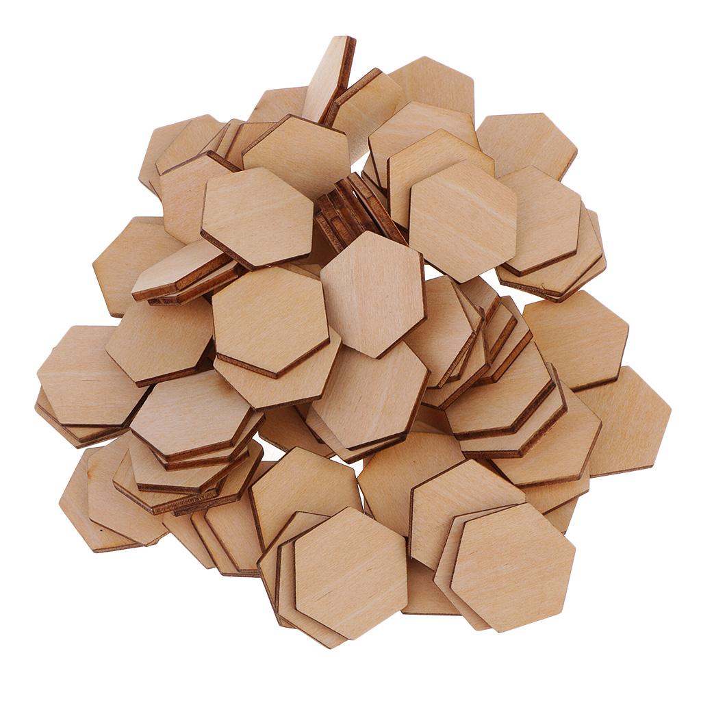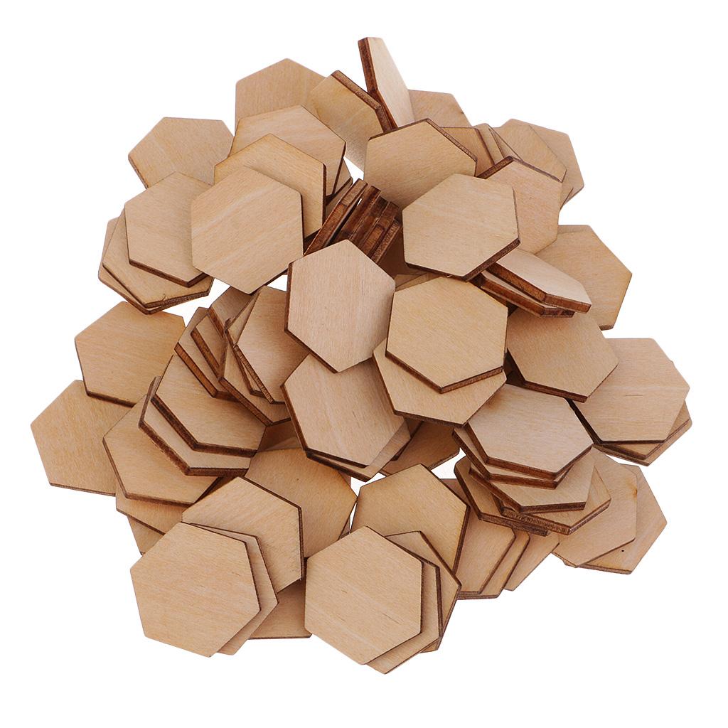 Hexagon Shaped Wooden Embellishments Shapes for Craft Decor DIY 100pcs 25mm