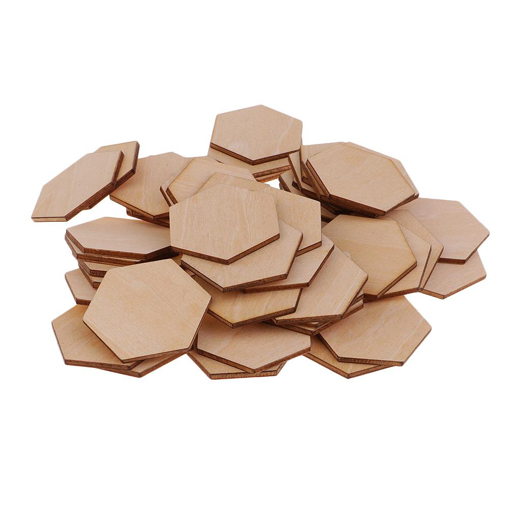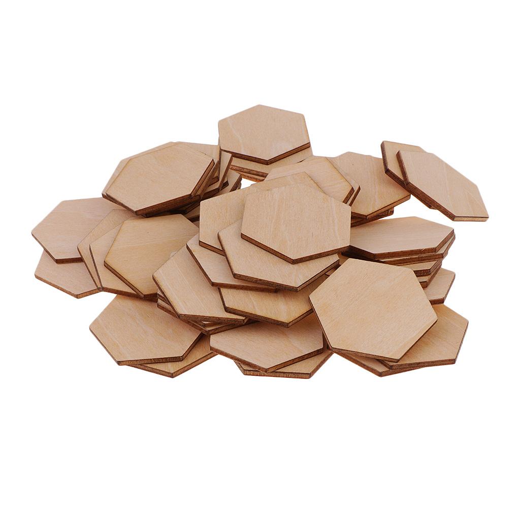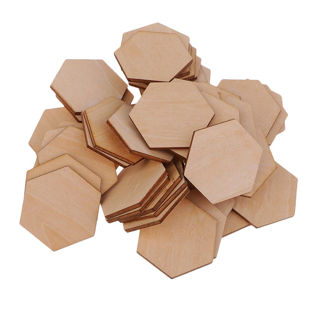 Hexagon Shaped Wooden Embellishments Shapes for Craft Decor DIY 50pcs 40mm