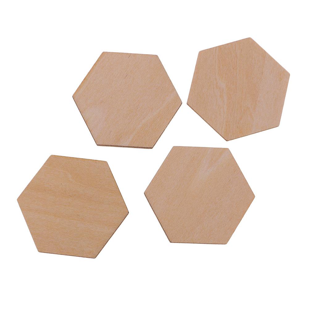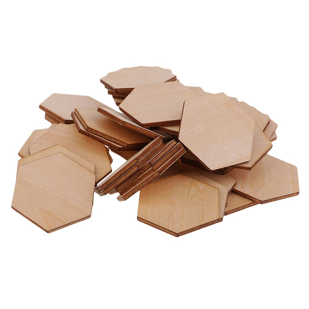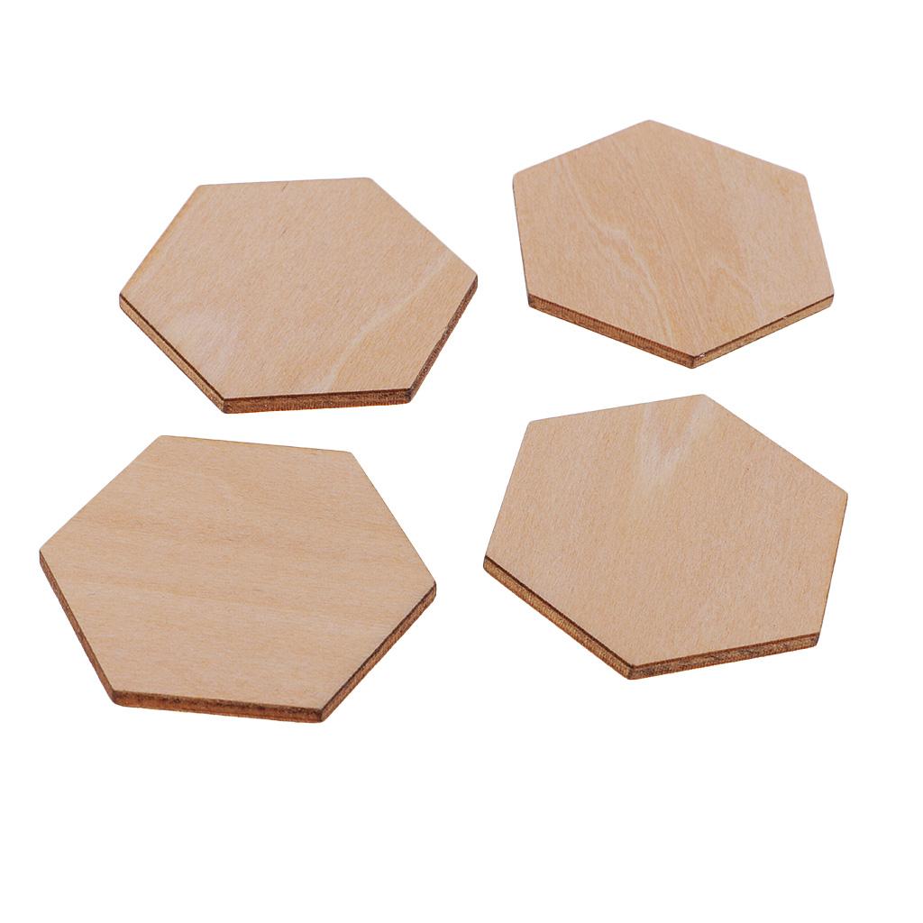 Hexagon Shaped Wooden Embellishments Shapes for Craft Decor DIY 50pcs 40mm