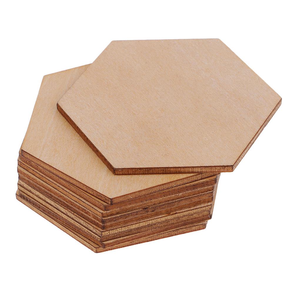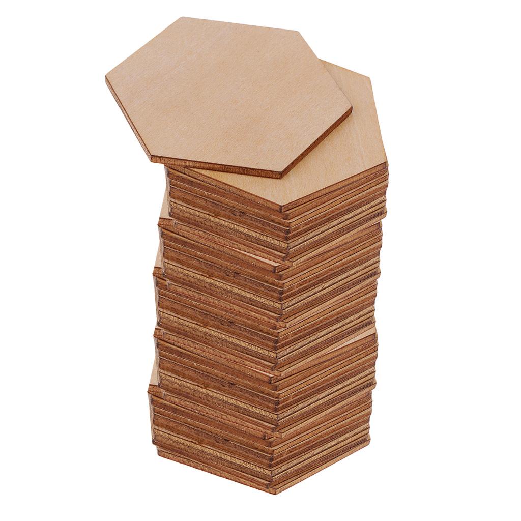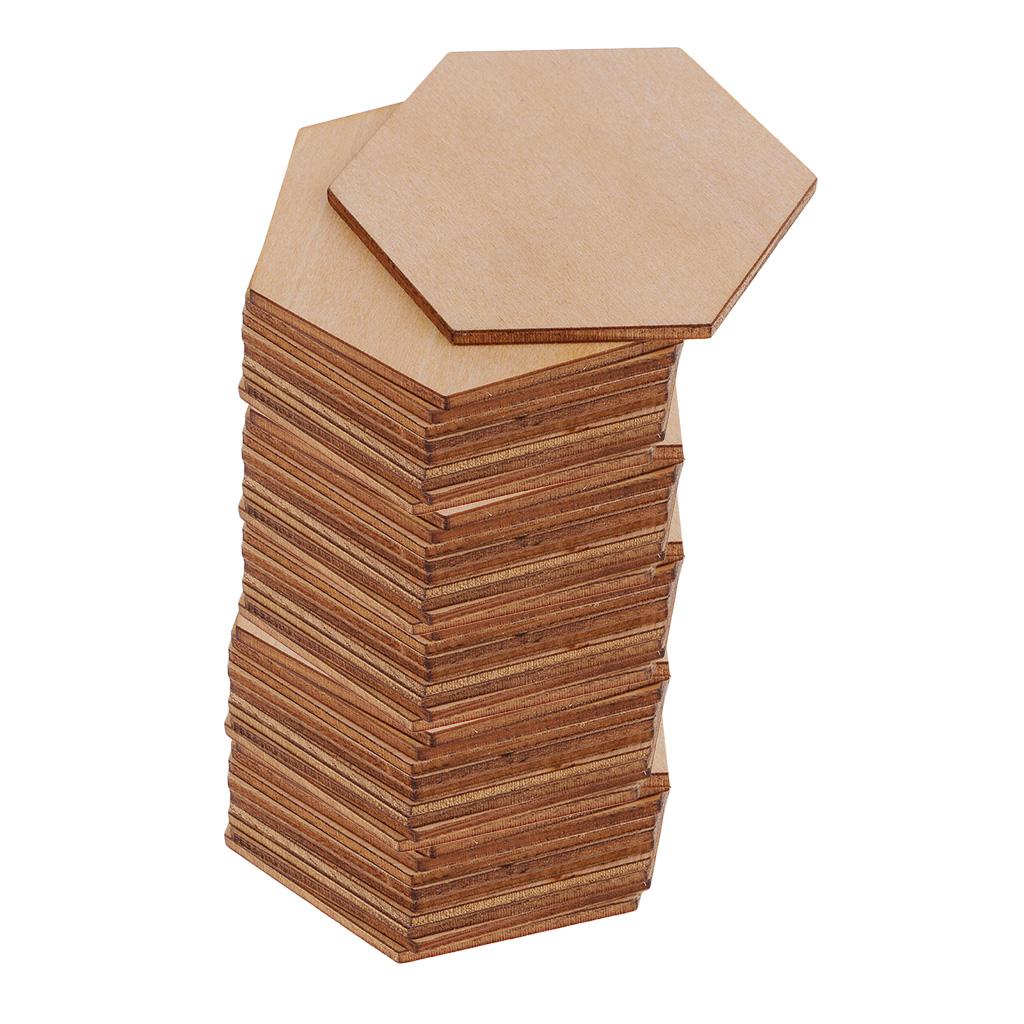 Hexagon Shaped Wooden Embellishments Shapes for Craft Decor DIY 50pcs 60mm