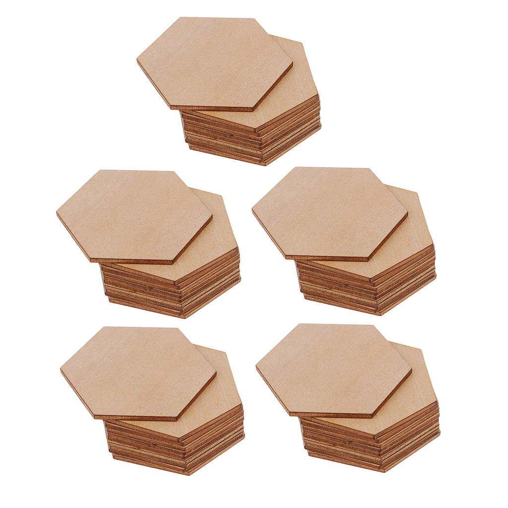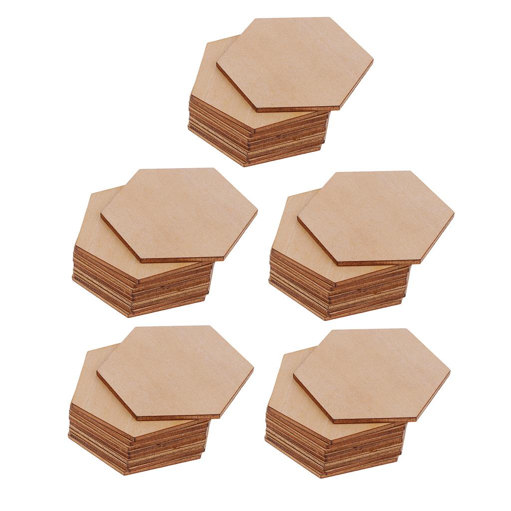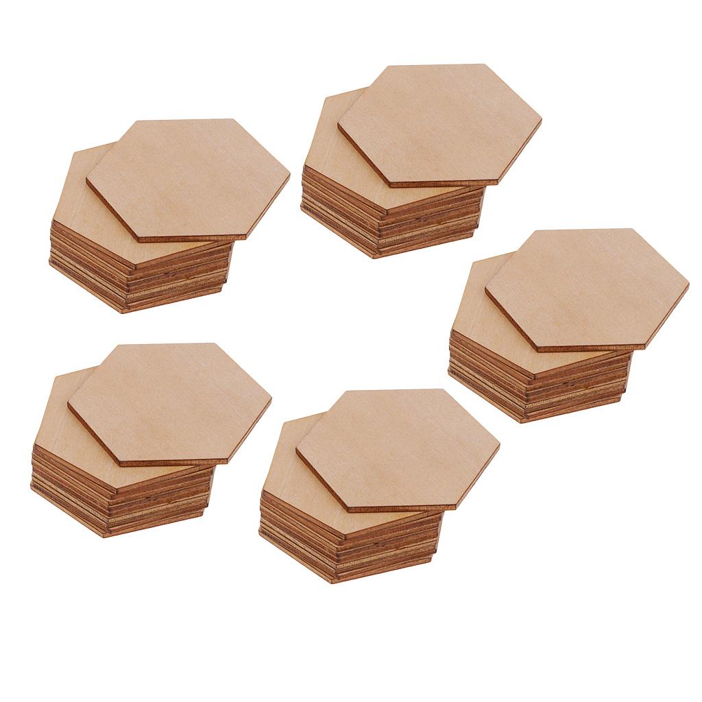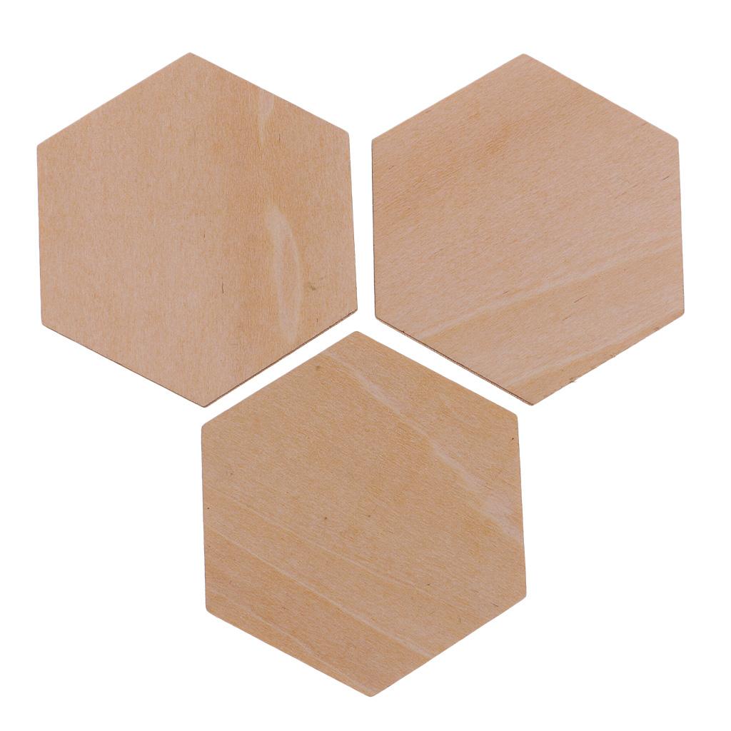 Hexagon Shaped Wooden Embellishments Shapes for Craft Decor DIY 50pcs 60mm