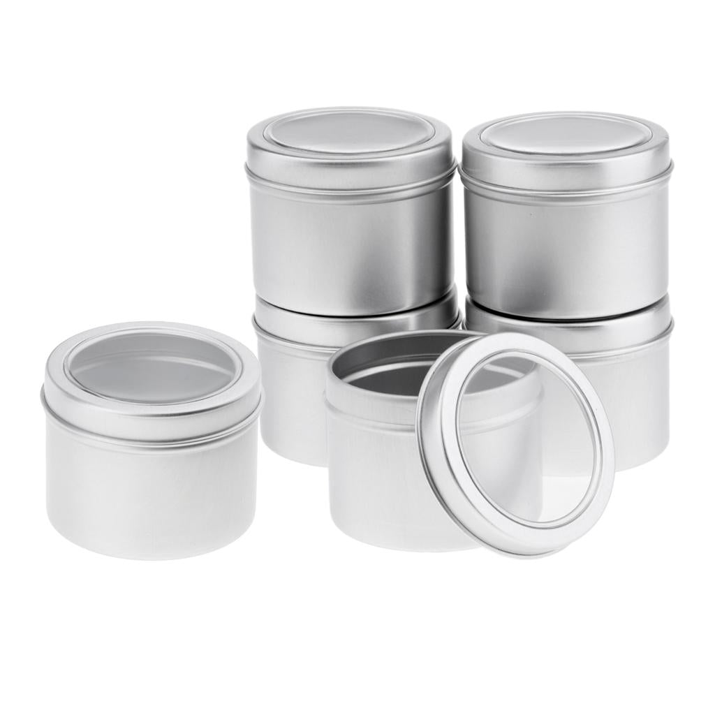 Home Office Supply 6 Pieces Aluminum Round Can Cream Gel Jars Storage Containers With Screw Lid 60x46mm