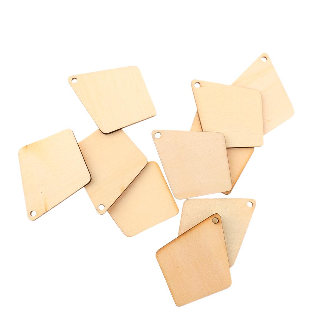Pack of 10 Quadrangle Wood Shapes Charms for DIY Woodcrafts