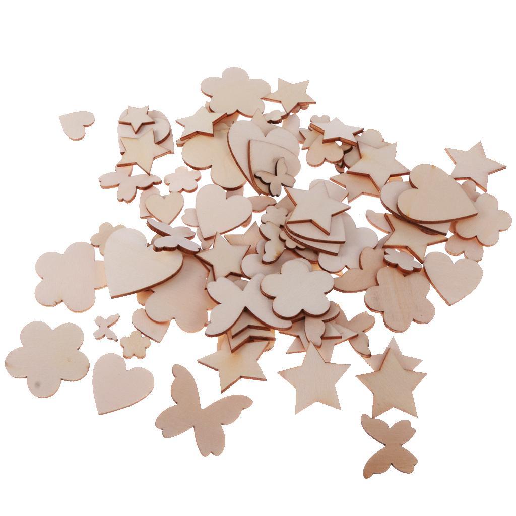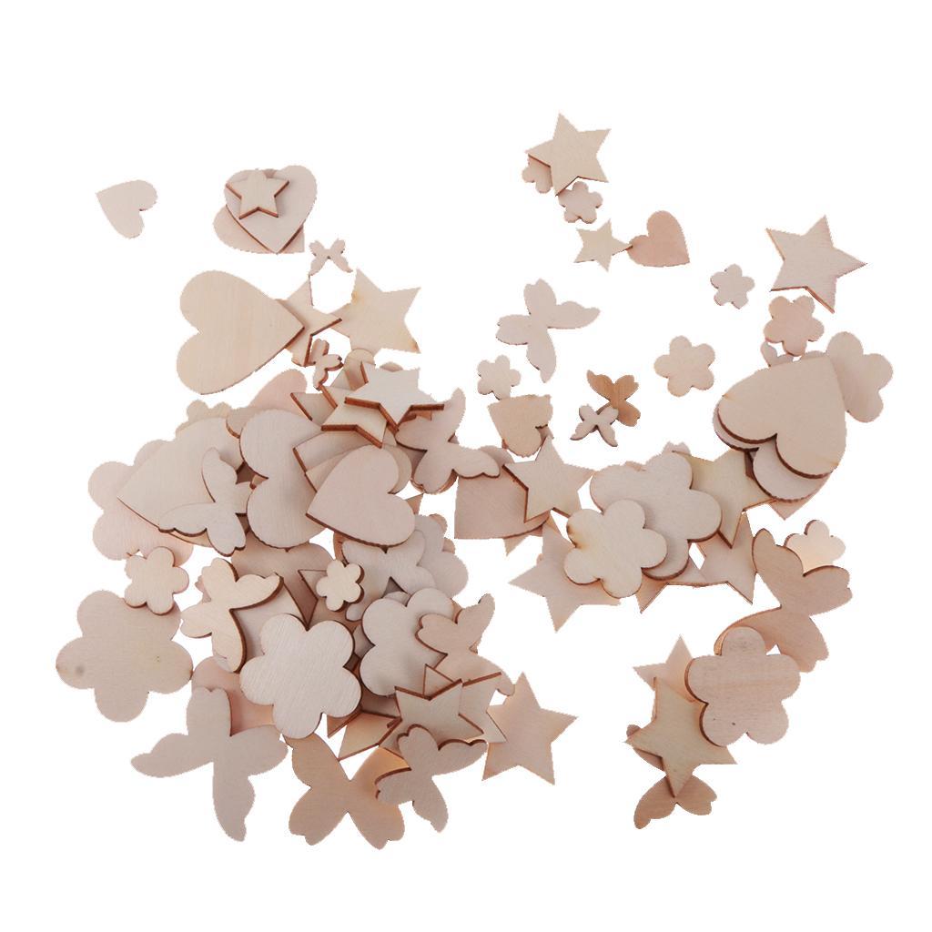 Pack of 100 Assorted Wooden Shape Hearts Plum Flower Star Embellishments for Scrapbooking Craft