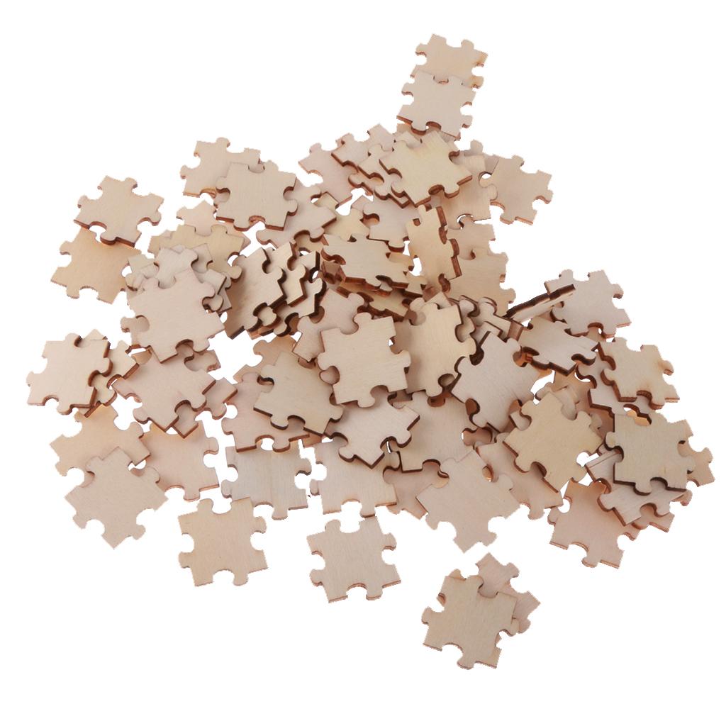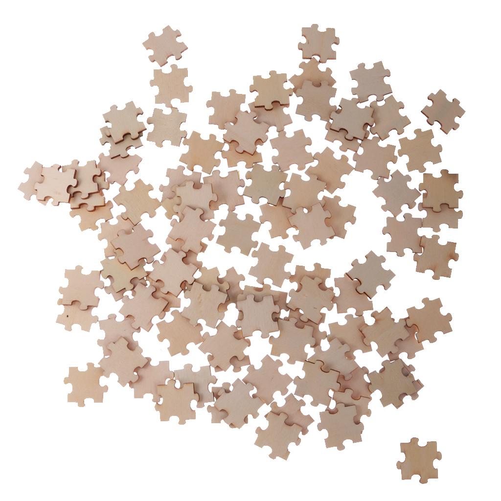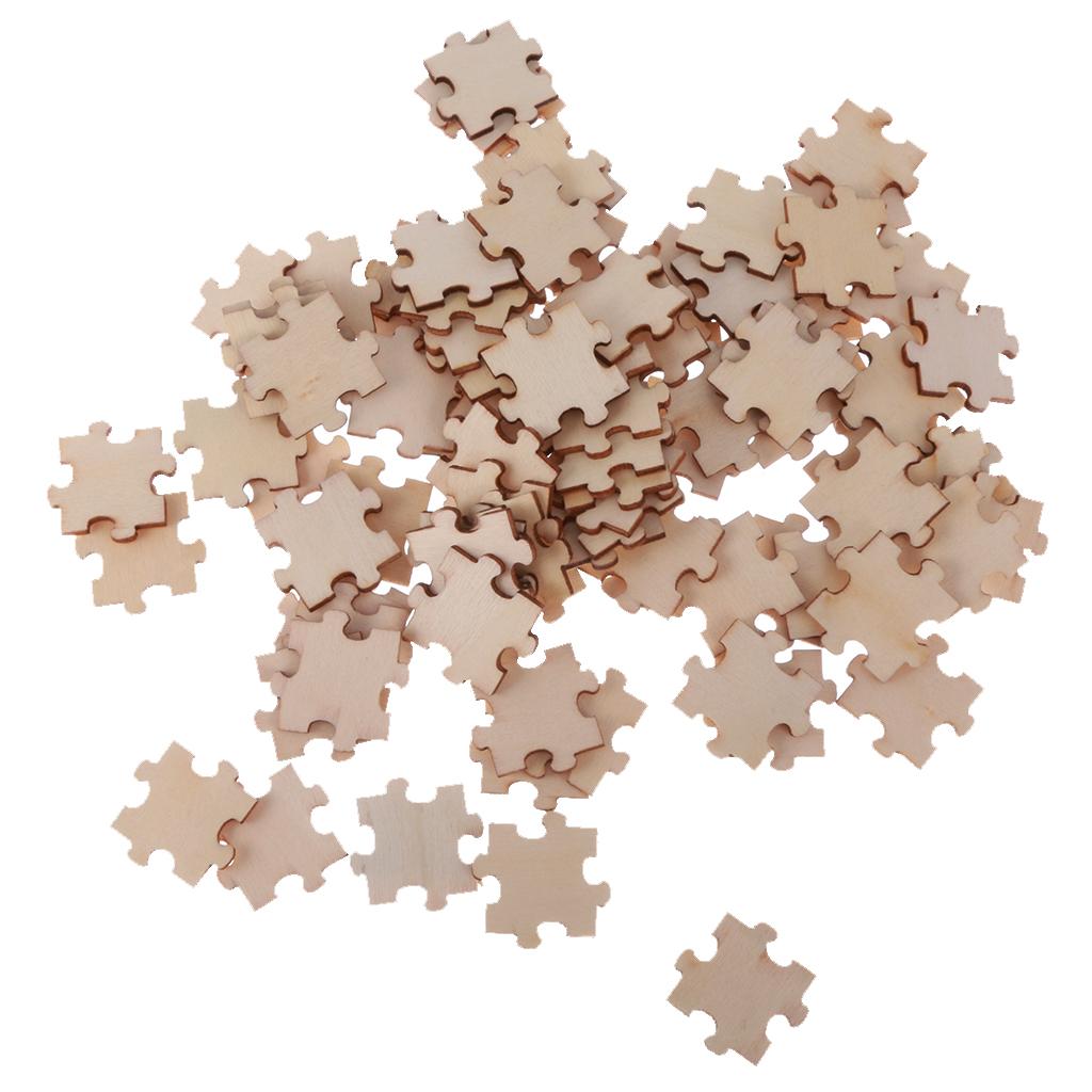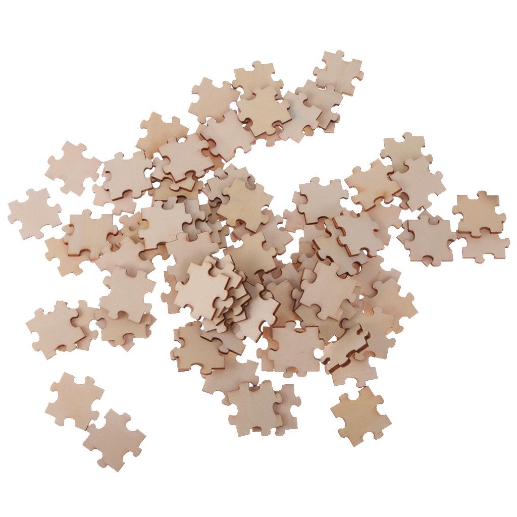 Pack of 100 Wooden Cutout Pieces Puzzle Shape Embellishments for Kids DIY Art Crafts