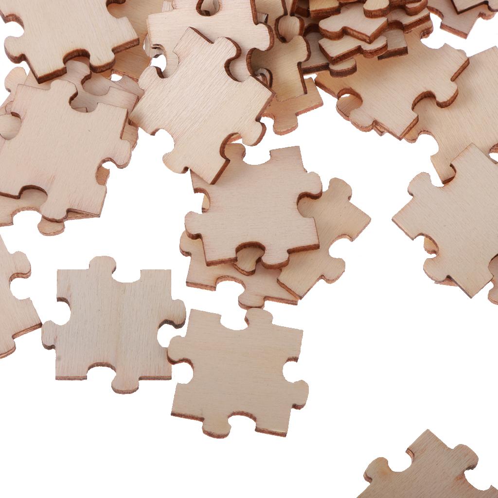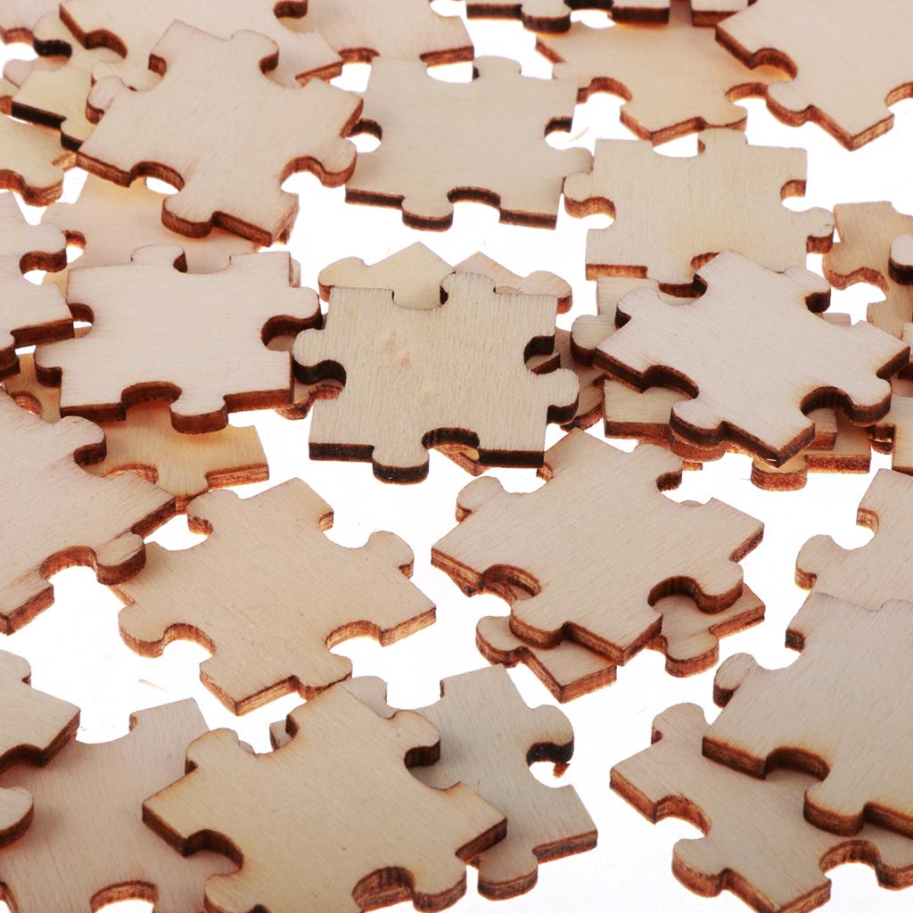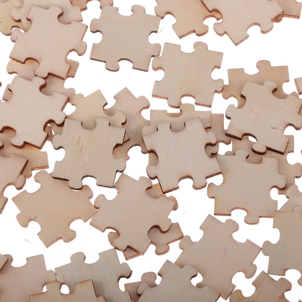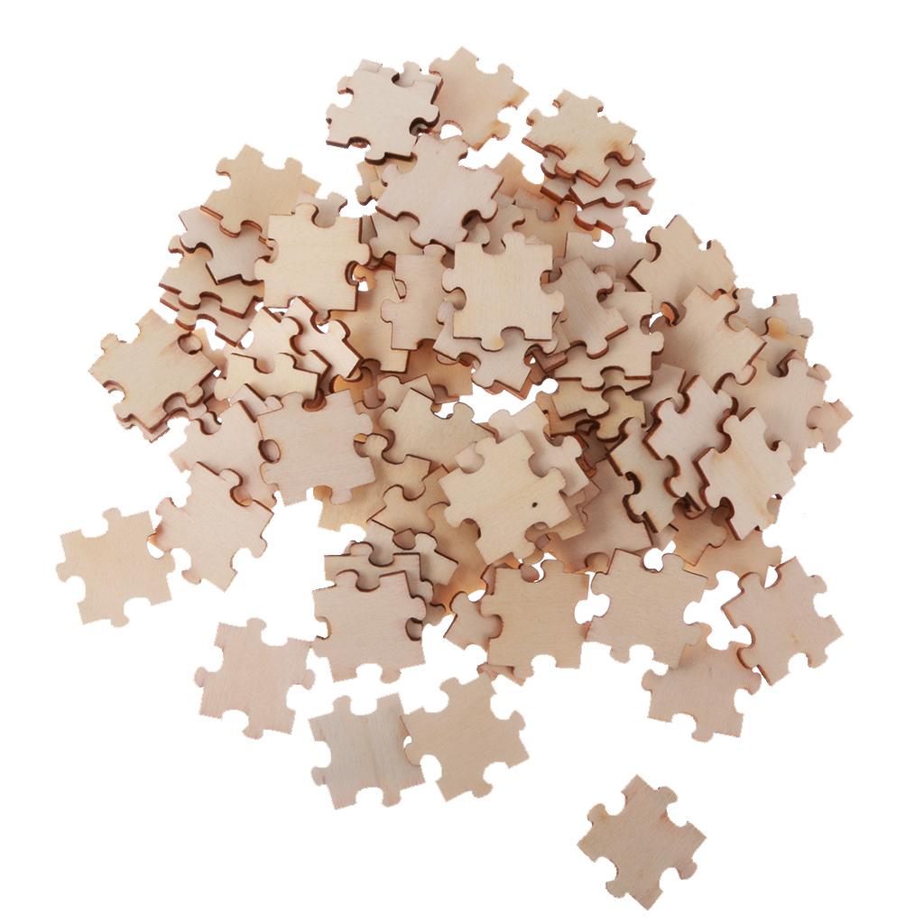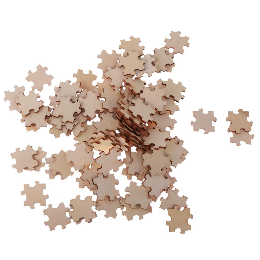 Pack of 100 Wooden Cutout Pieces Puzzle Shape Embellishments for Kids DIY Art Crafts
