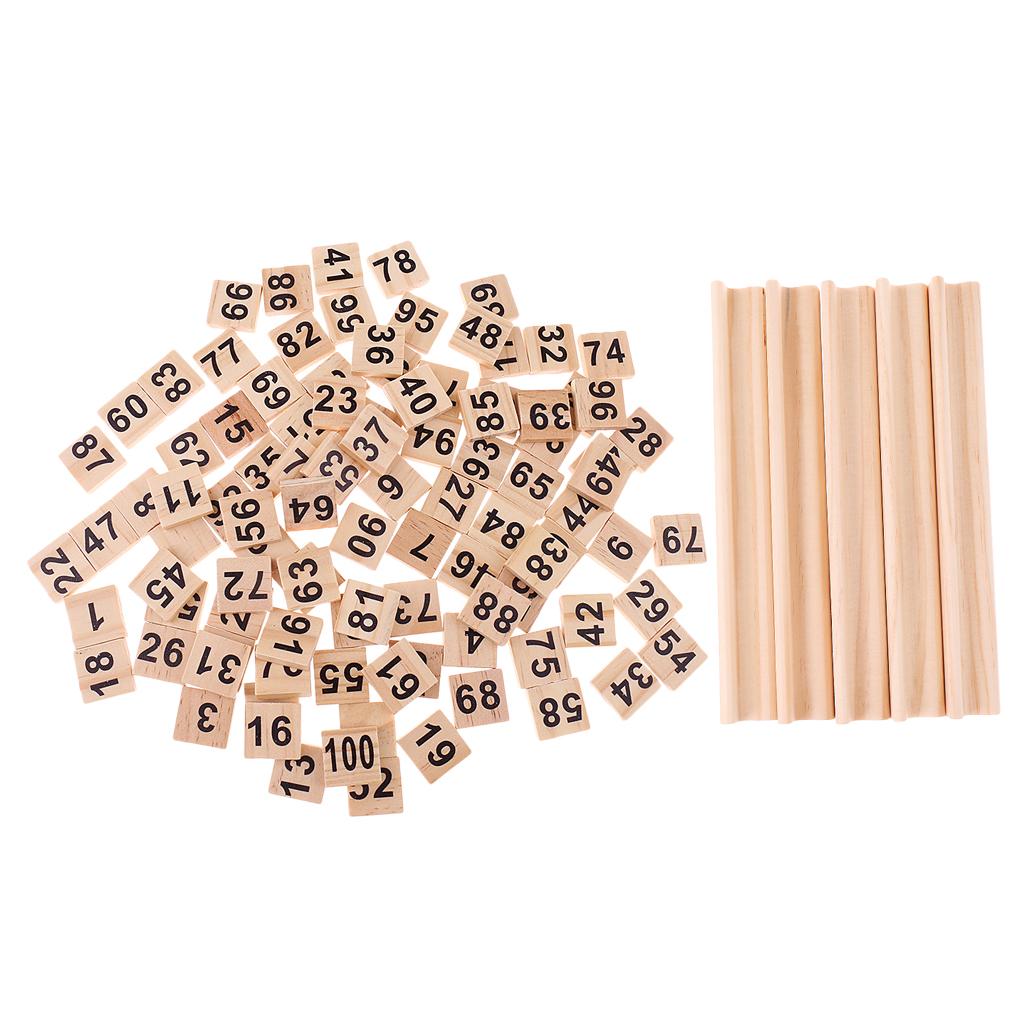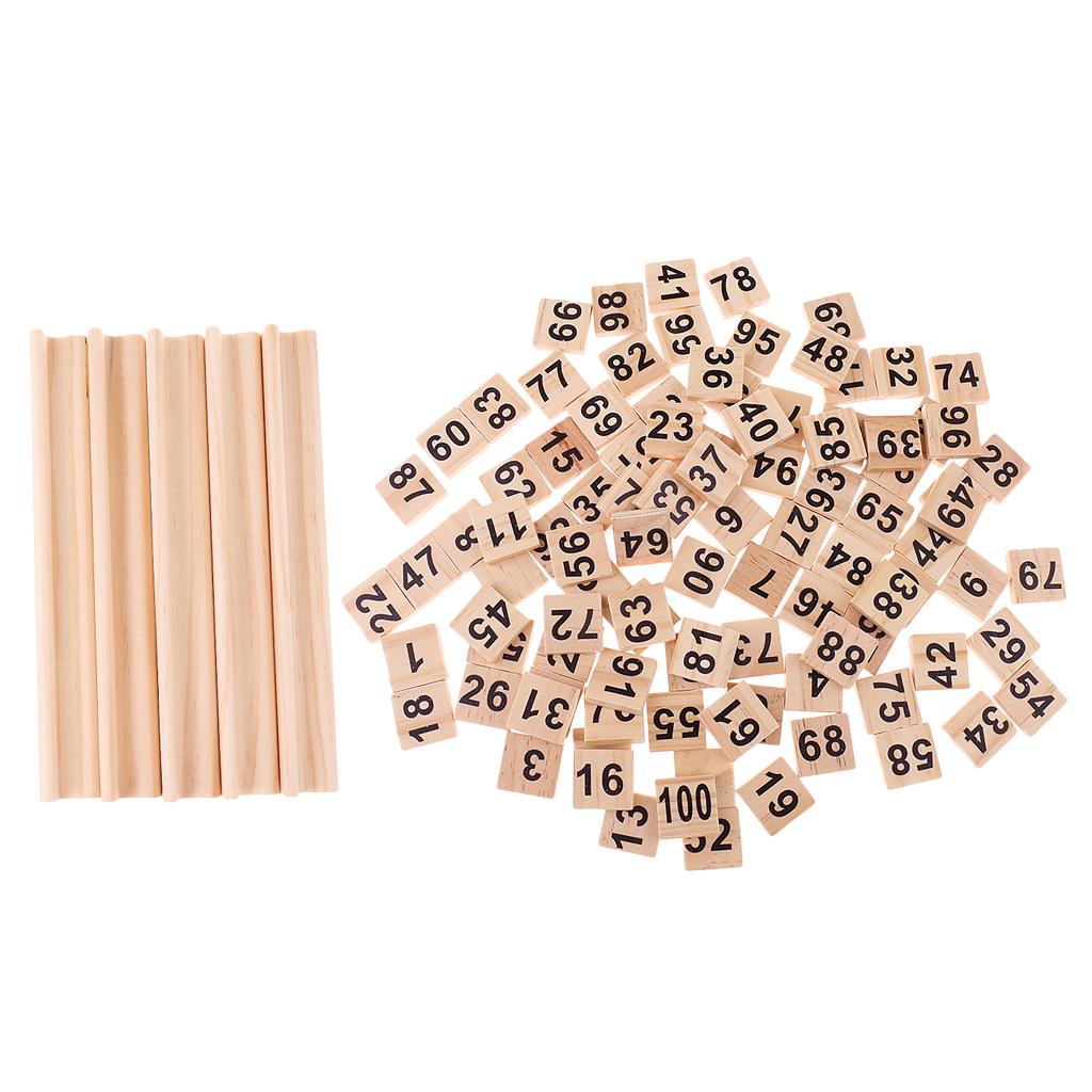100 Pieces Wooden Number Tiles & 5 Pieces Wooden Tile Trays Wood Crafts.