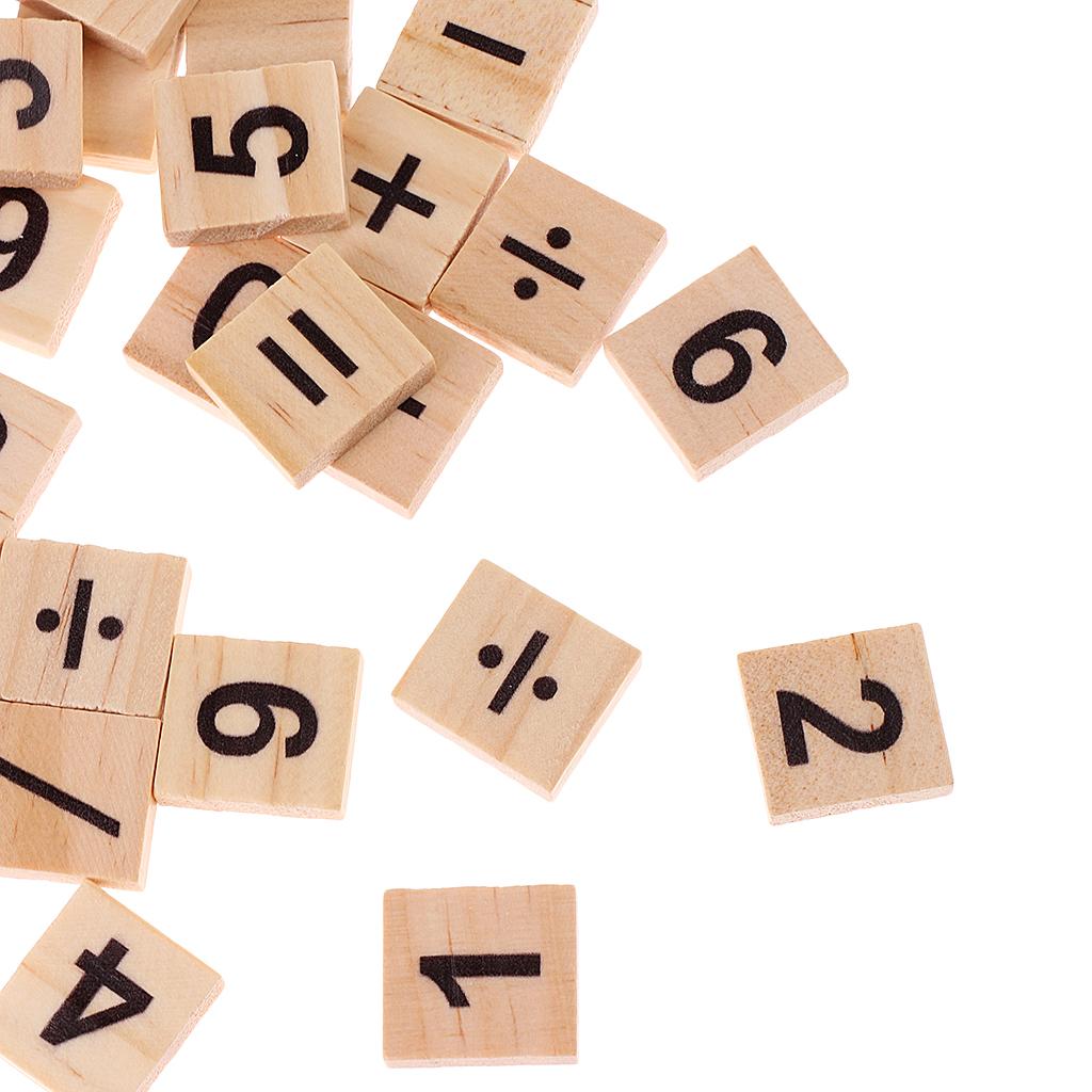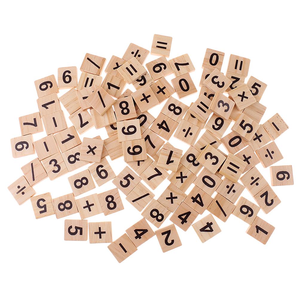 100 Pieces Wooden Number and Symbol Tiles