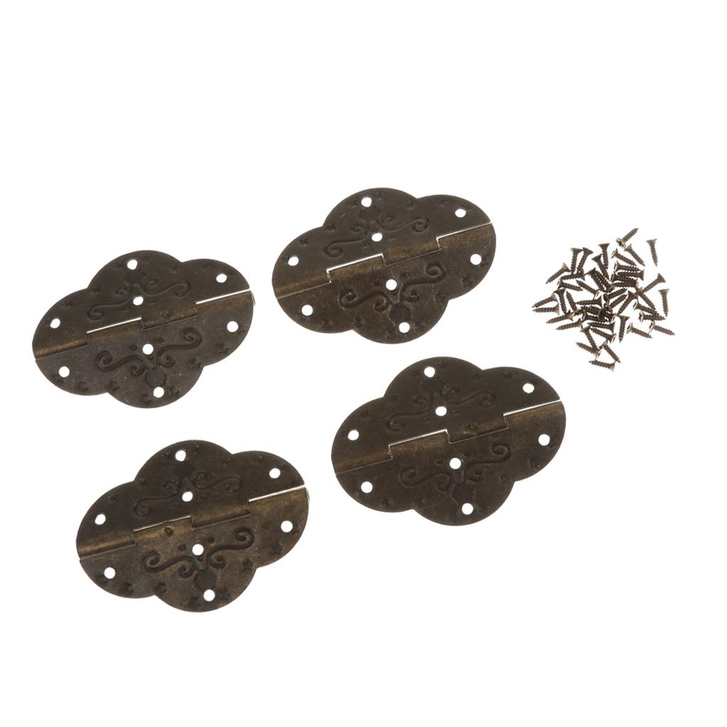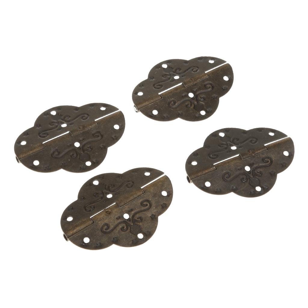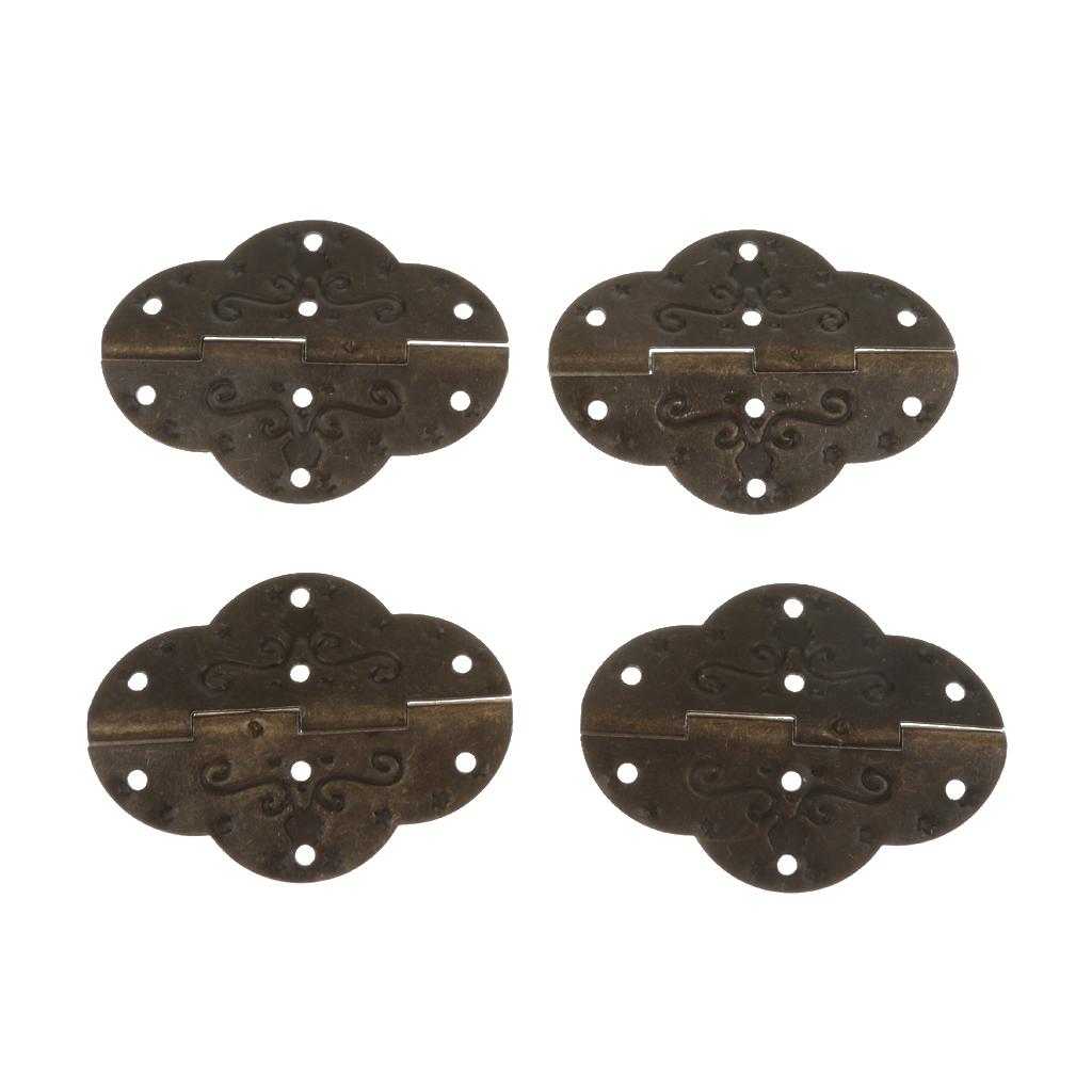 Phenovo 4pcs Flowered Oval Antique Alloy Hinge for DIY Crafts Small Cabinet