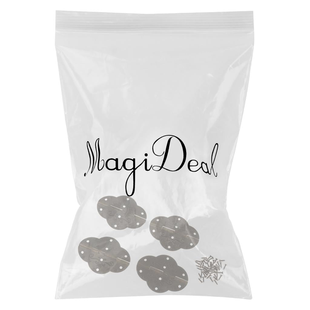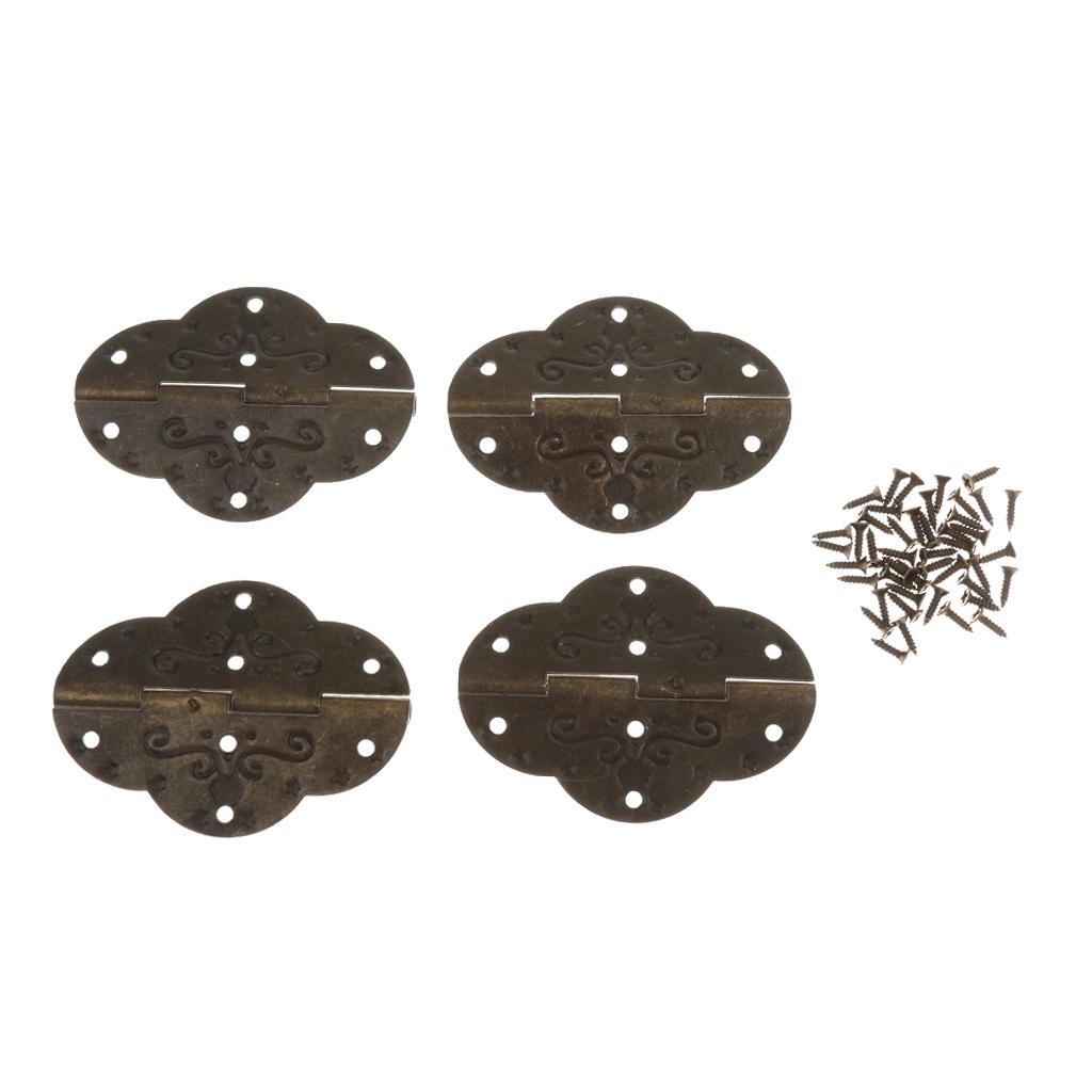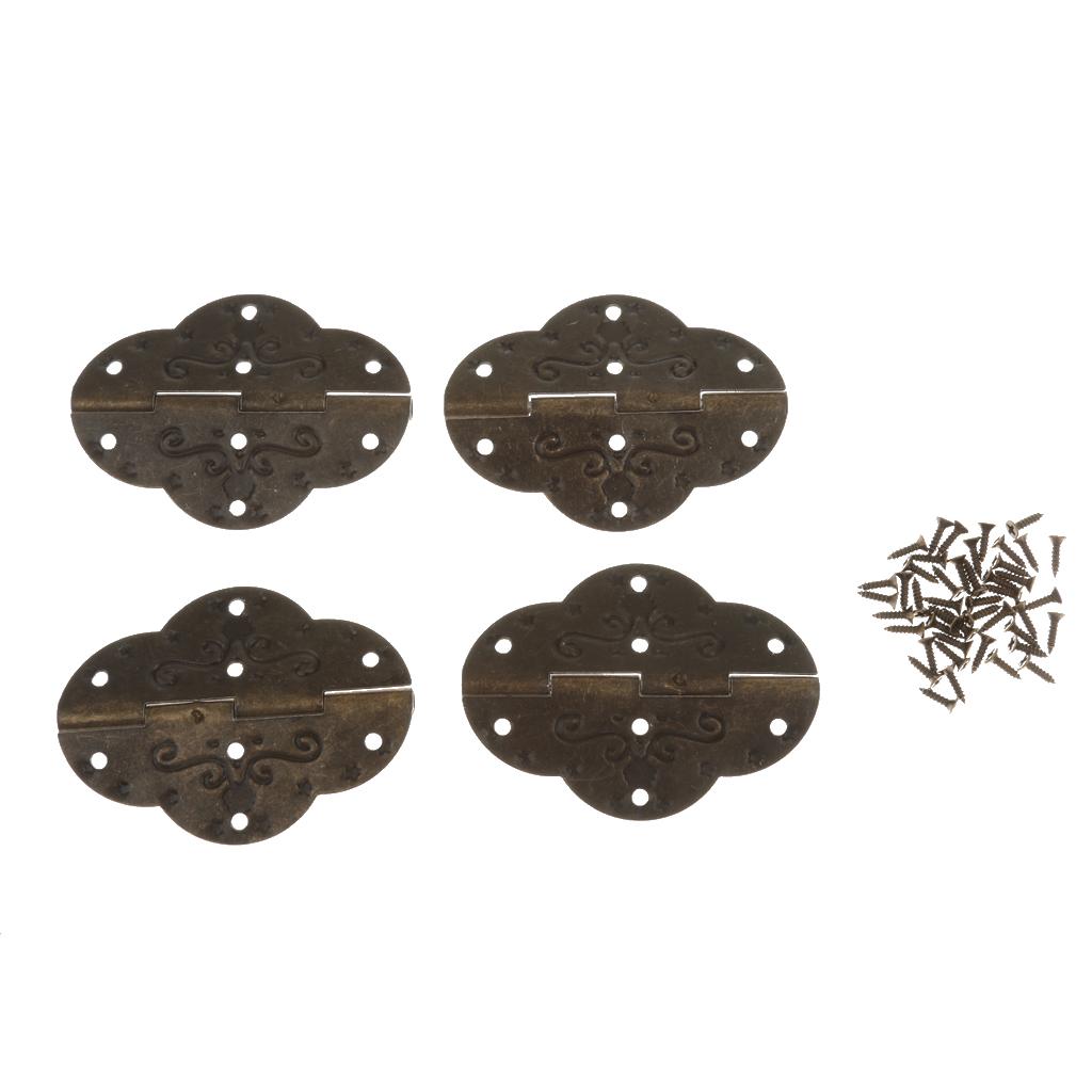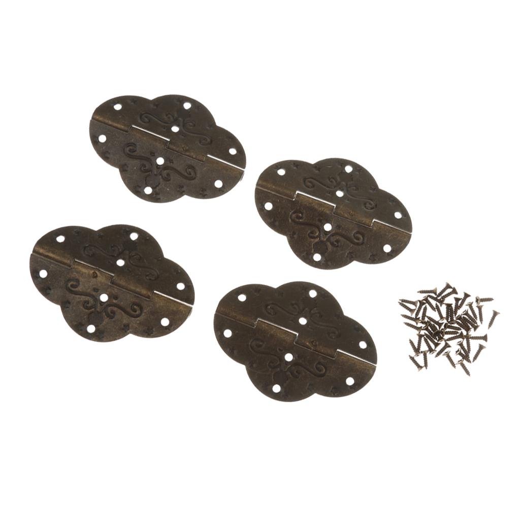 Phenovo 4pcs Flowered Oval Antique Alloy Hinge for DIY Crafts Small Cabinet