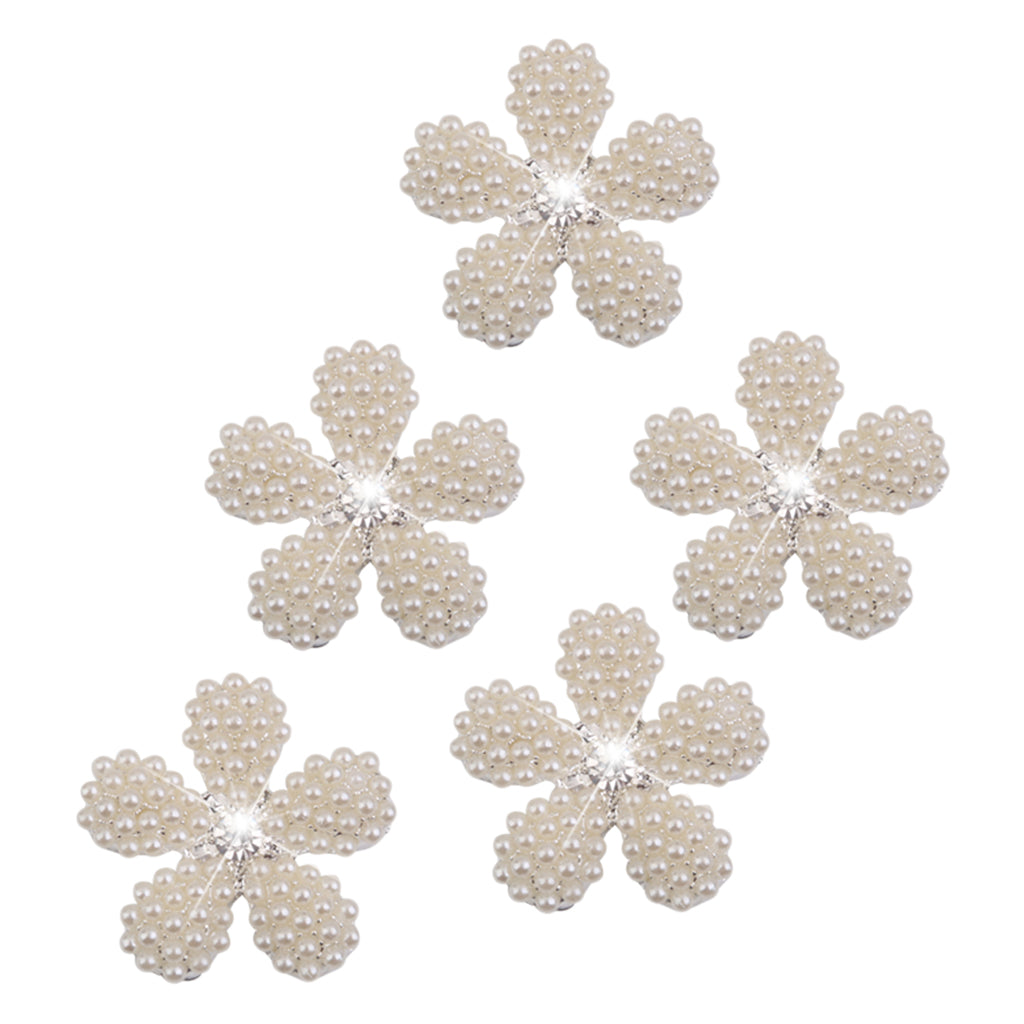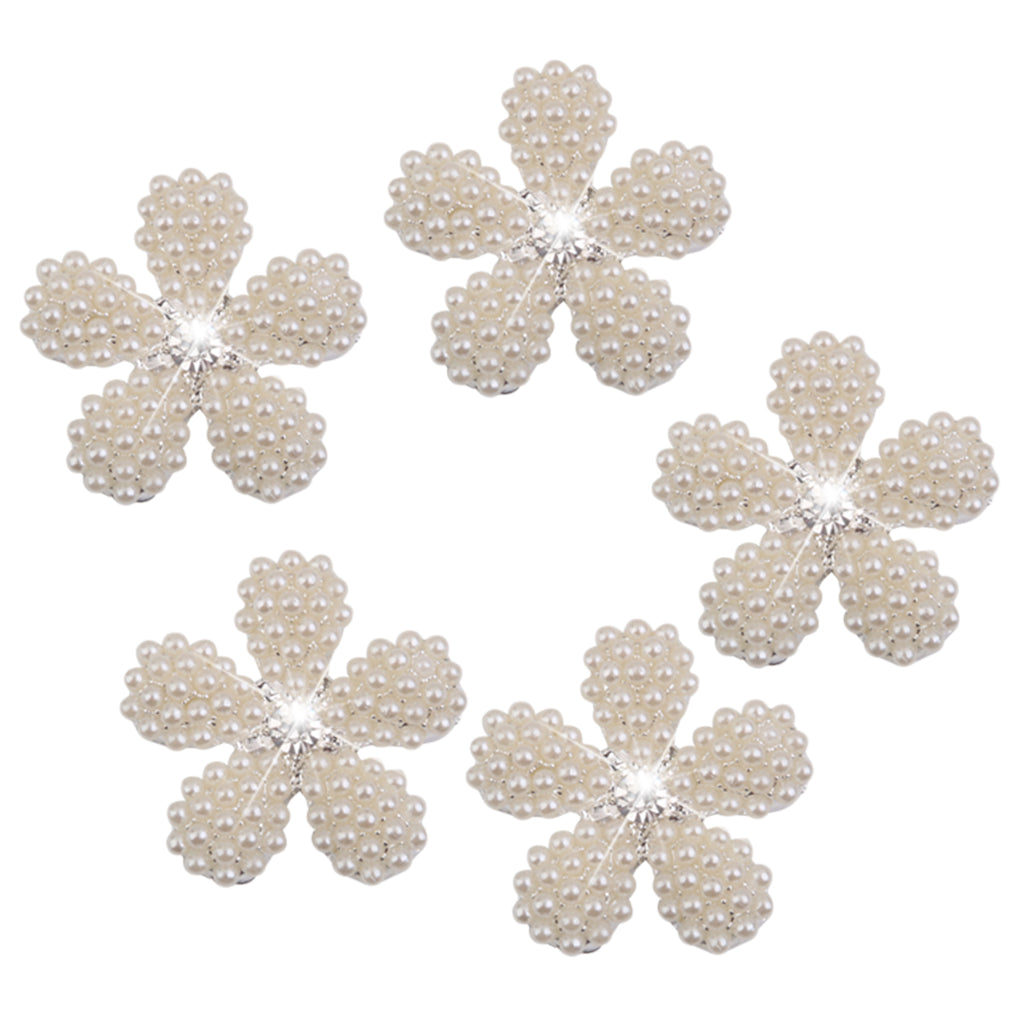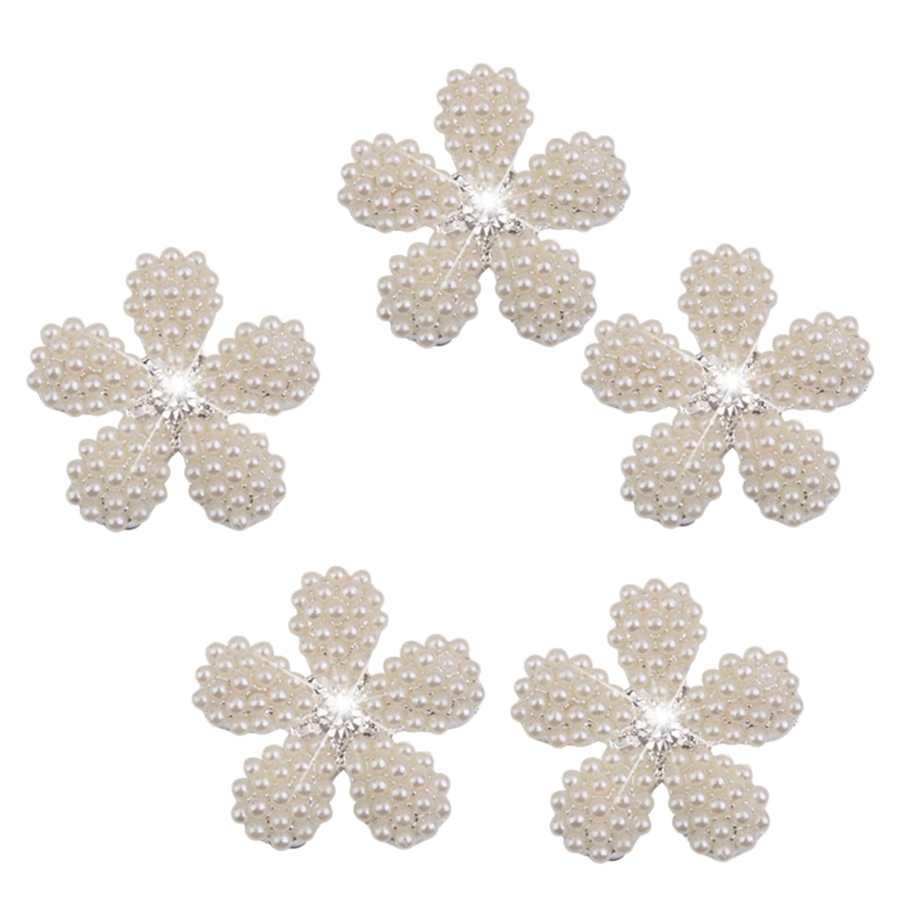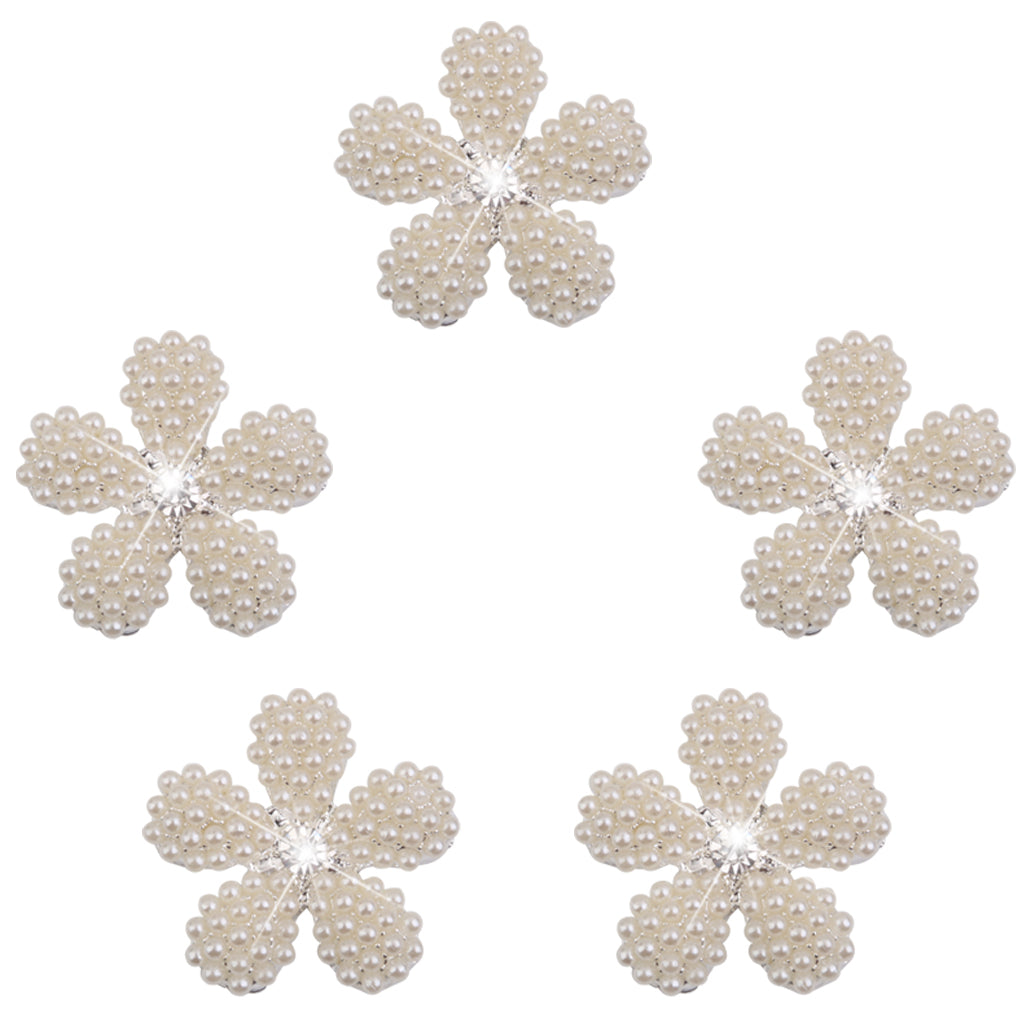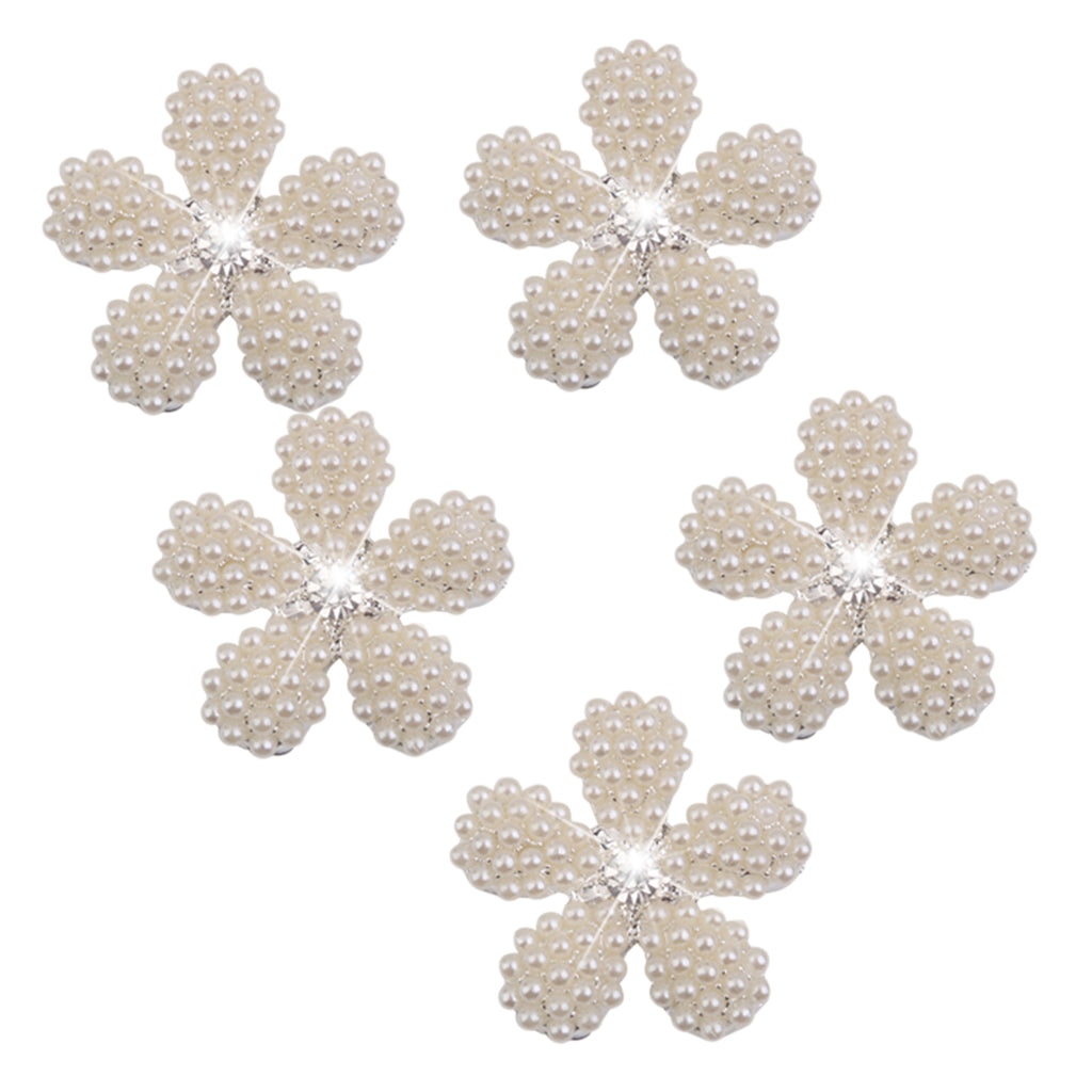 Phenovo Crystal Faux Pearl Flower Button DIY Embellishment 25mm 5pcs Beige