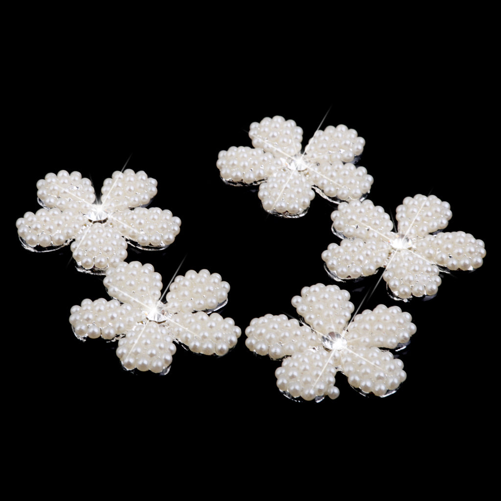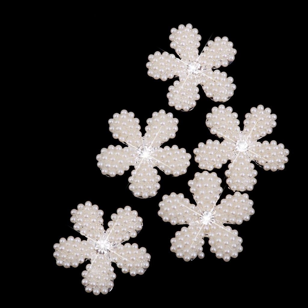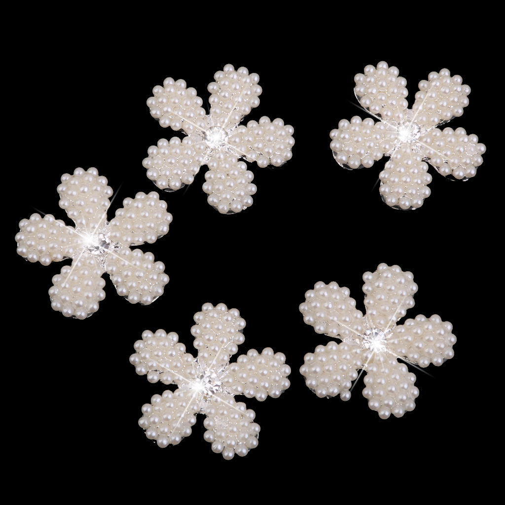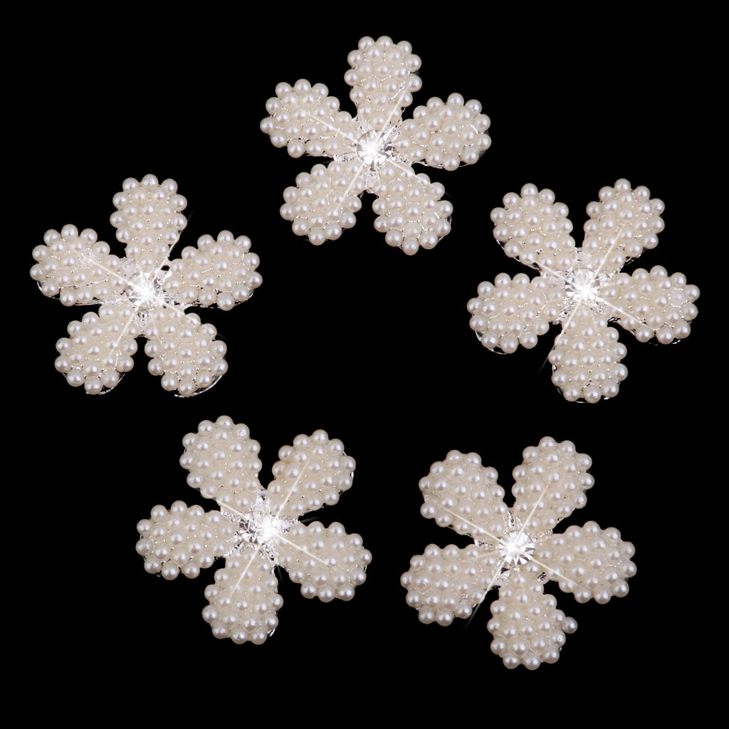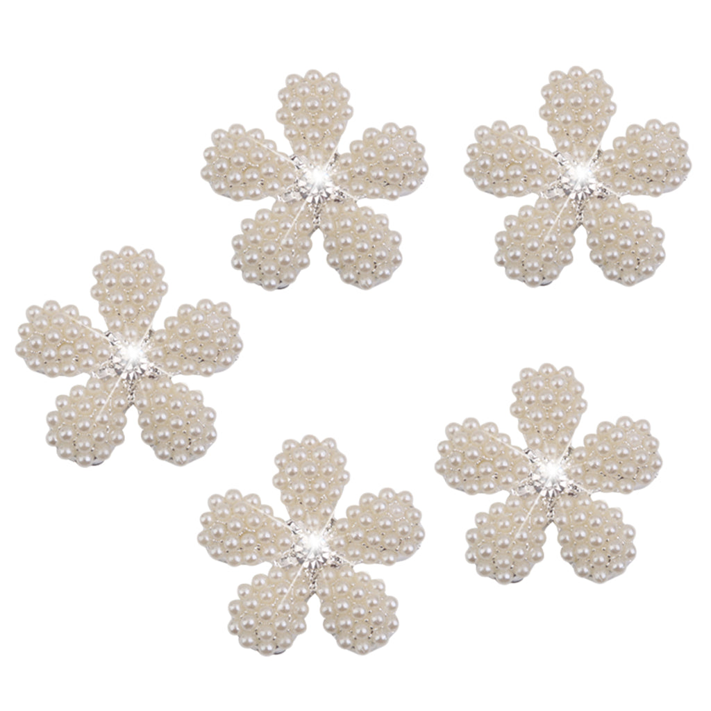 Phenovo Crystal Faux Pearl Flower Button DIY Embellishment 25mm 5pcs Beige