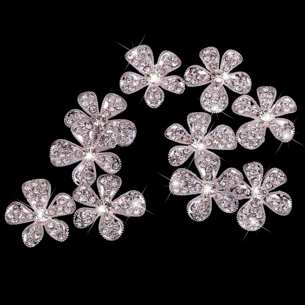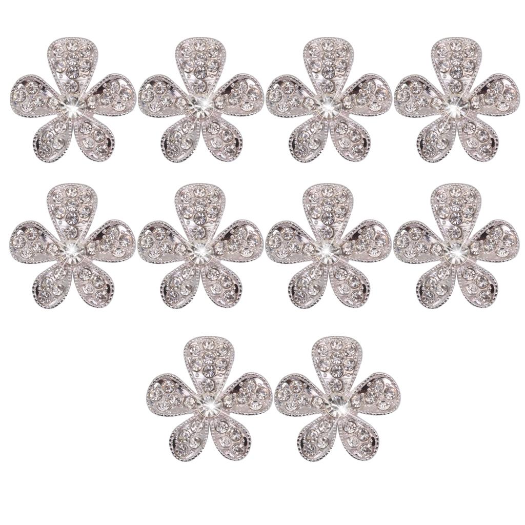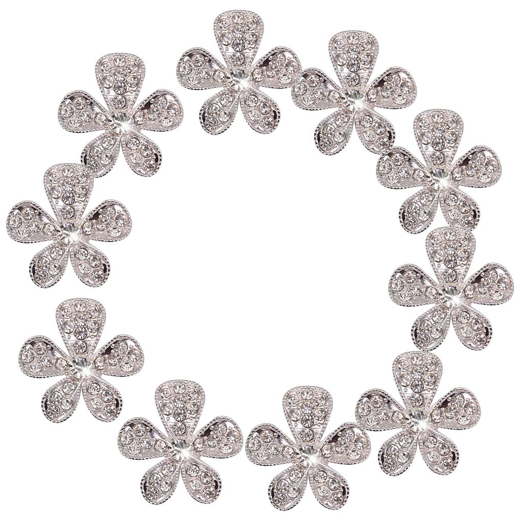 Phenovo Crystal Flower Rhinestone Buttons DIY Craft Embellishment Silver