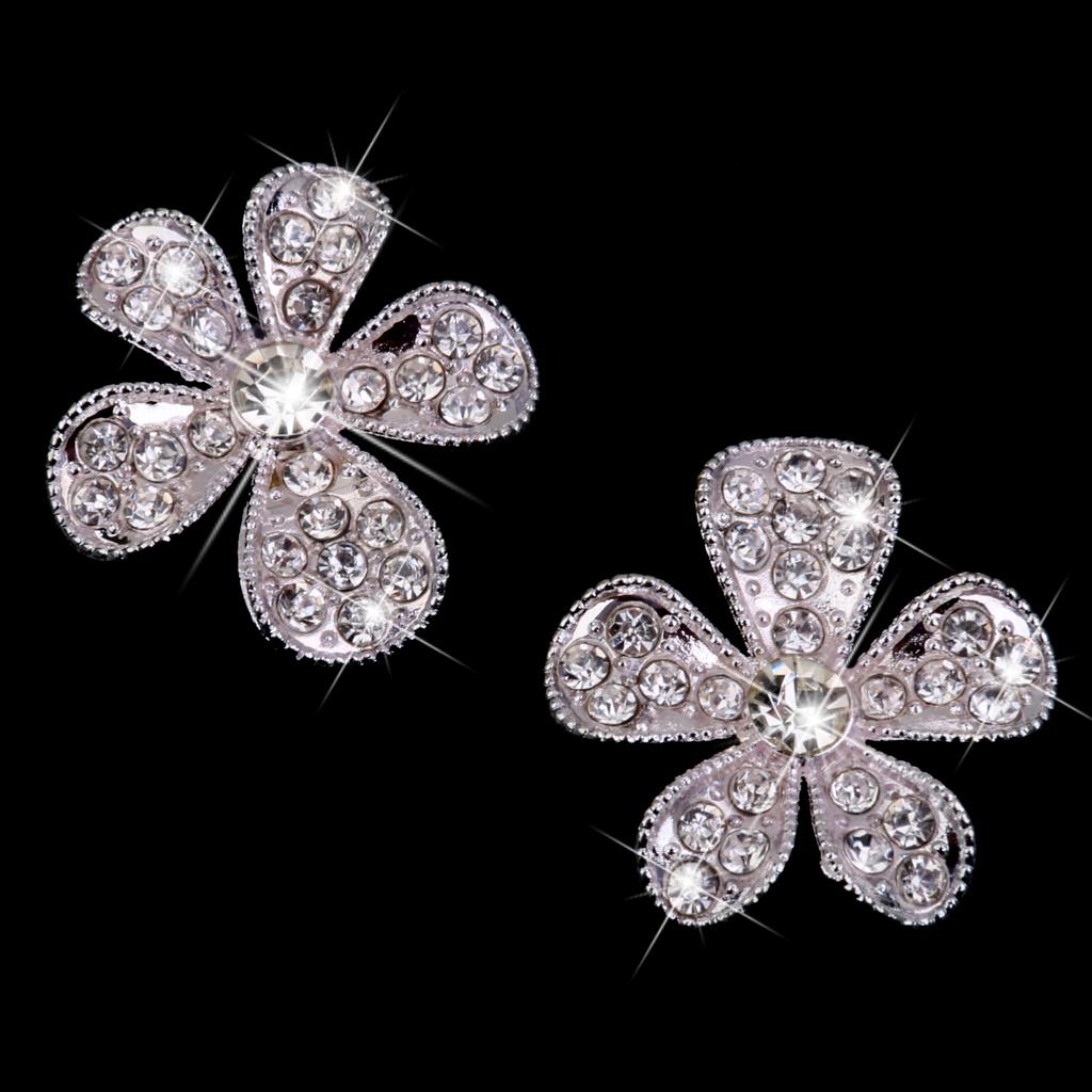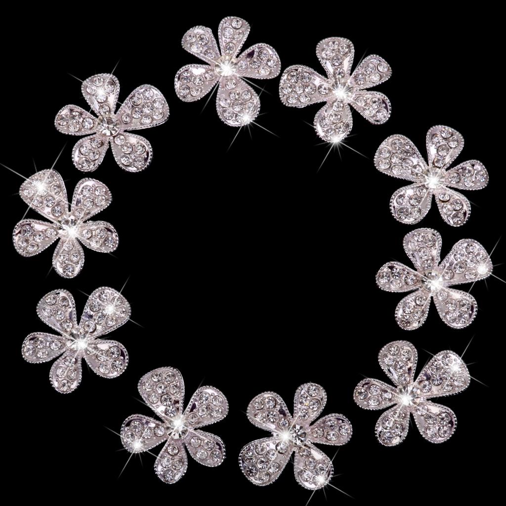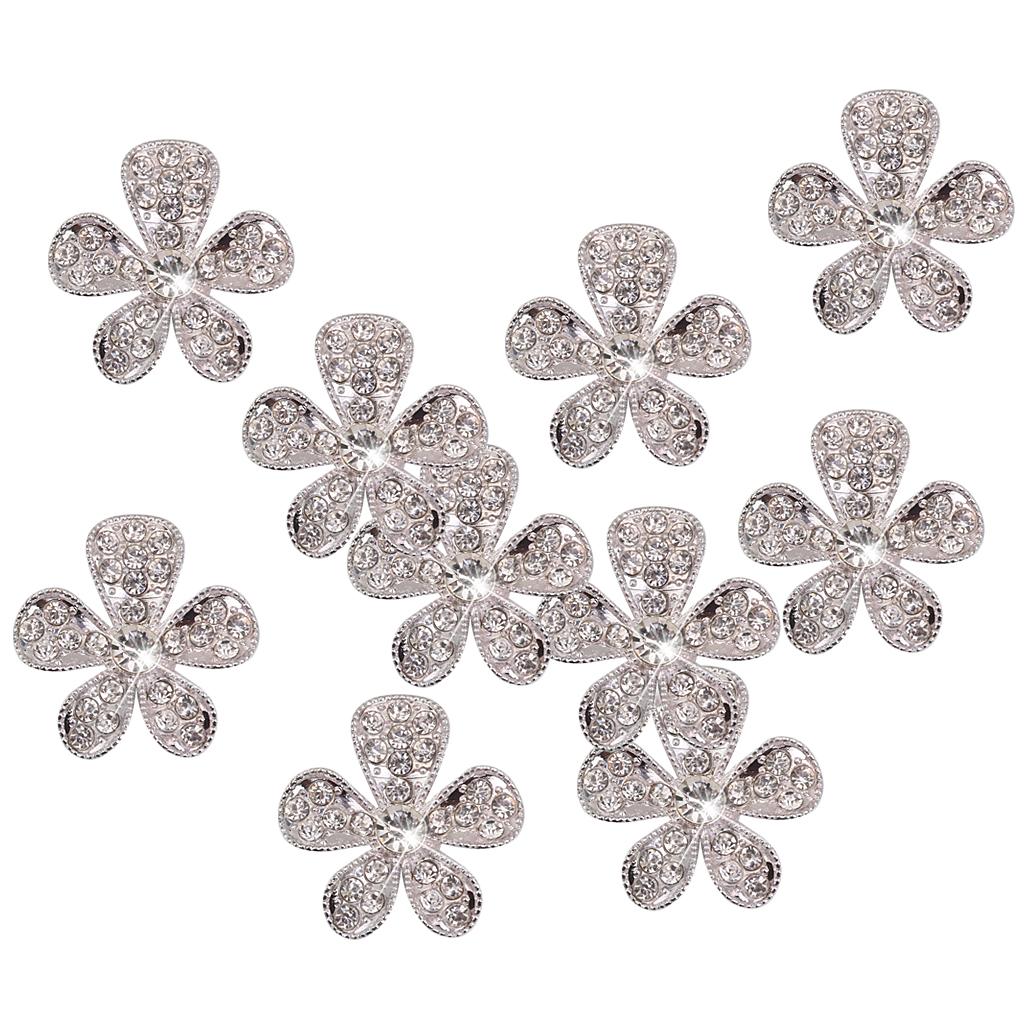 Phenovo Crystal Flower Rhinestone Buttons DIY Craft Embellishment Silver