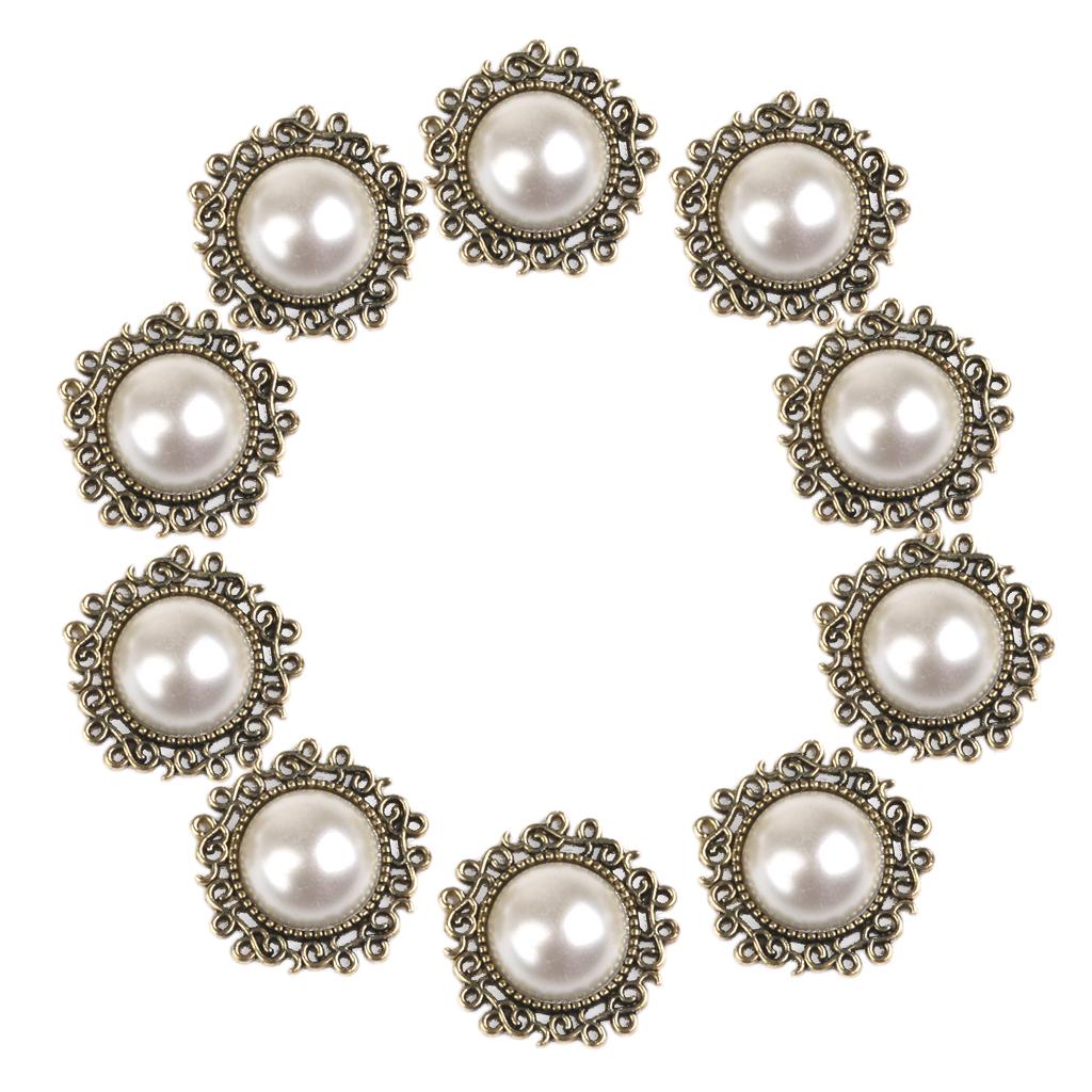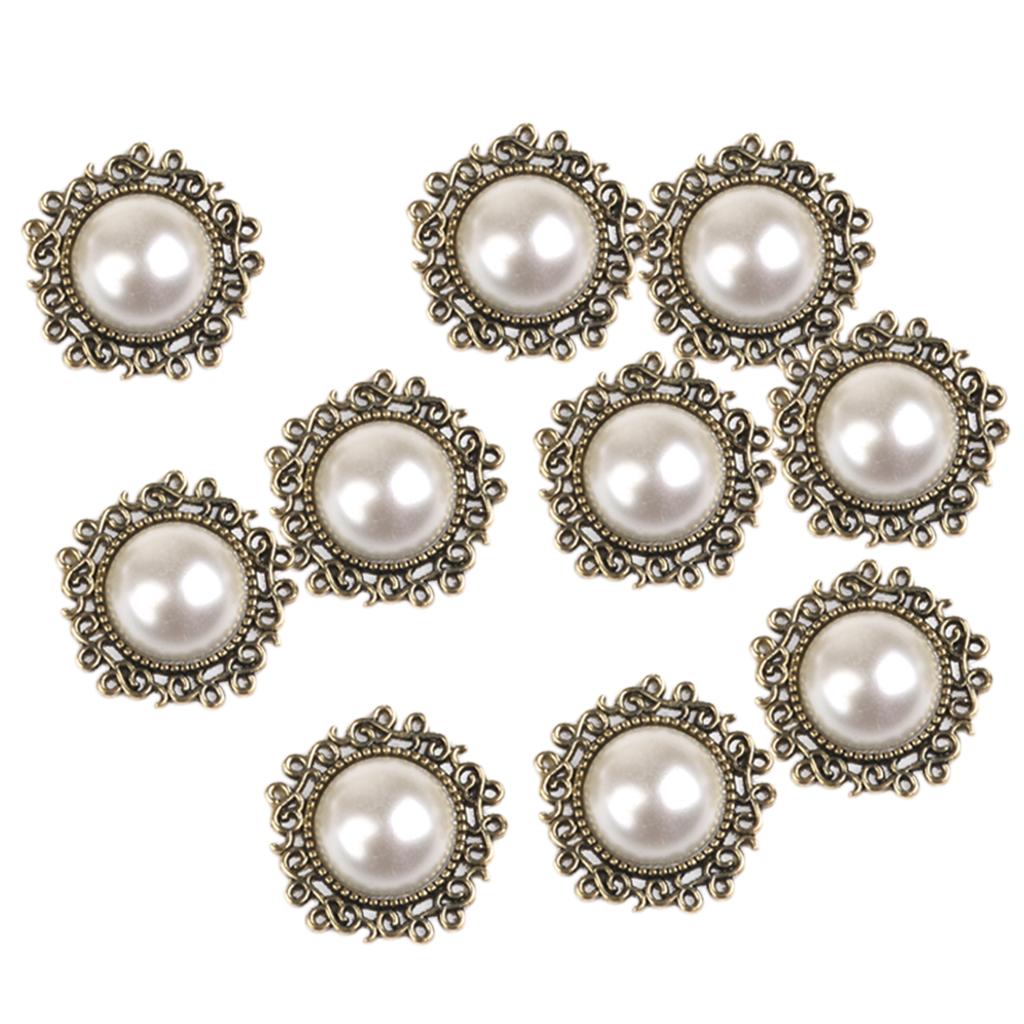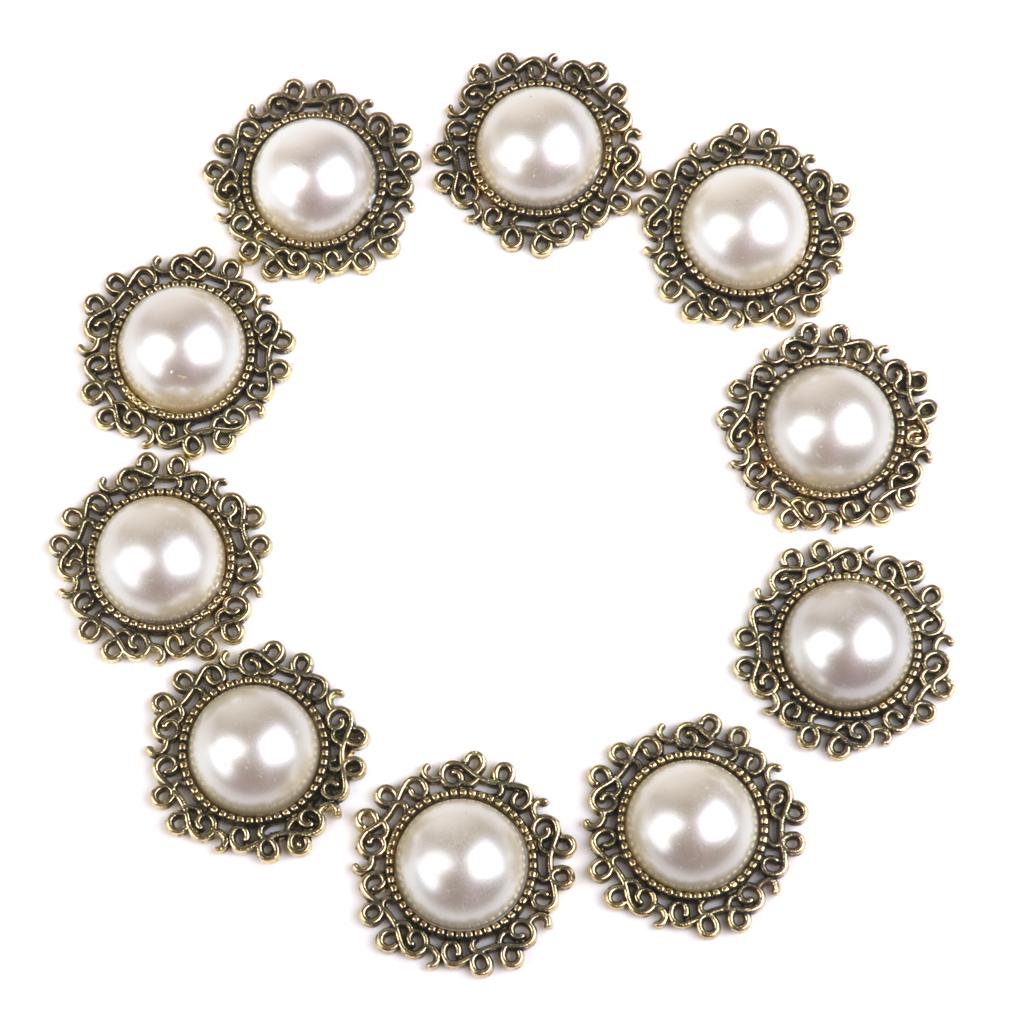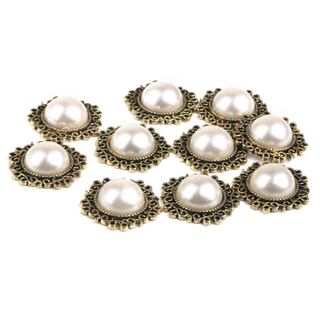 Phenovo Faux Pearl Button Flatback Decoration DIY 25mm 10pcs Beige