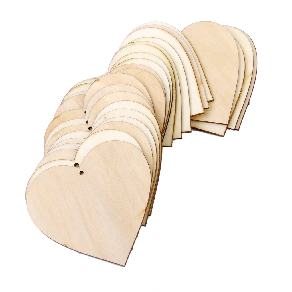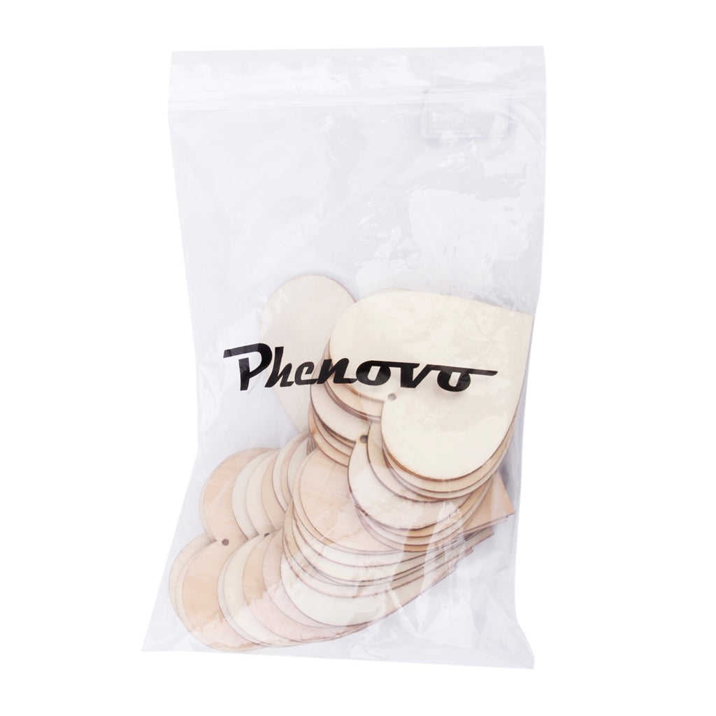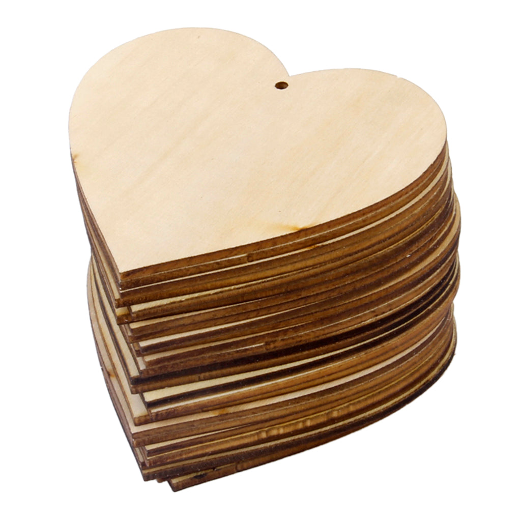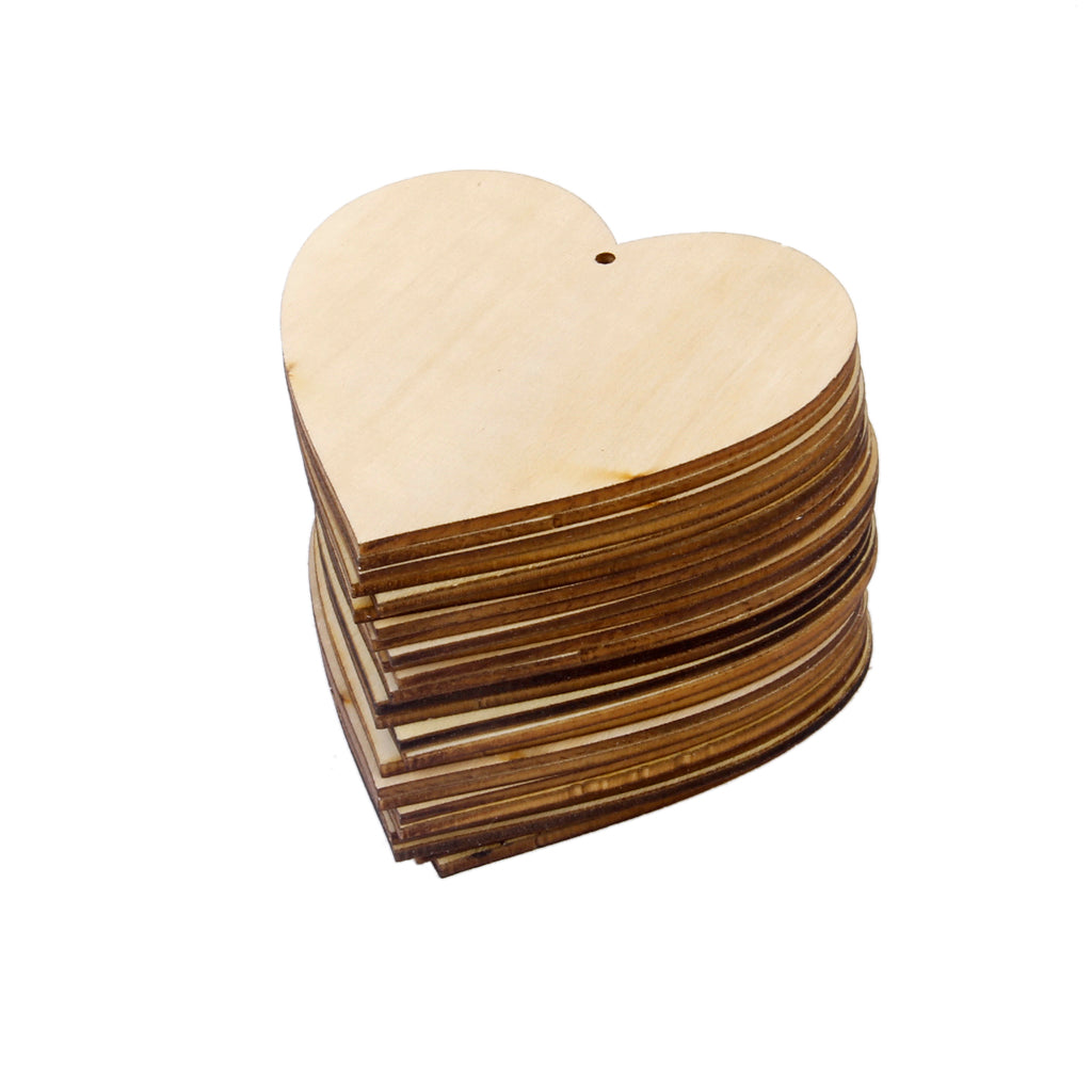 Phenovo Wooden Blank Heart Embellishments for DIY Crafts 8x8cm 25pcs