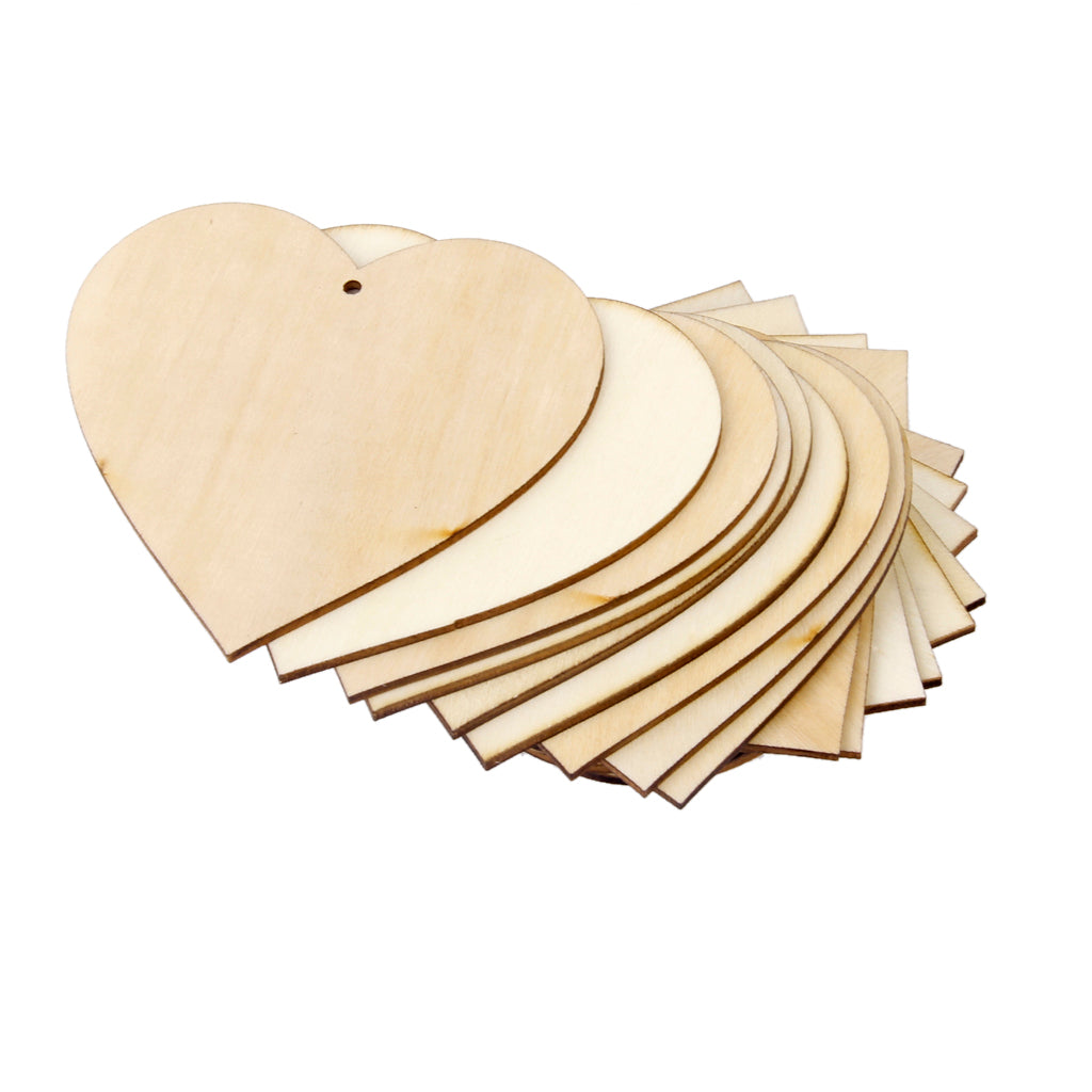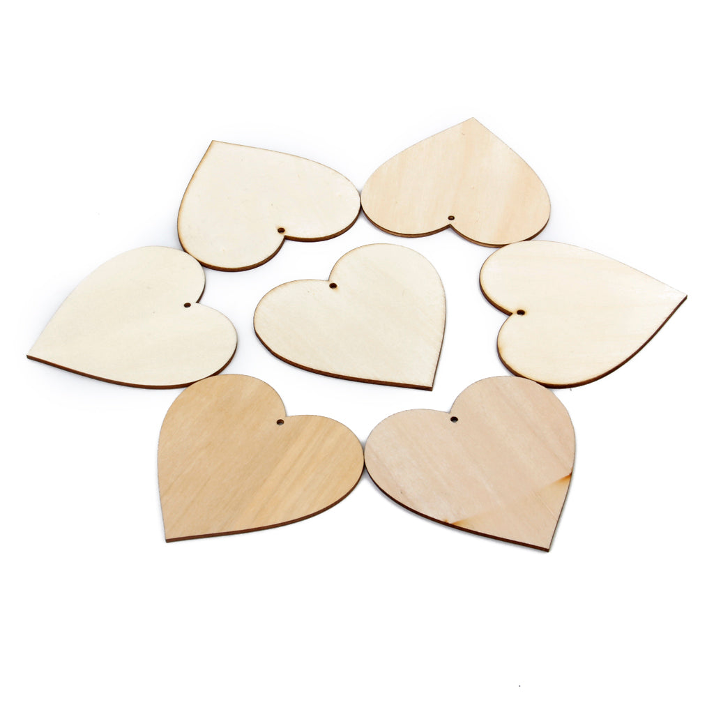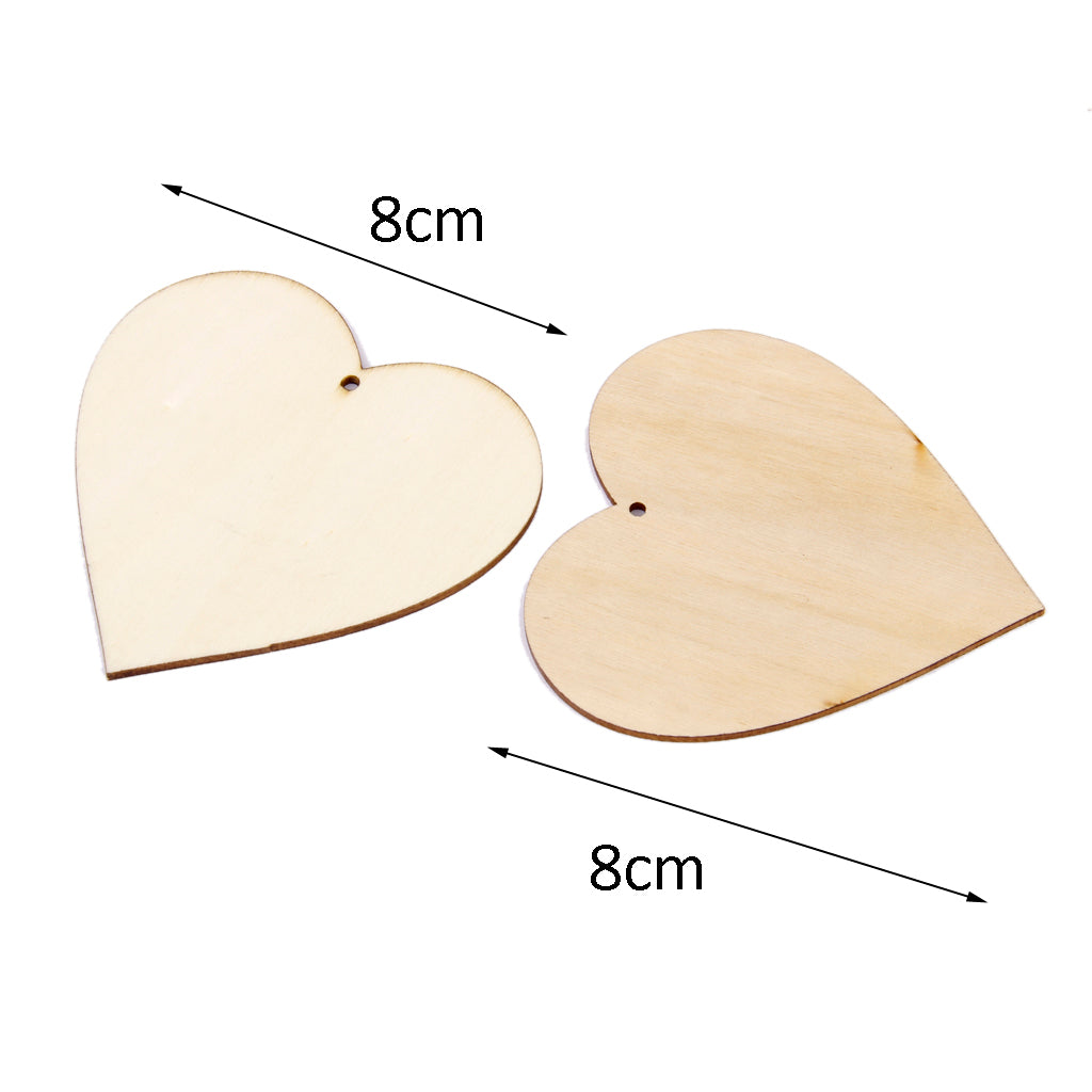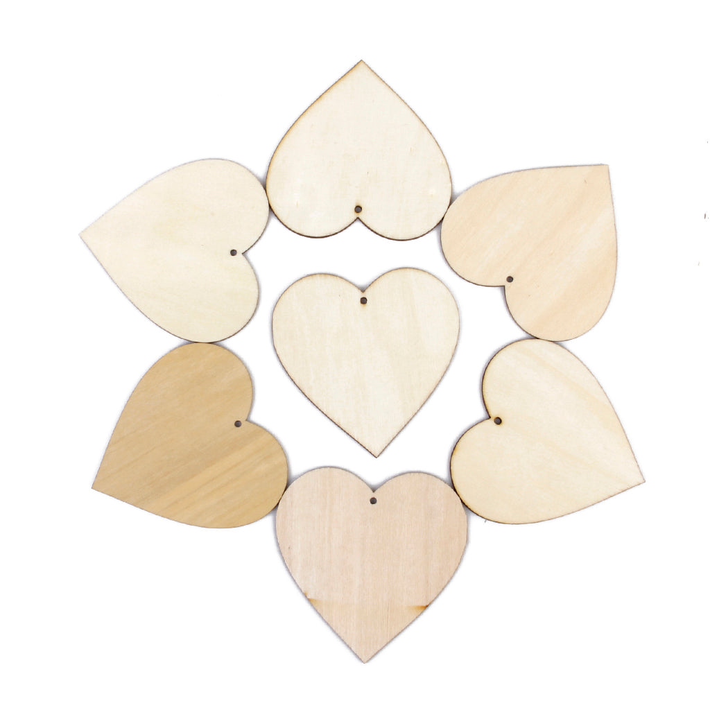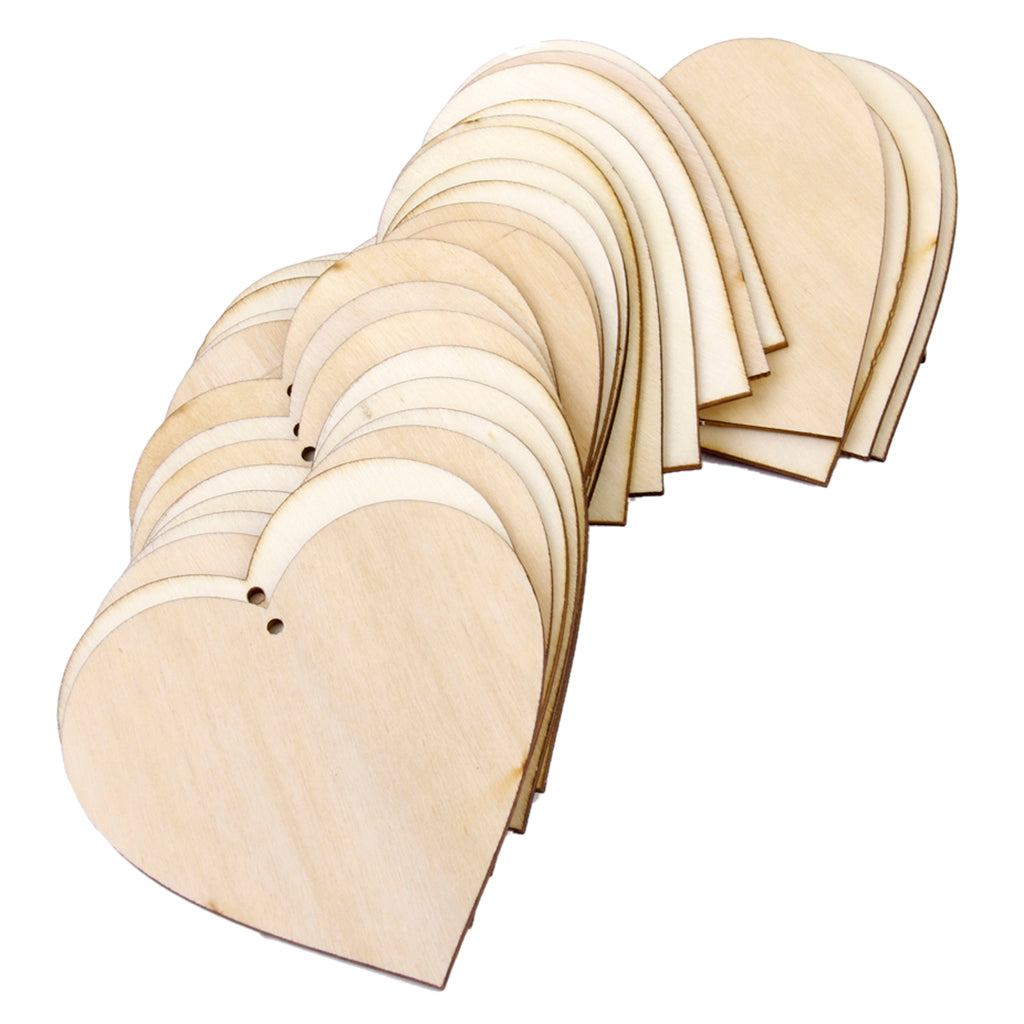 Phenovo Wooden Blank Heart Embellishments for DIY Crafts 8x8cm 25pcs