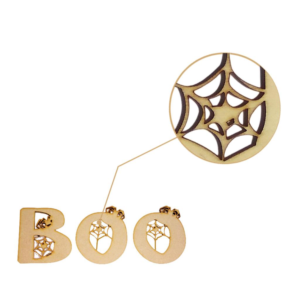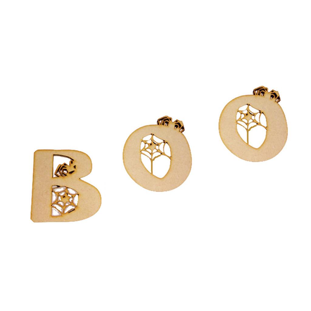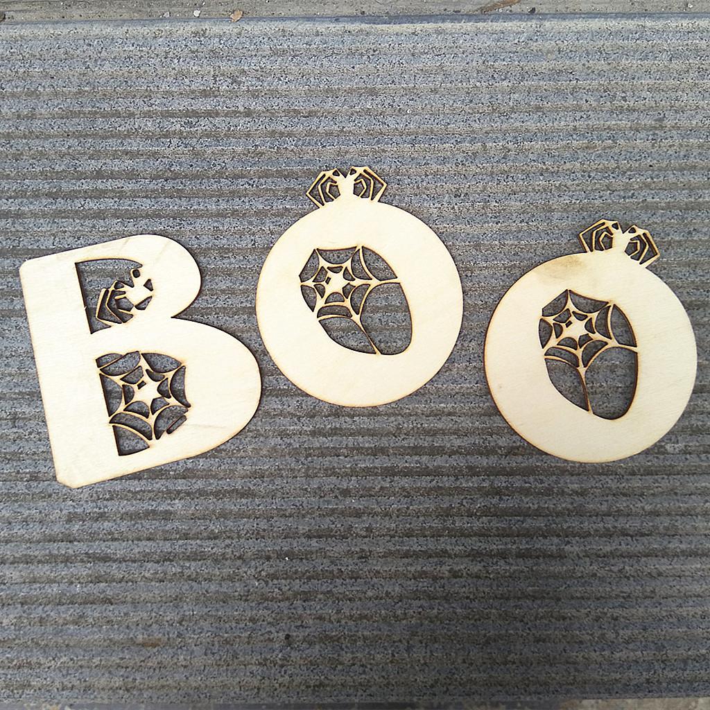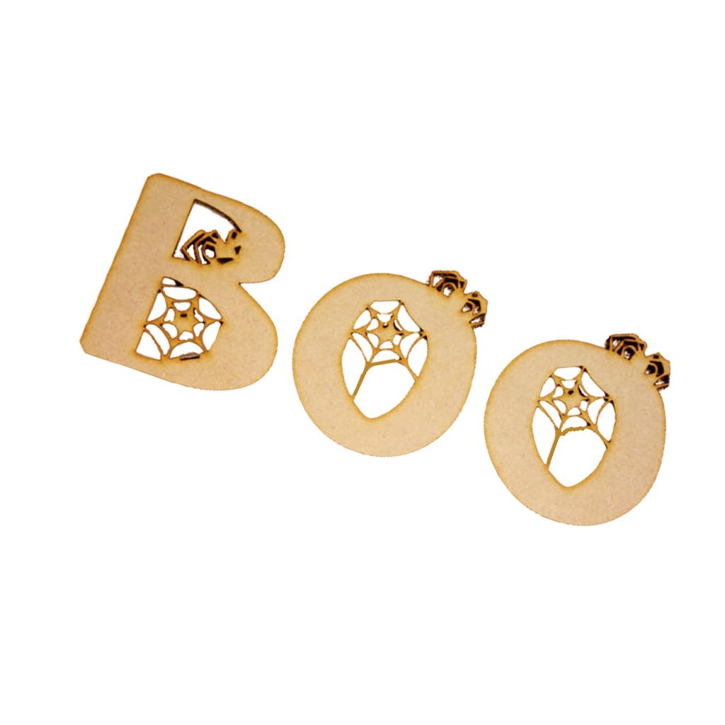 Plain unfinished cutout funny BOO with spider web cut hallowen embellishment.