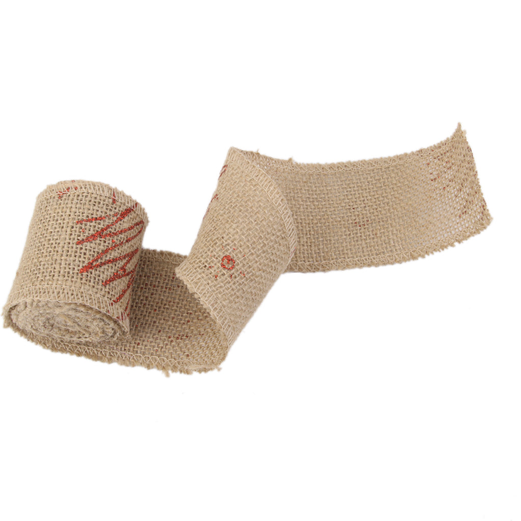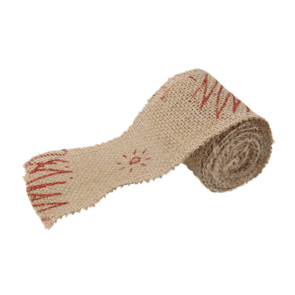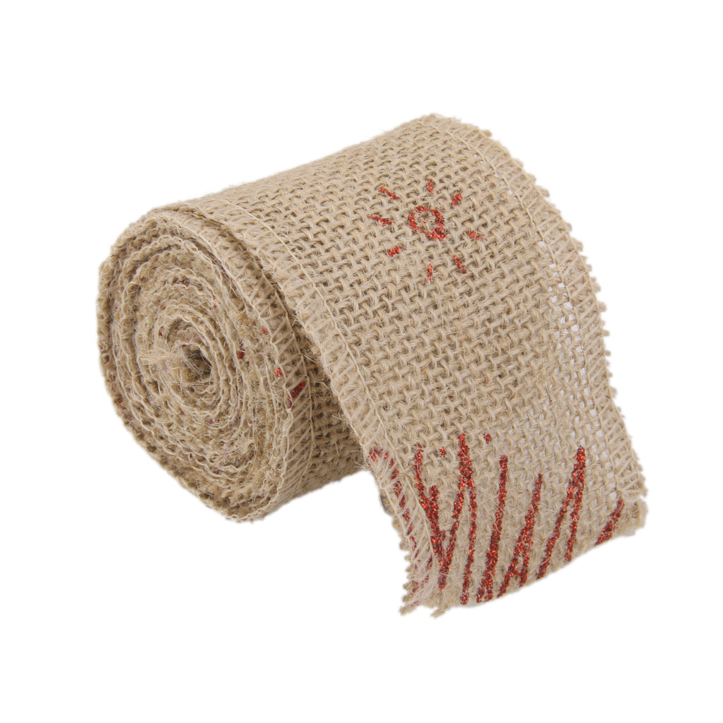 • Beautiful burlap ribbon wire edge with Christmas Tree /Sun pattern