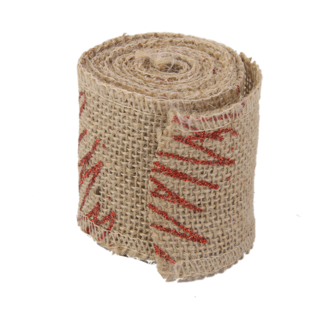 Roll Of 2M Beautiful Christmas Tree Pattern Burlap Ribbon Craft Home Christmas Gift Brown Red