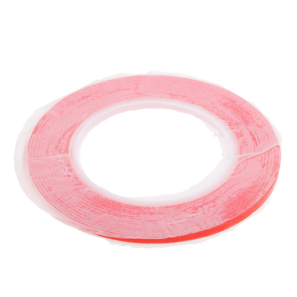 Double sided red adhesive tape with a transparent polyester film and strong acrylic adhesive, housed within a red polypropylene release liner.