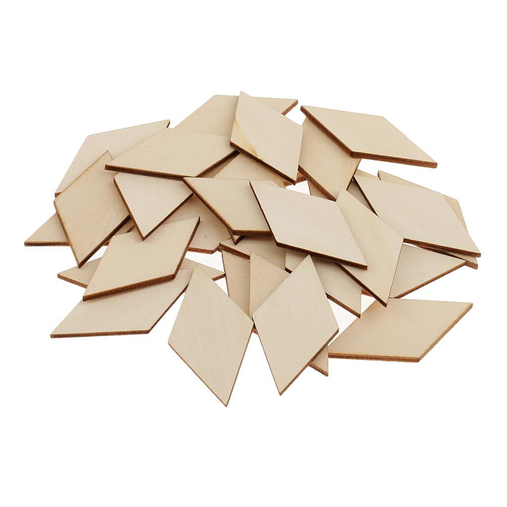 Unfinished Wood Rhombus Shapes Crafts Pieces