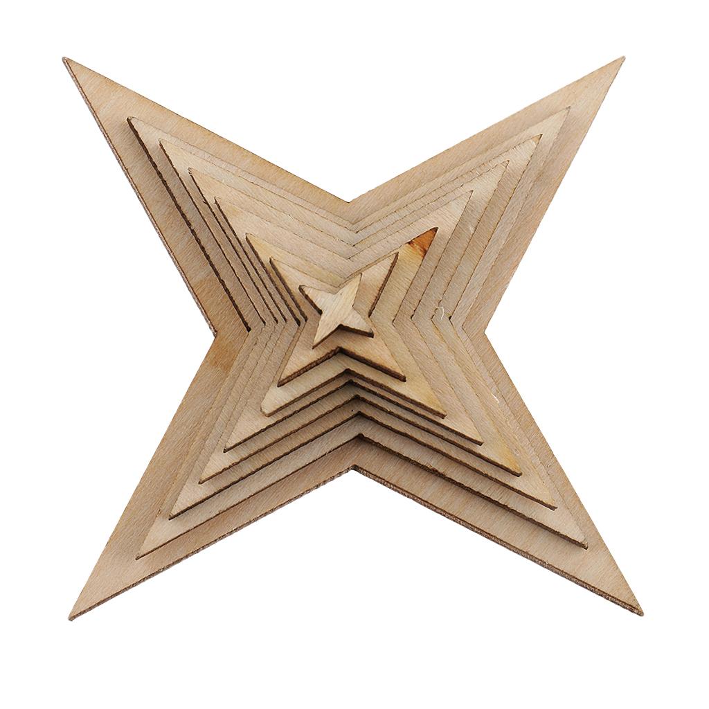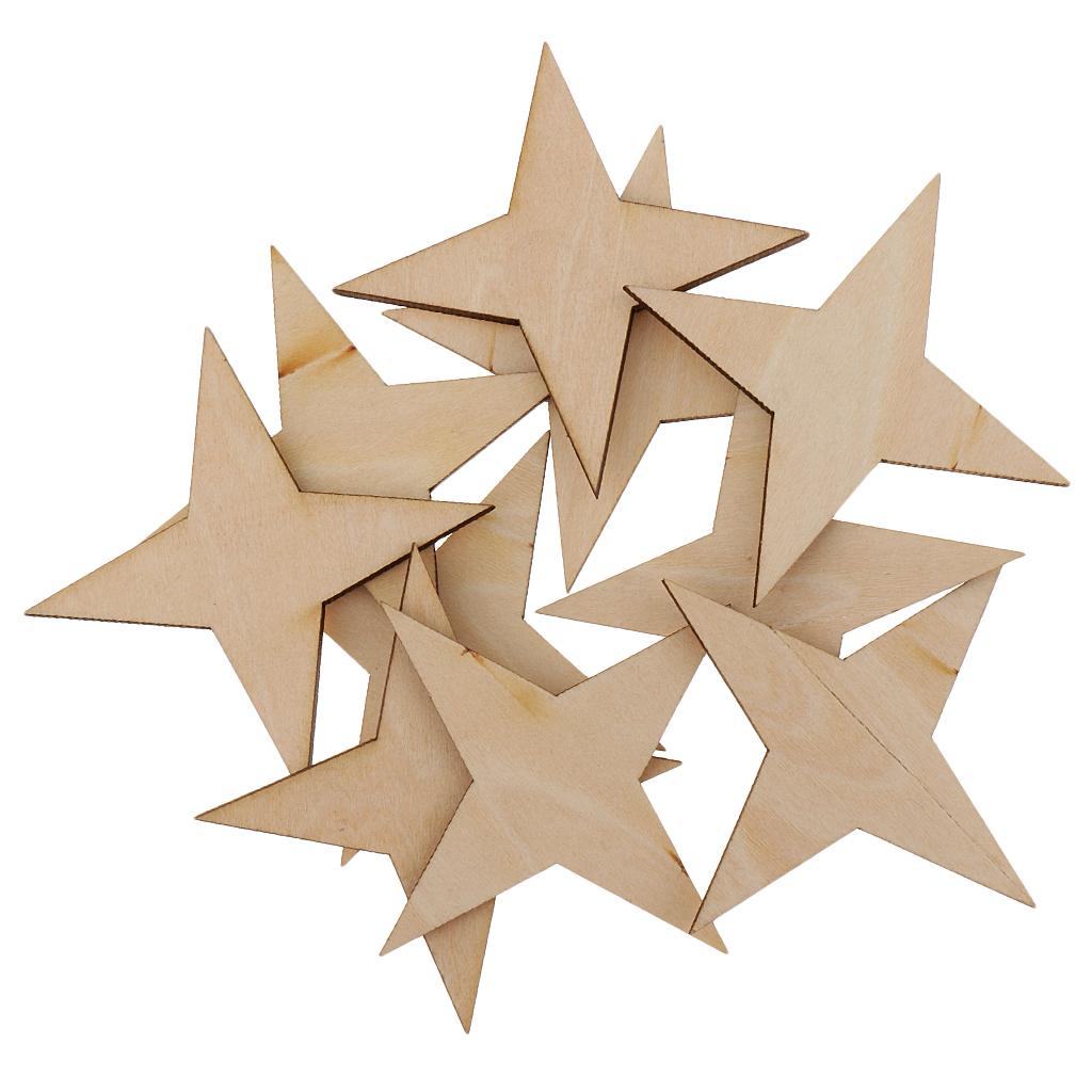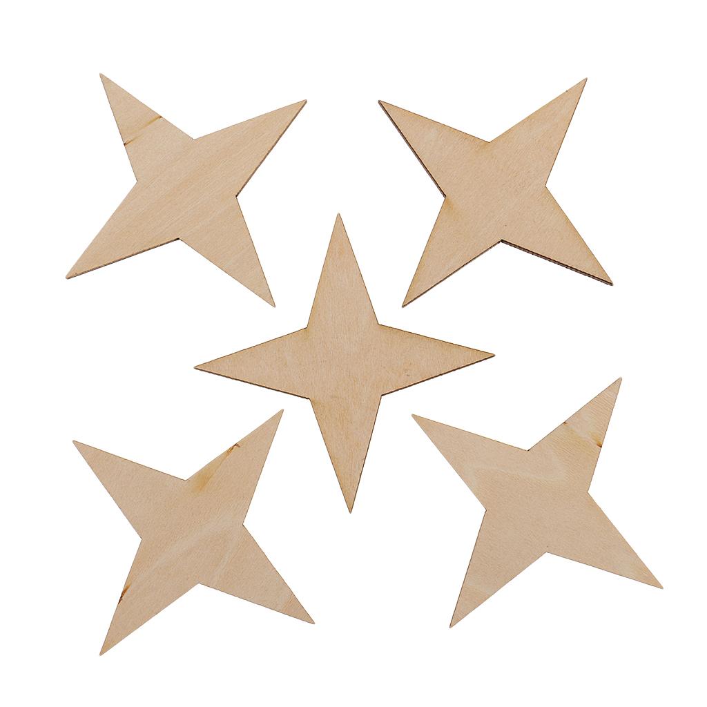 Unfinished Wood 4 Point Star Shapes Wood Craft Embellishments 10pcs 70x70mm