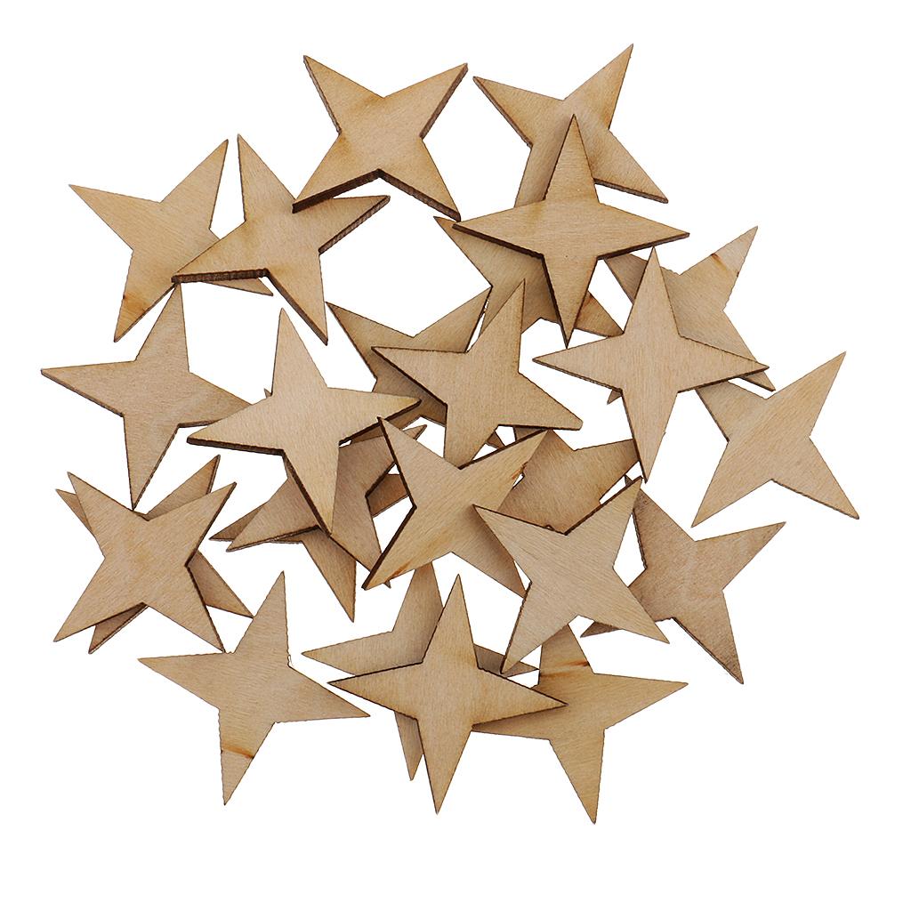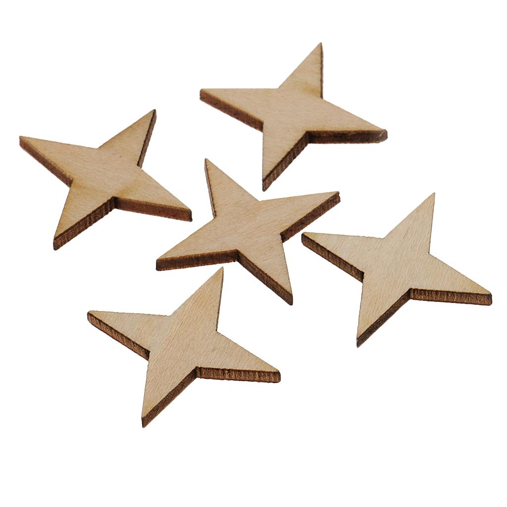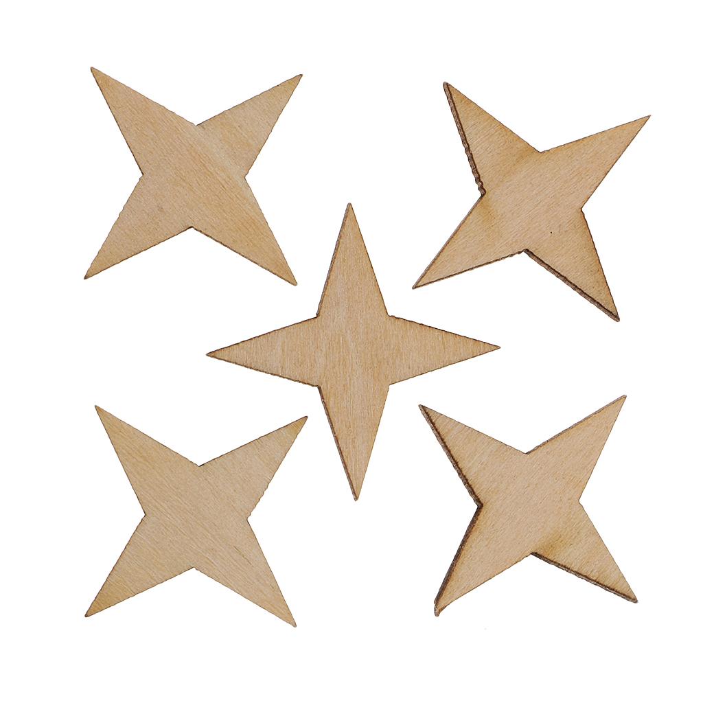 Unfinished Wood 4 Point Star Shapes Wood Craft Embellishments 30pcs 30x30mm