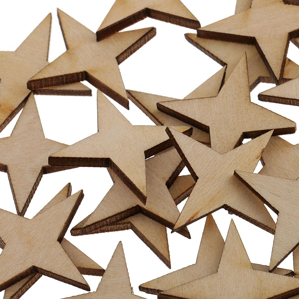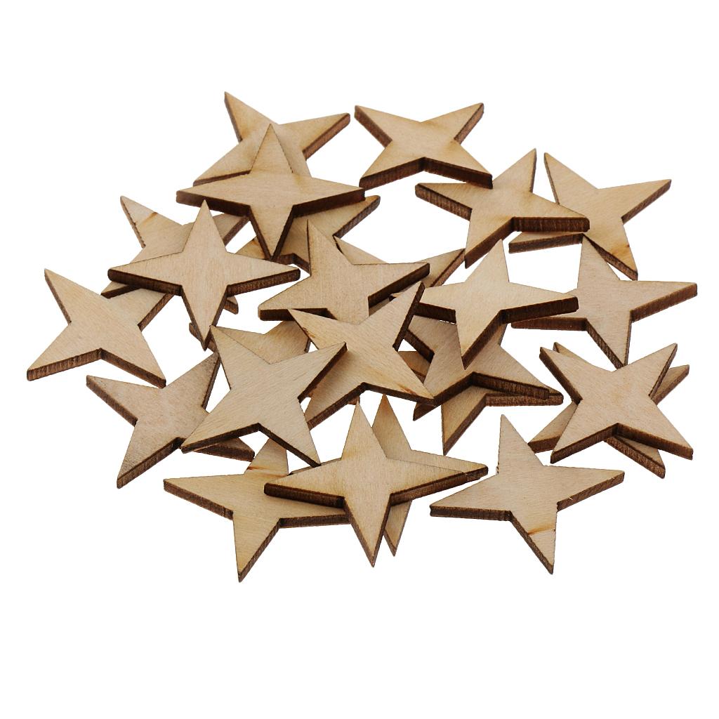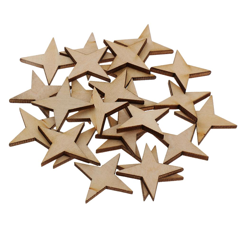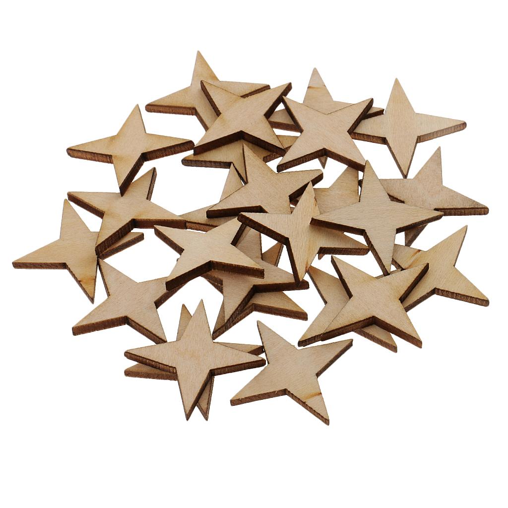 Unfinished Wood 4 Point Star Shapes Wood Craft Embellishments 30pcs 30x30mm