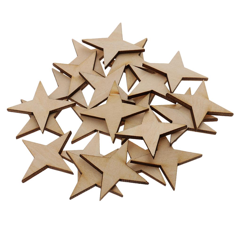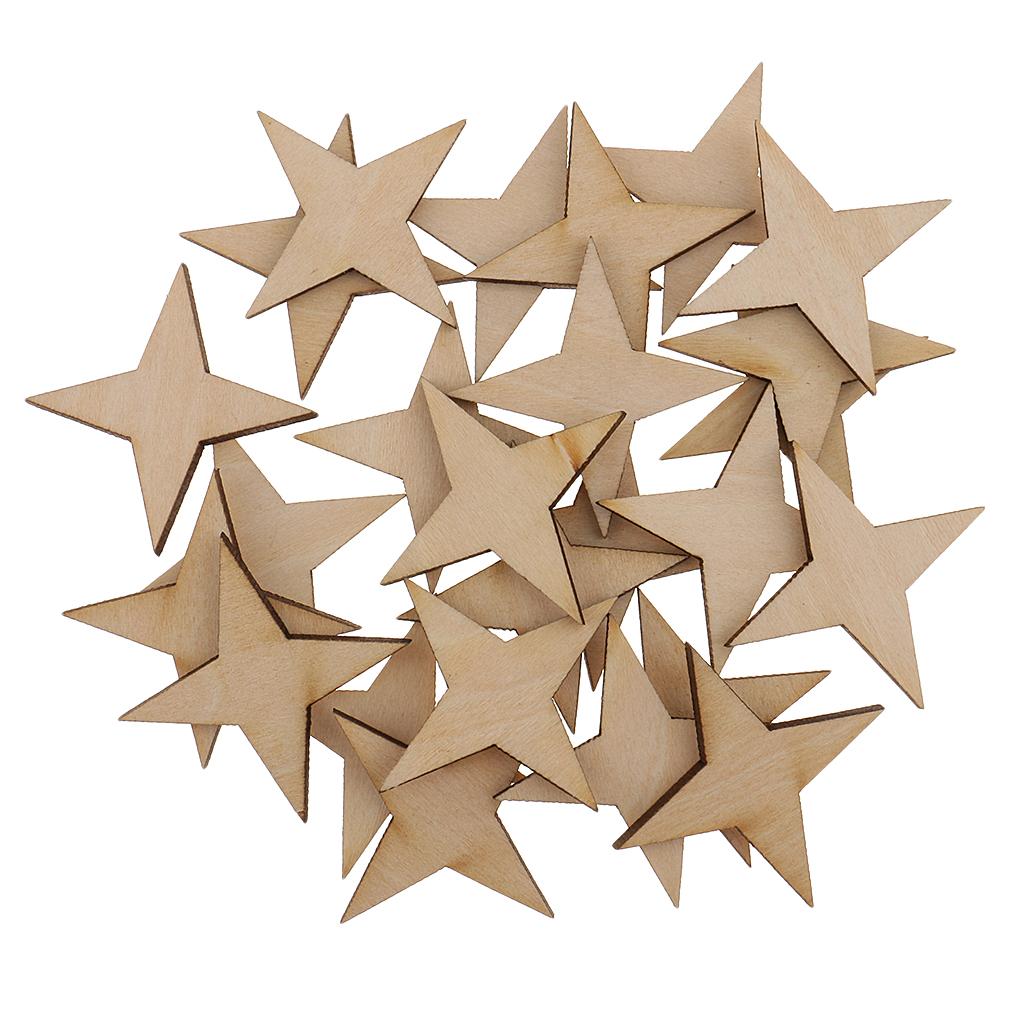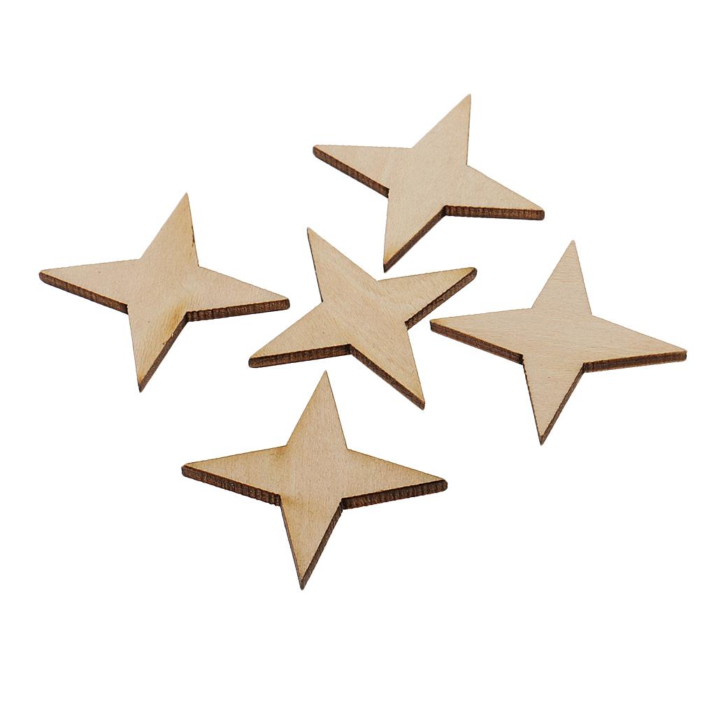 Unfinished Wood 4 Point Star Shapes Wood Craft Embellishments 30pcs 40x40mm