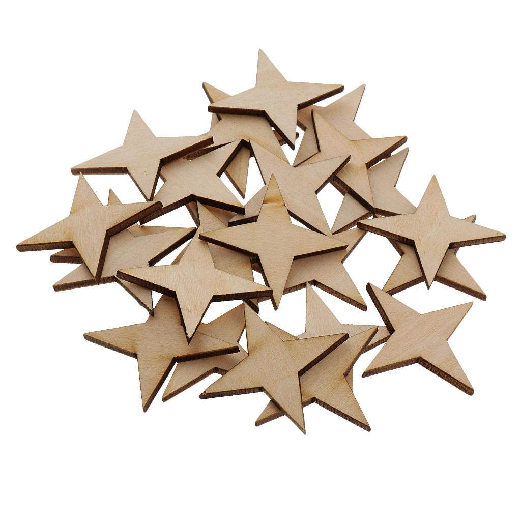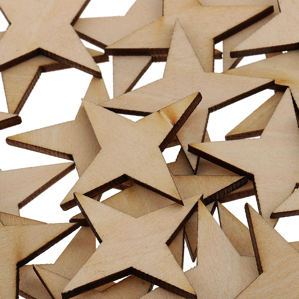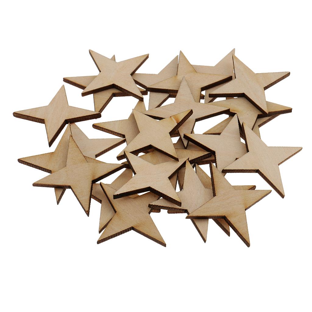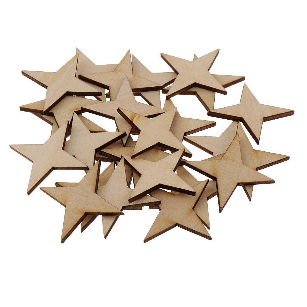 Unfinished Wood 4 Point Star Shapes Wood Craft Embellishments 30pcs 40x40mm