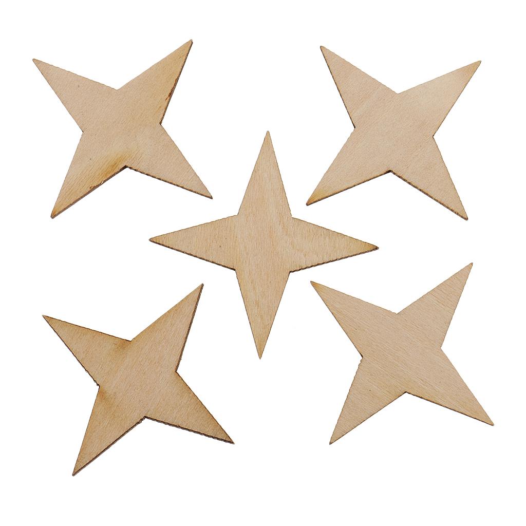 Unfinished Wood 4 Point Star Shapes Crafts Pieces
