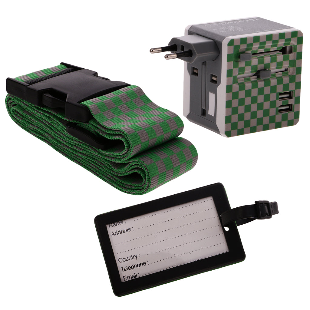 All In One International Travel Power Plug AC Adapter Converter Kit Green