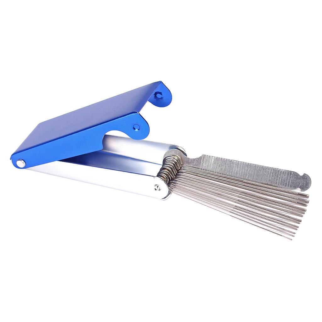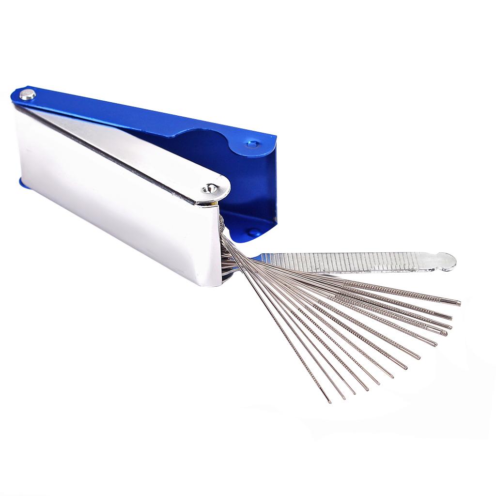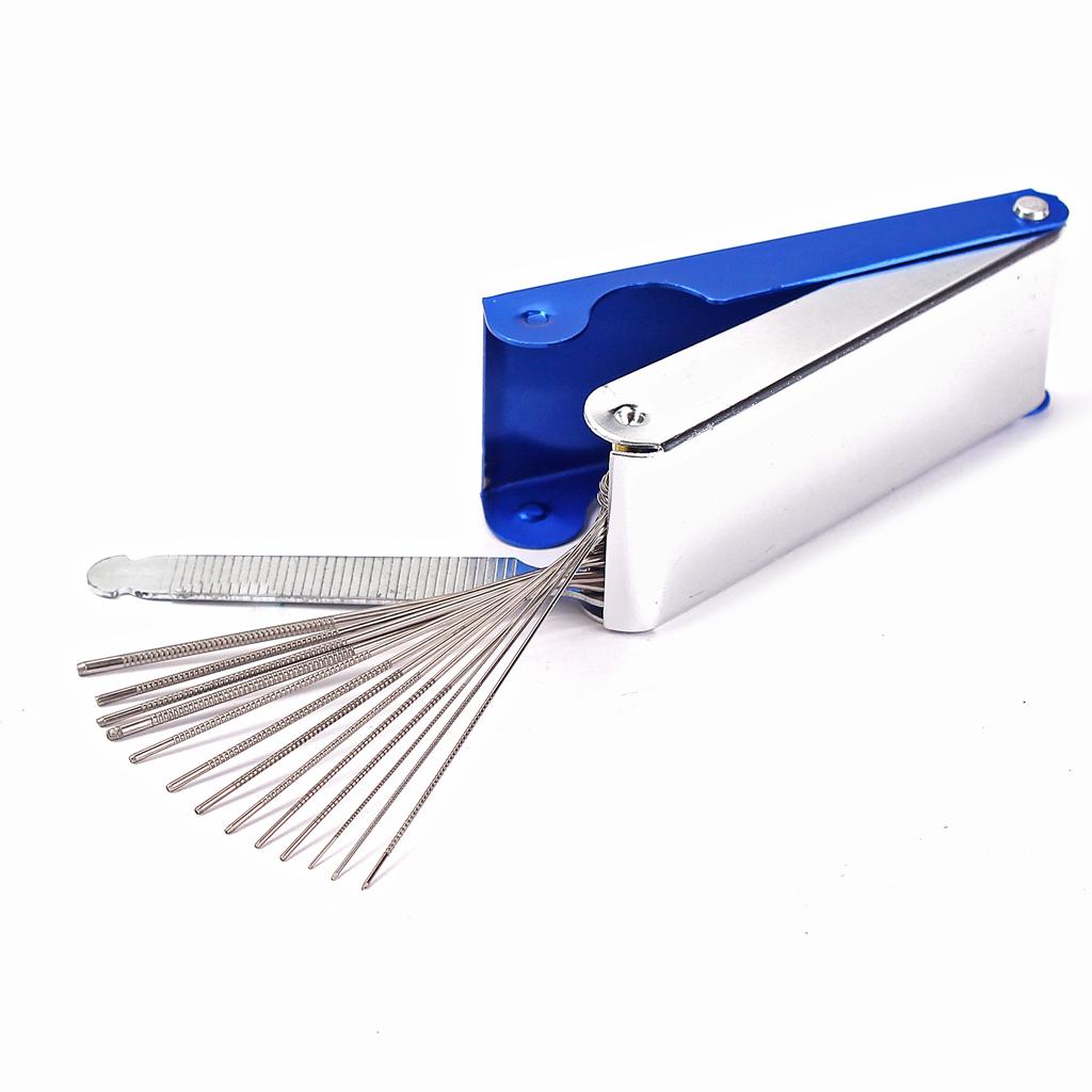 • This is a handy set of 13 round files( for the depth of string slots) and 1 x flat file( for the height of nut and bridge).