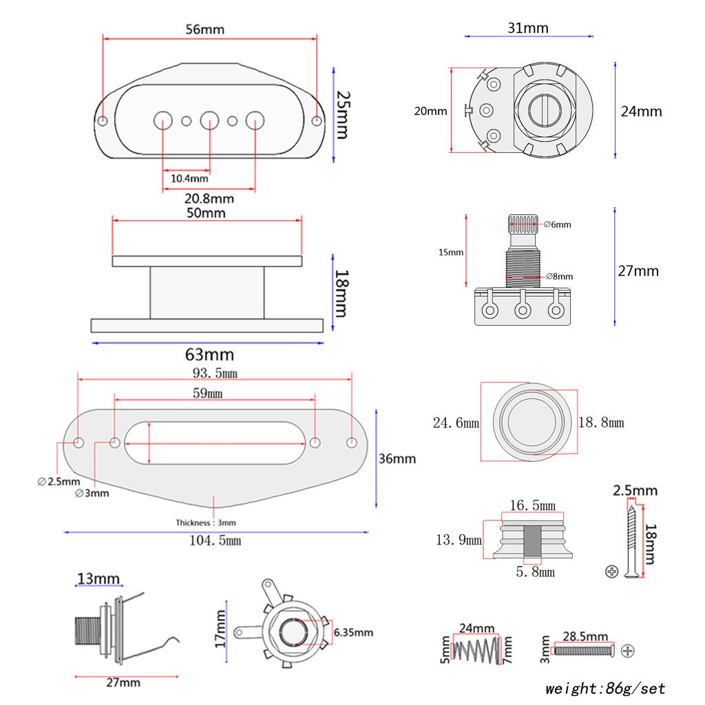 3-string maple cigar box guitar pickup pre-wired with volume and tone.