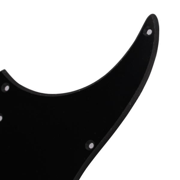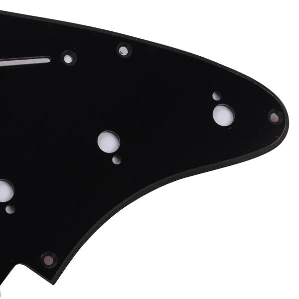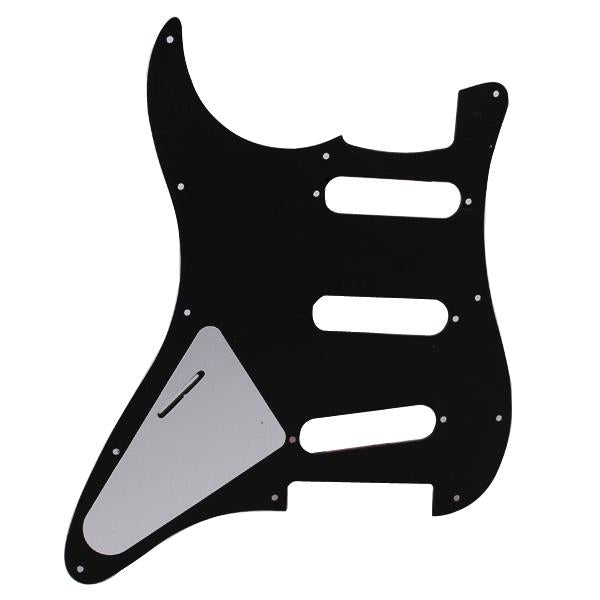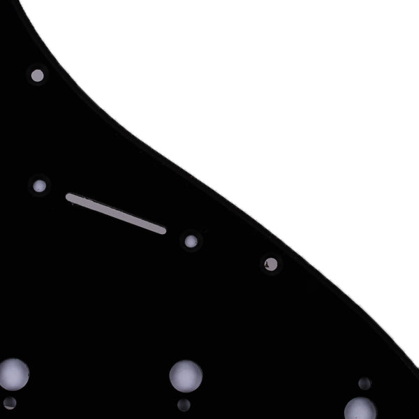 This black guitar pickguard is designed for most Stratocaster style guitar. It is finished with 1 ply bevel edge and has 11 screw holes in the side of the pickguard. Great replacement for your broken, dirty or old guitar pickguard. Sure to make your guitar look new again!