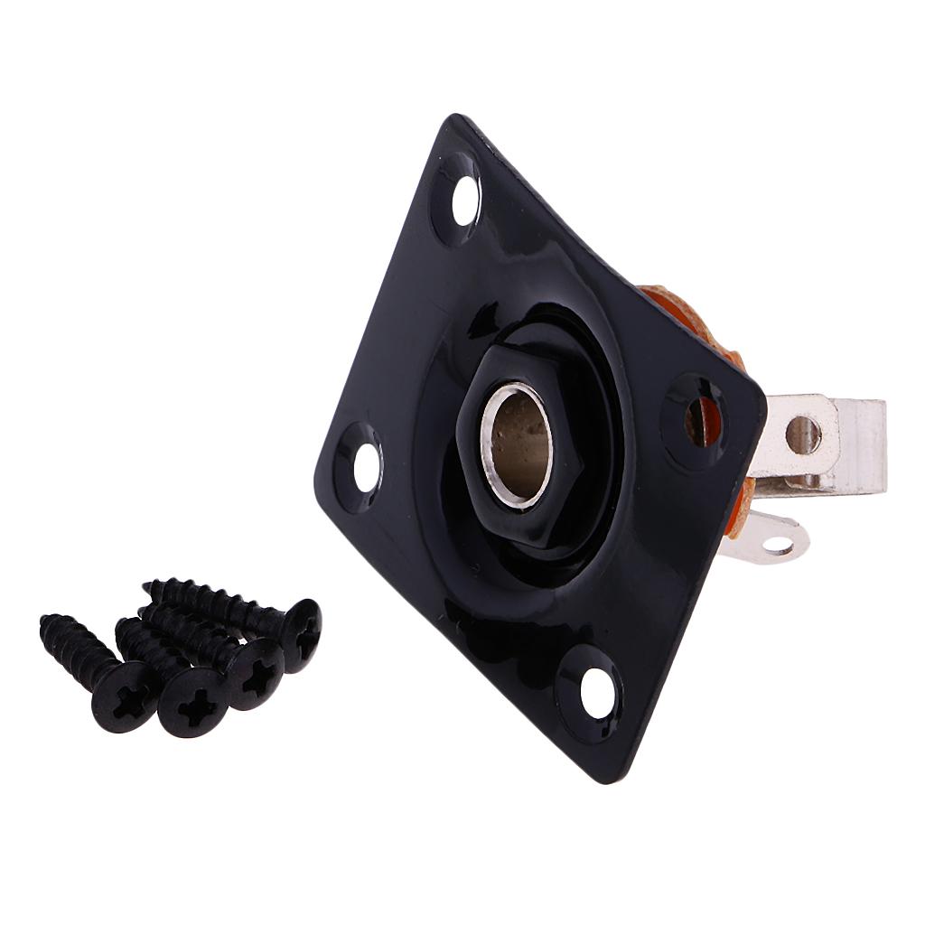 Rectangle Output Input Jack Plate Socket Plug for Electric Guitar Bass Black