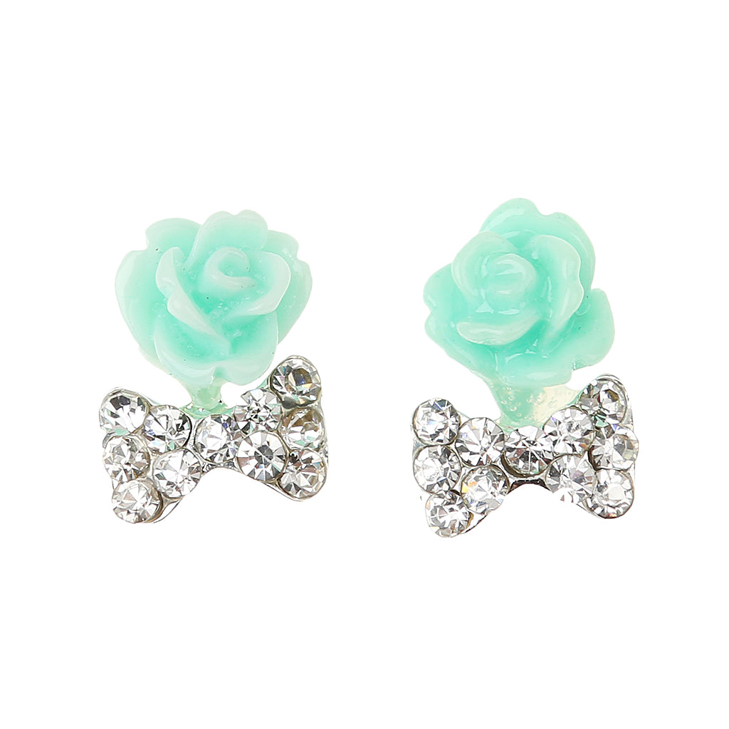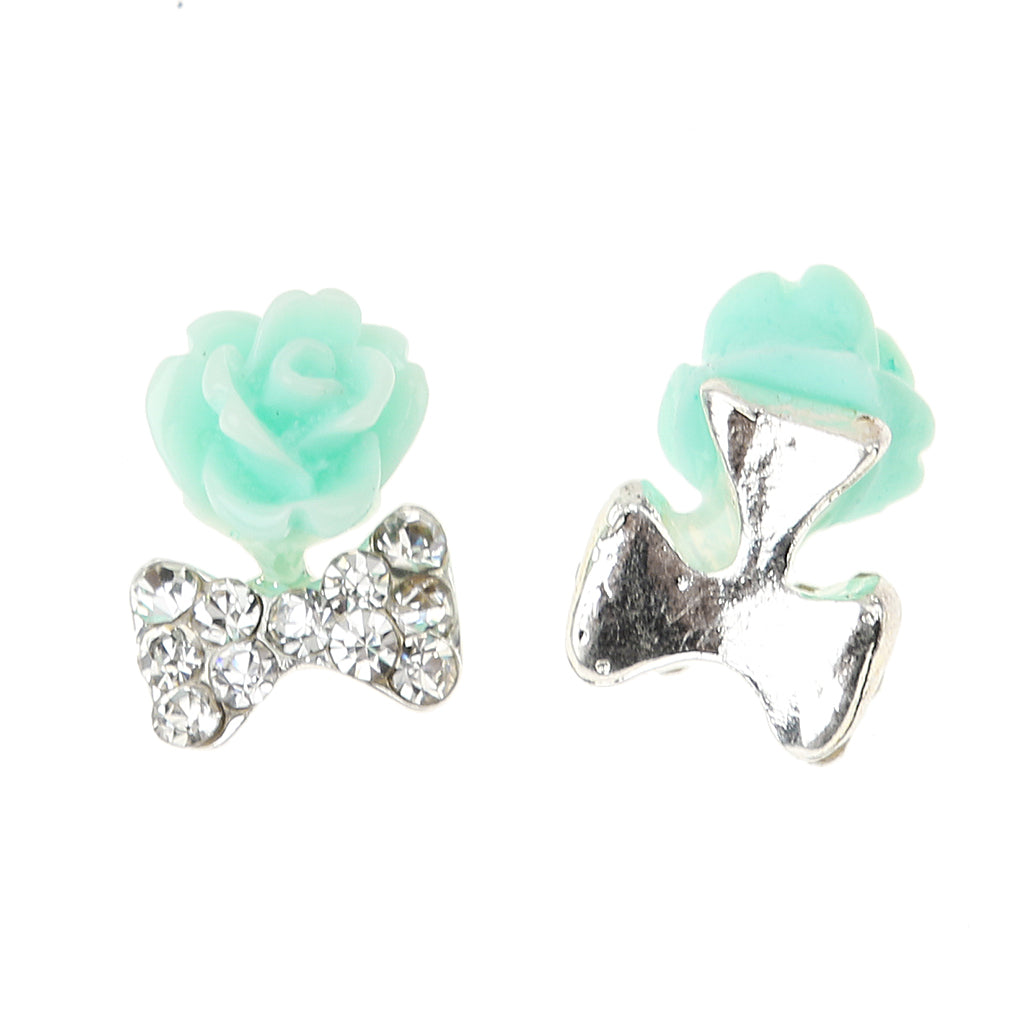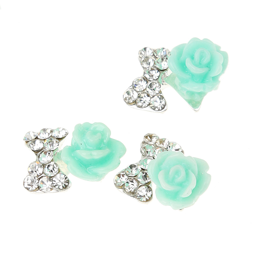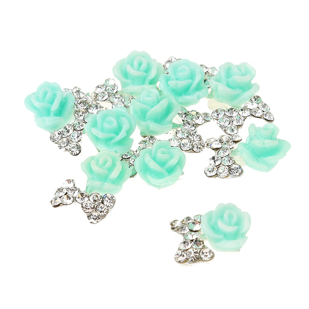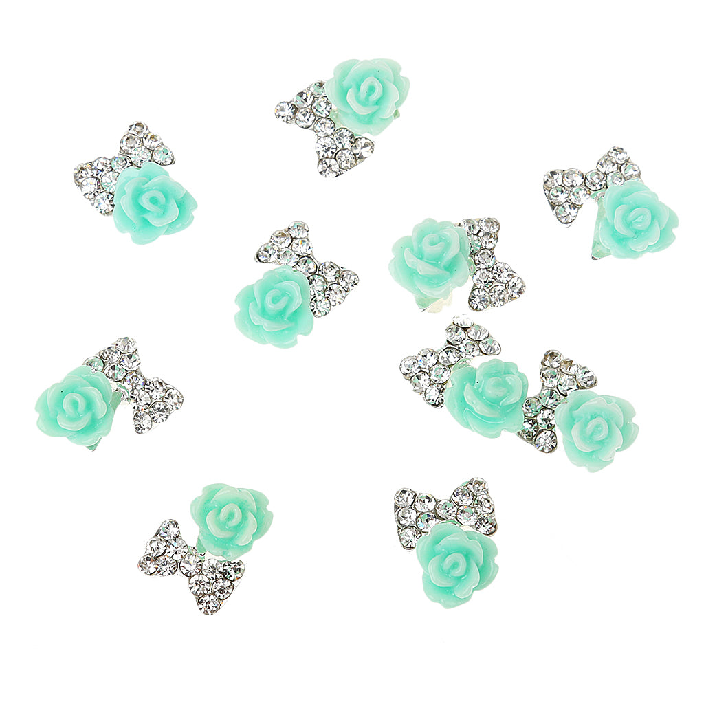 10Pcs 3D Nail Art Flower Bow Alloy Rhinestones Peal Nail Charms Jewelry DIY