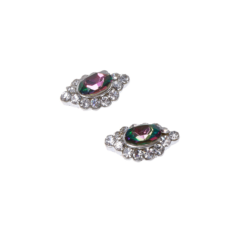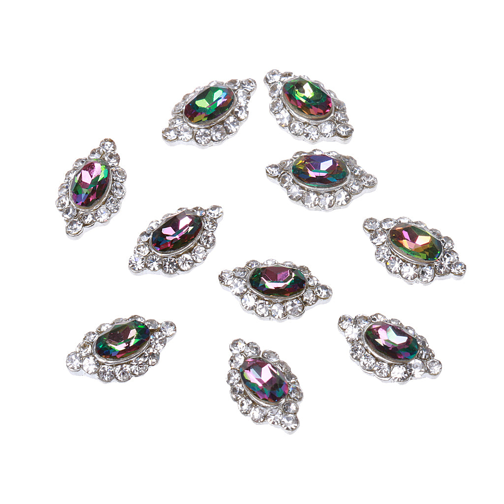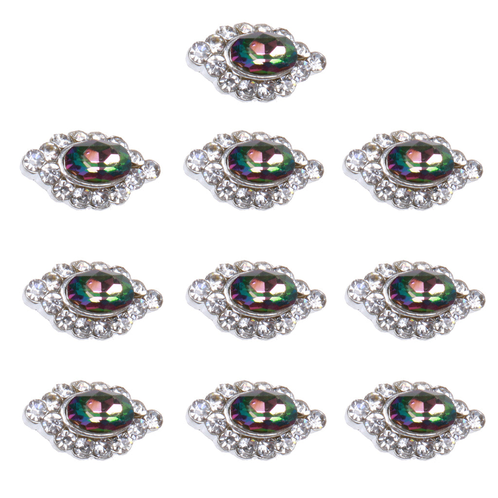 10x 3D Nail Art Decoration Alloy Glitter Tips Charm Rhinestones Green Silver